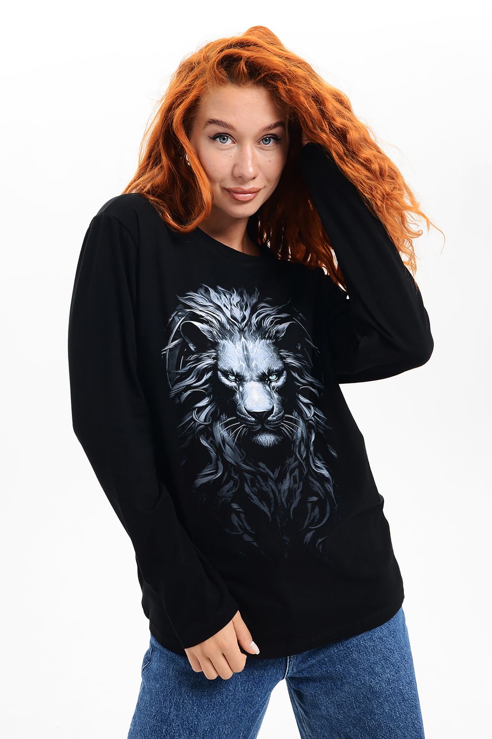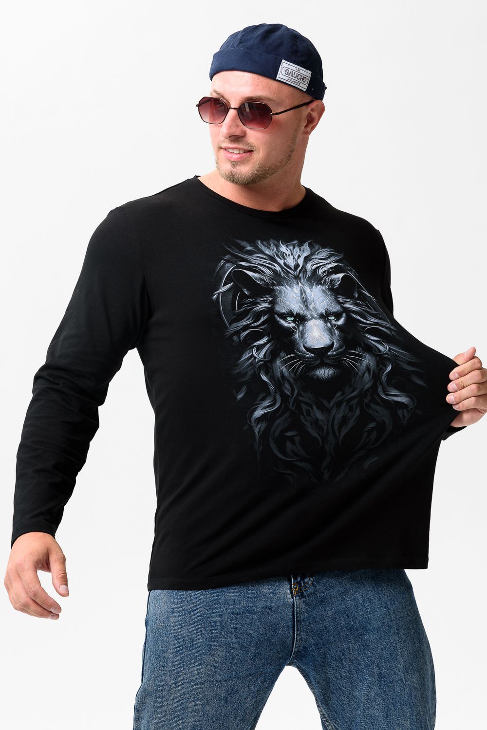 8504 Футболка с длинным рукавом (лонгслив) - черный+лев