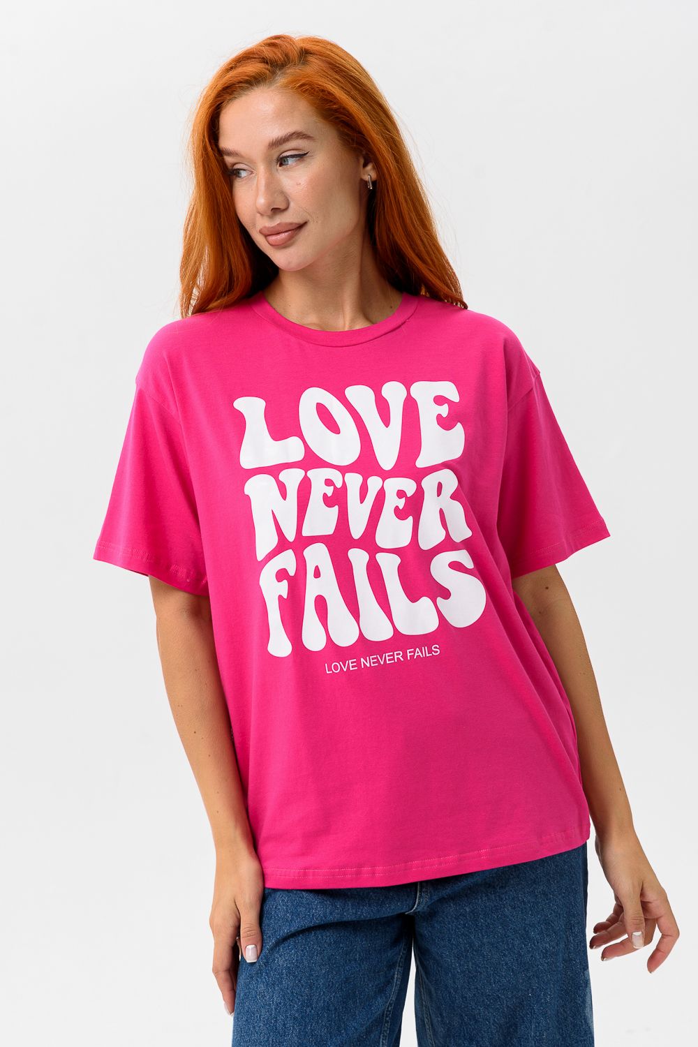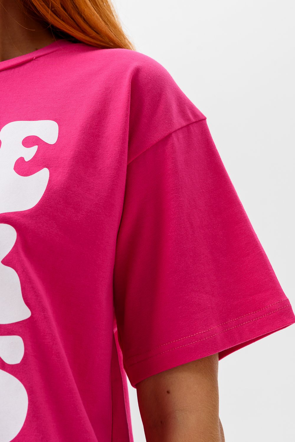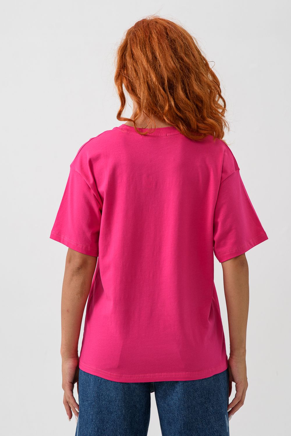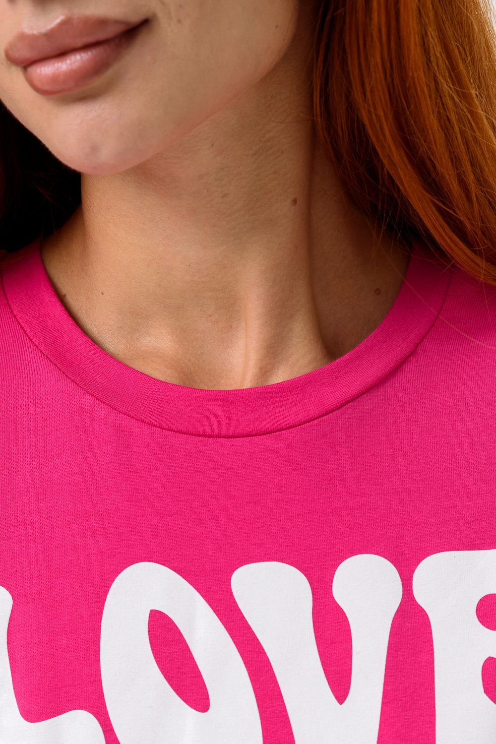8506/1 Футболка женская оверсайз - фуксия+Лав