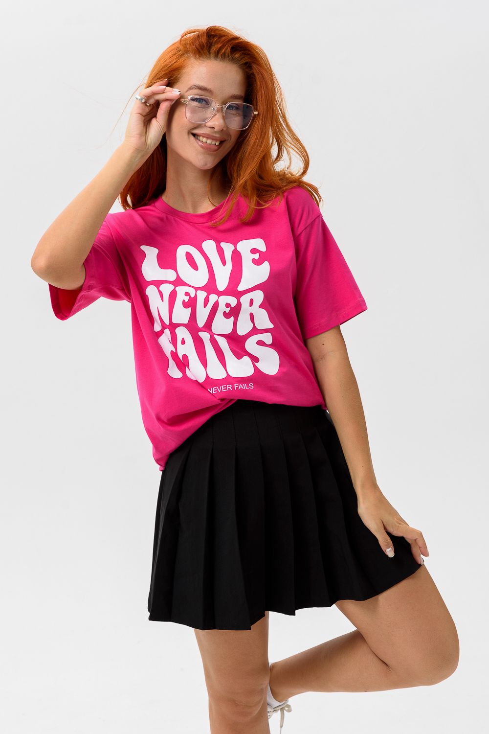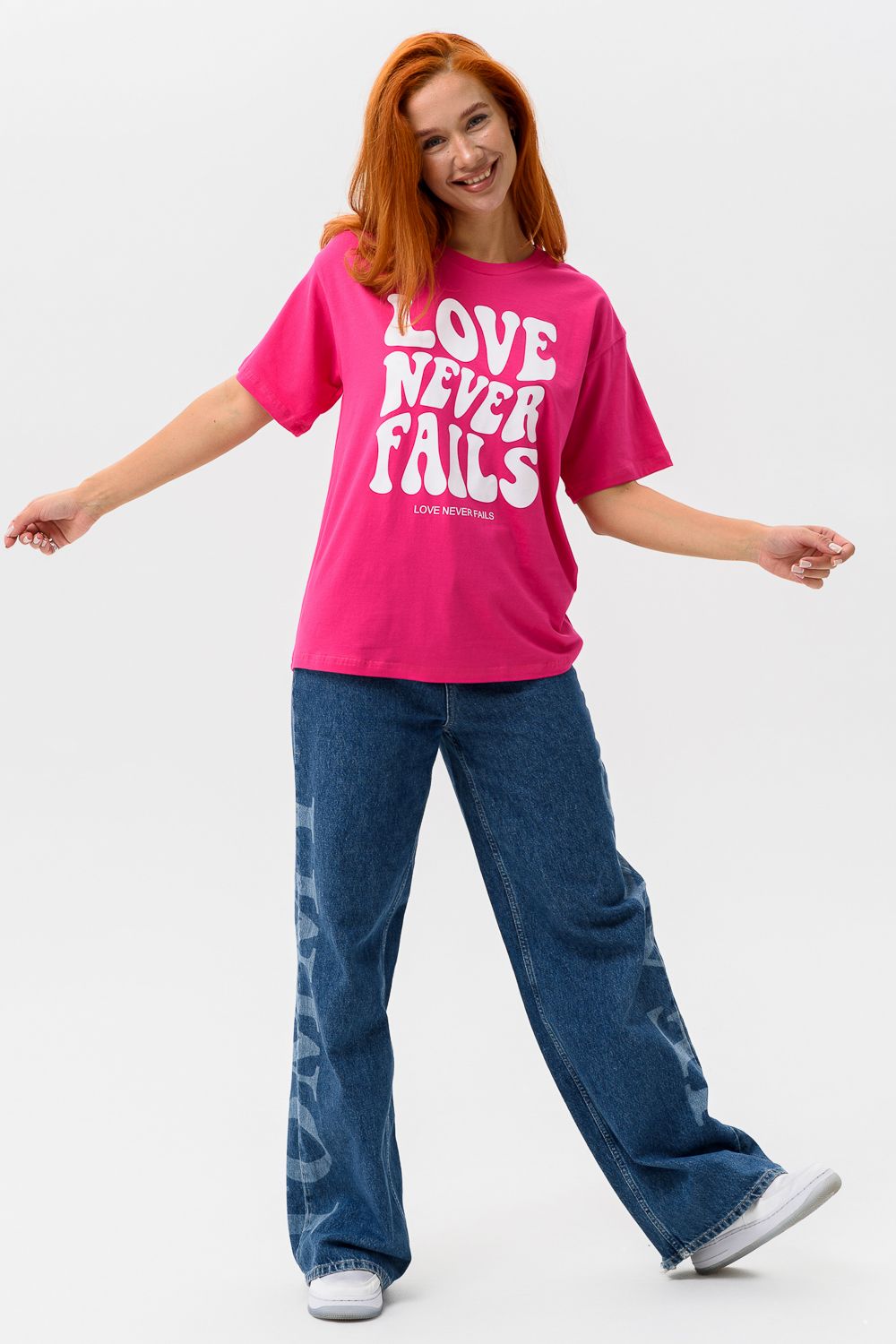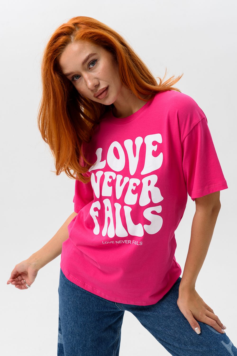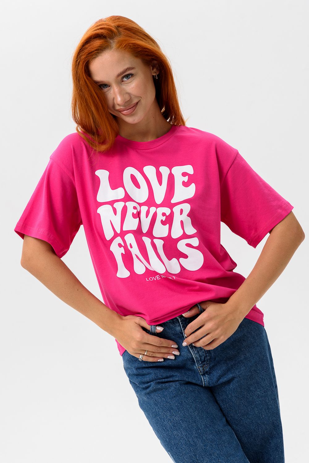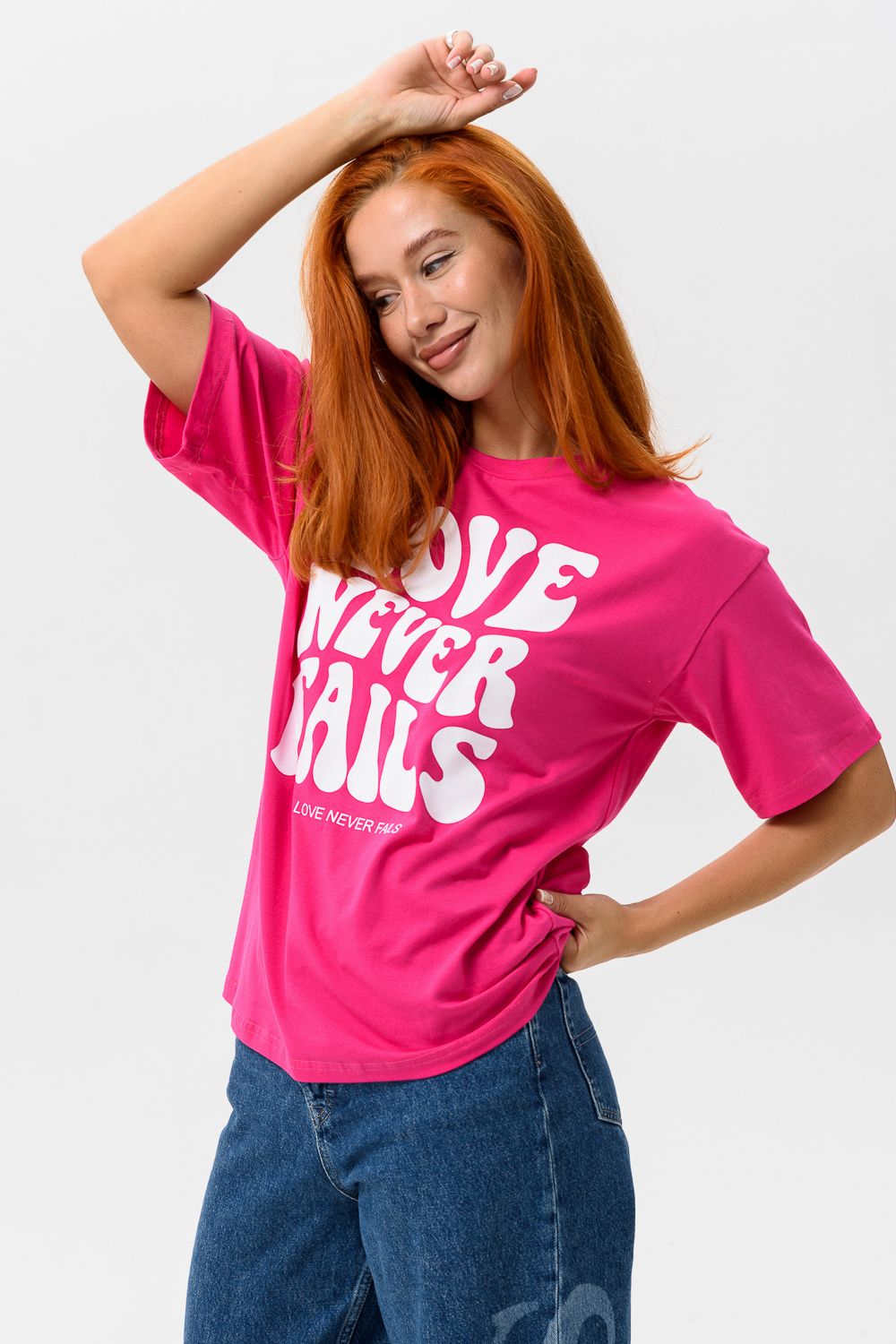 8506/1 Футболка женская оверсайз - фуксия+Лав