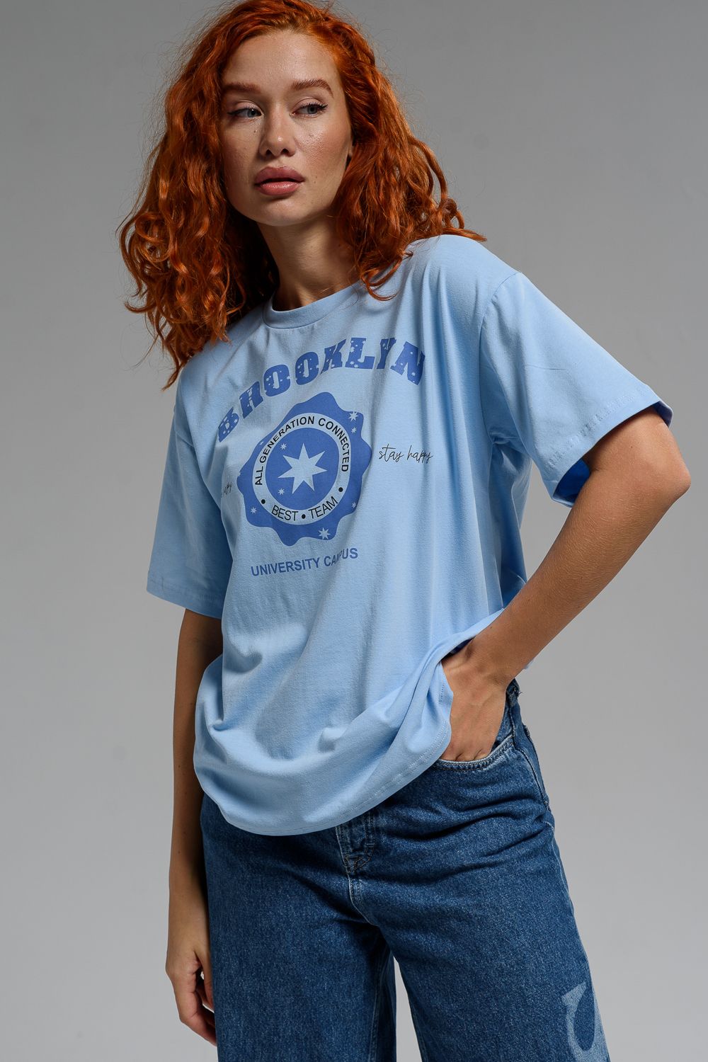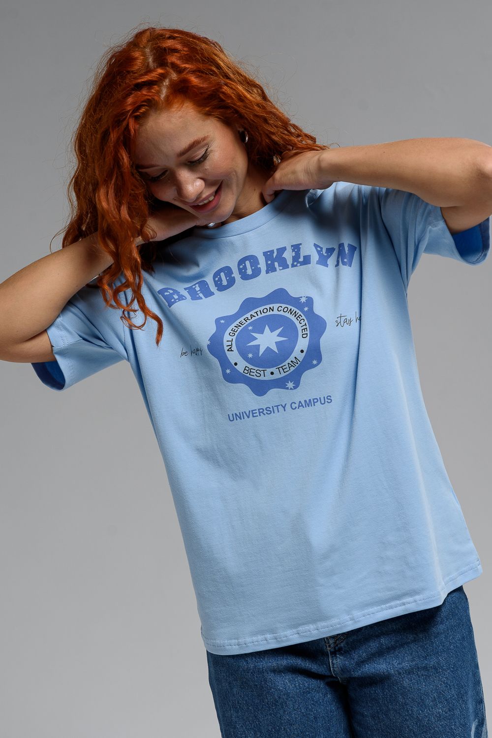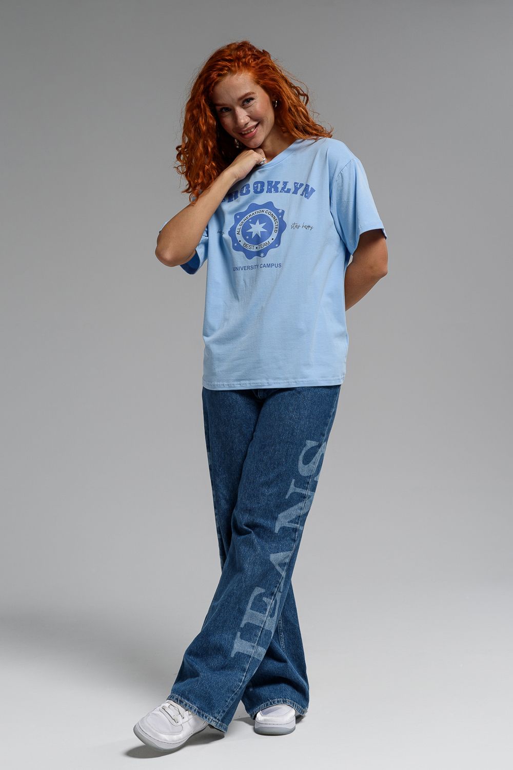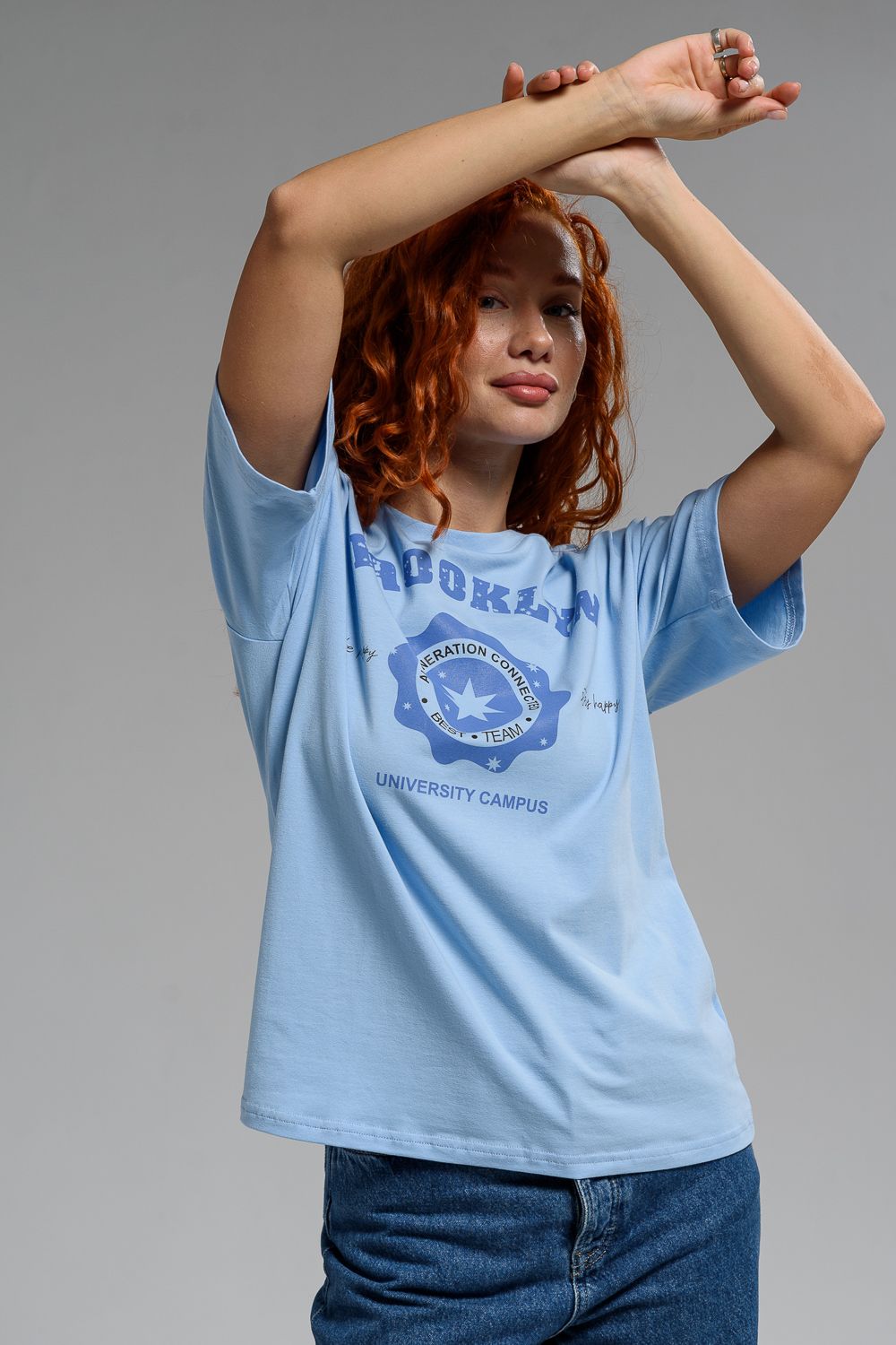 8506/1 Футболка женская оверсайз - голубой+Университет