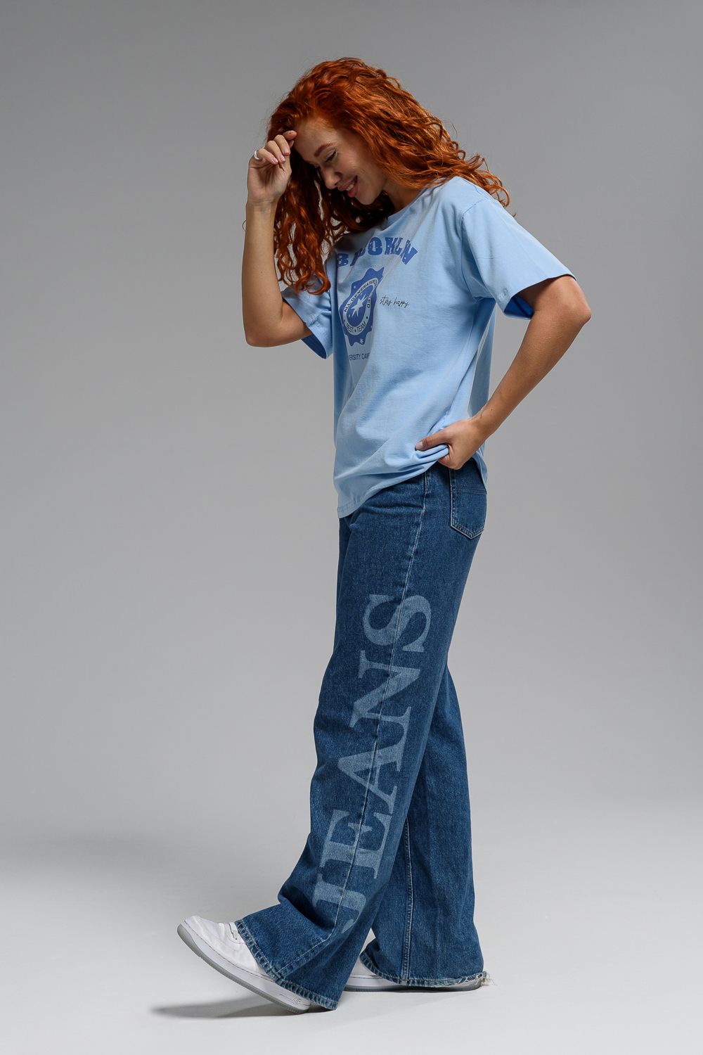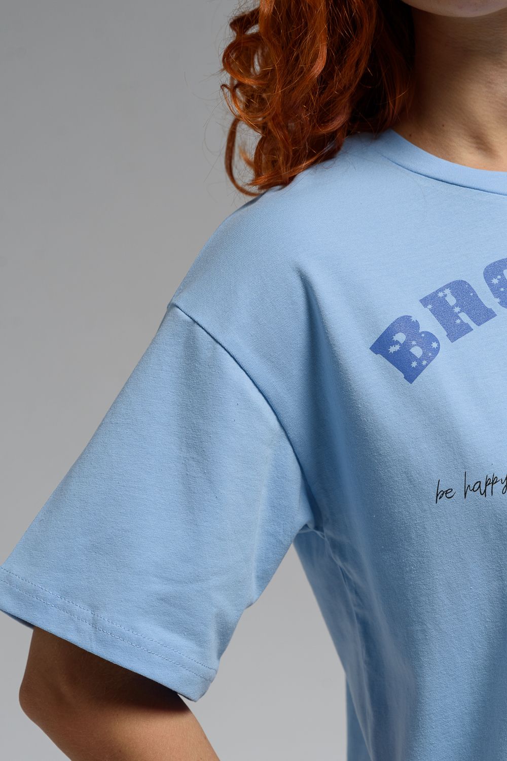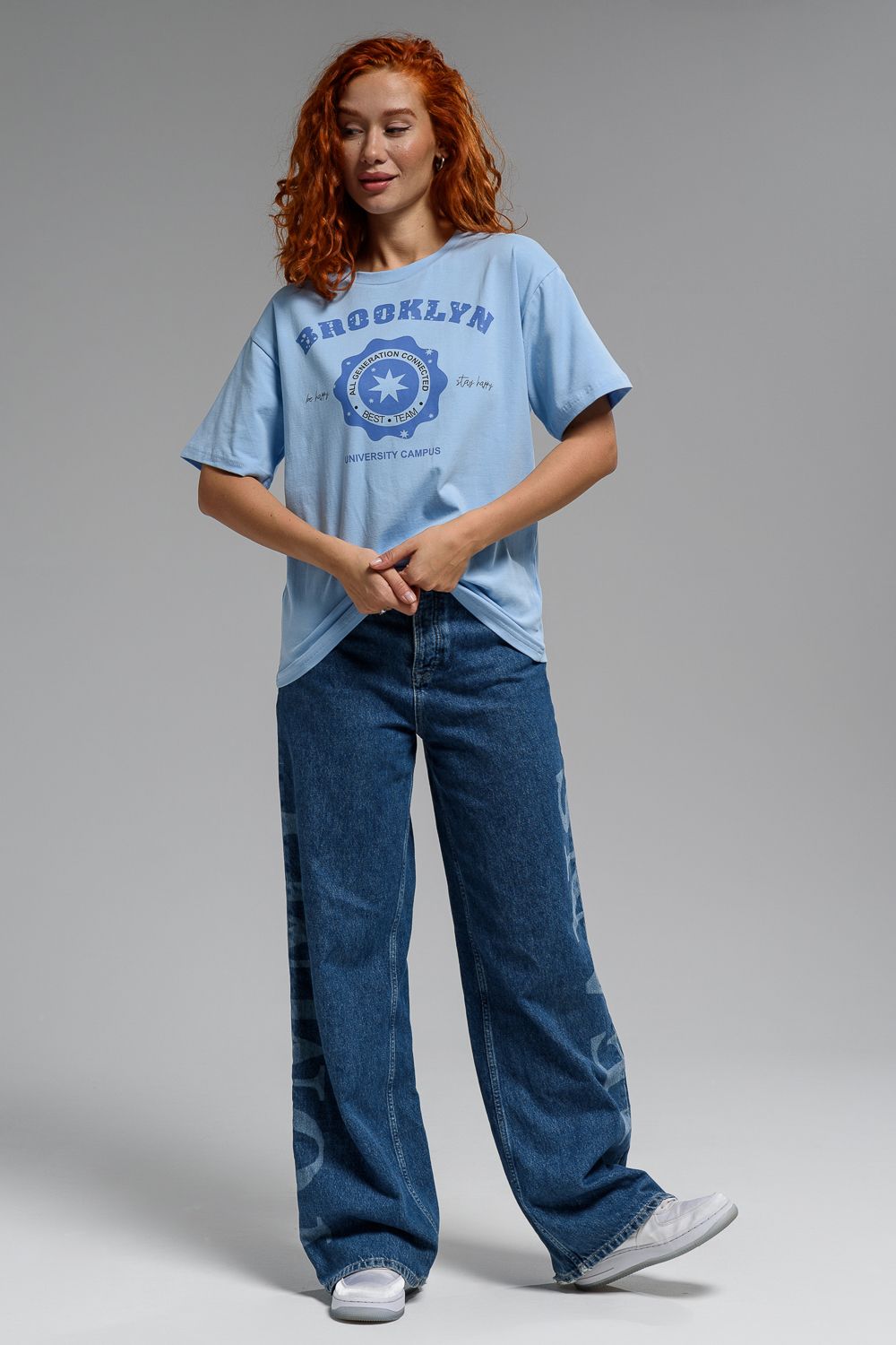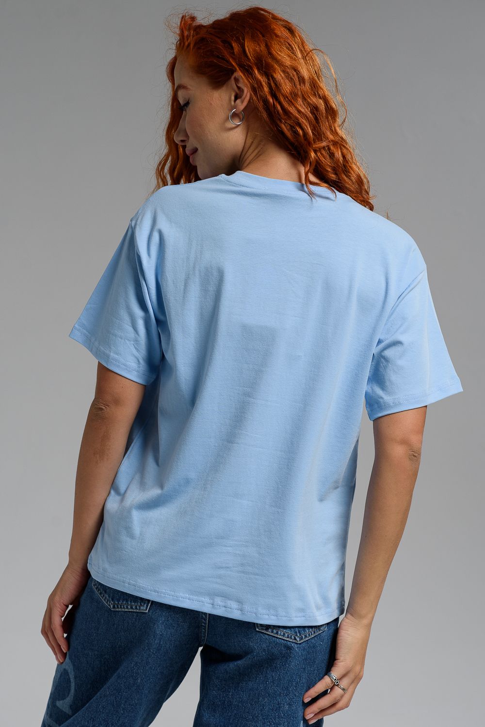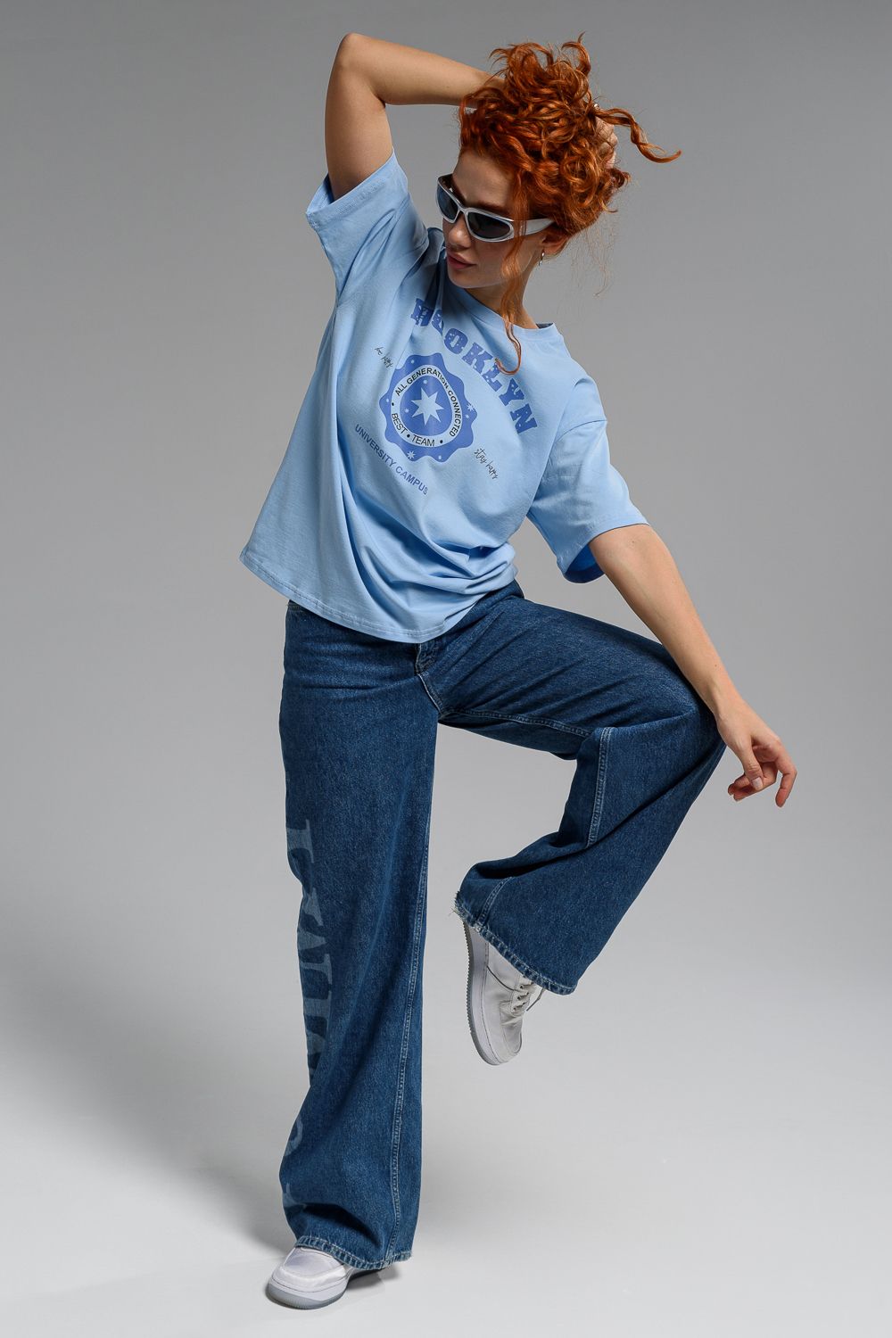 8506/1 Футболка женская оверсайз - голубой+Университет