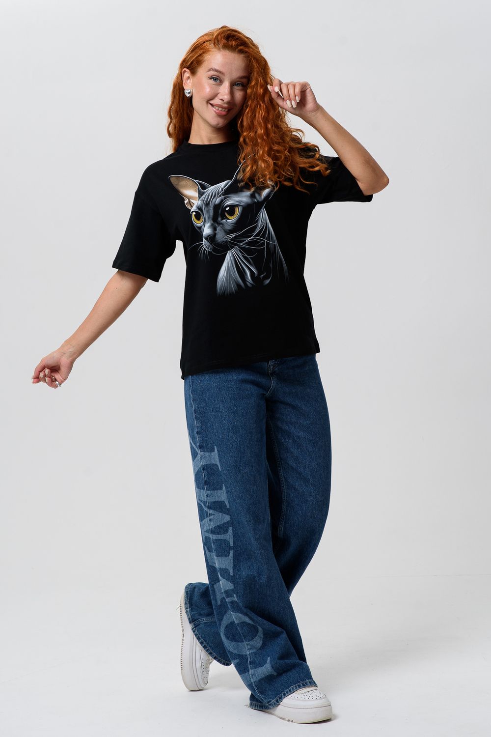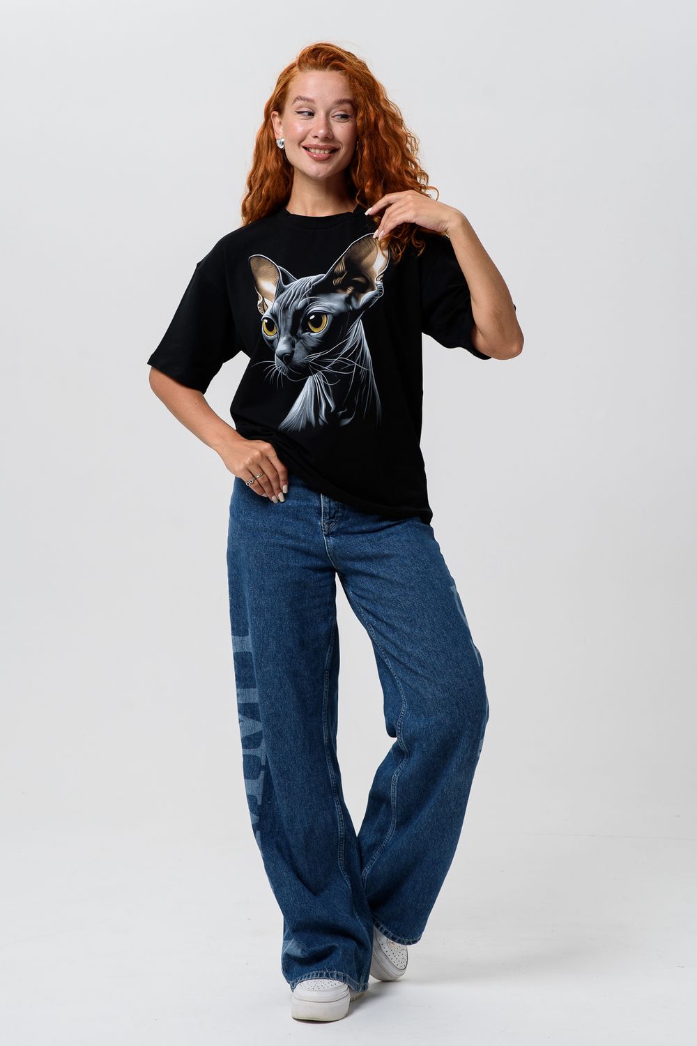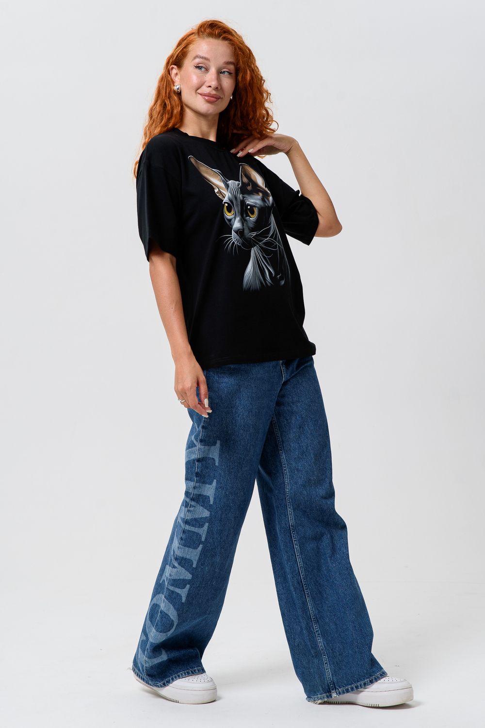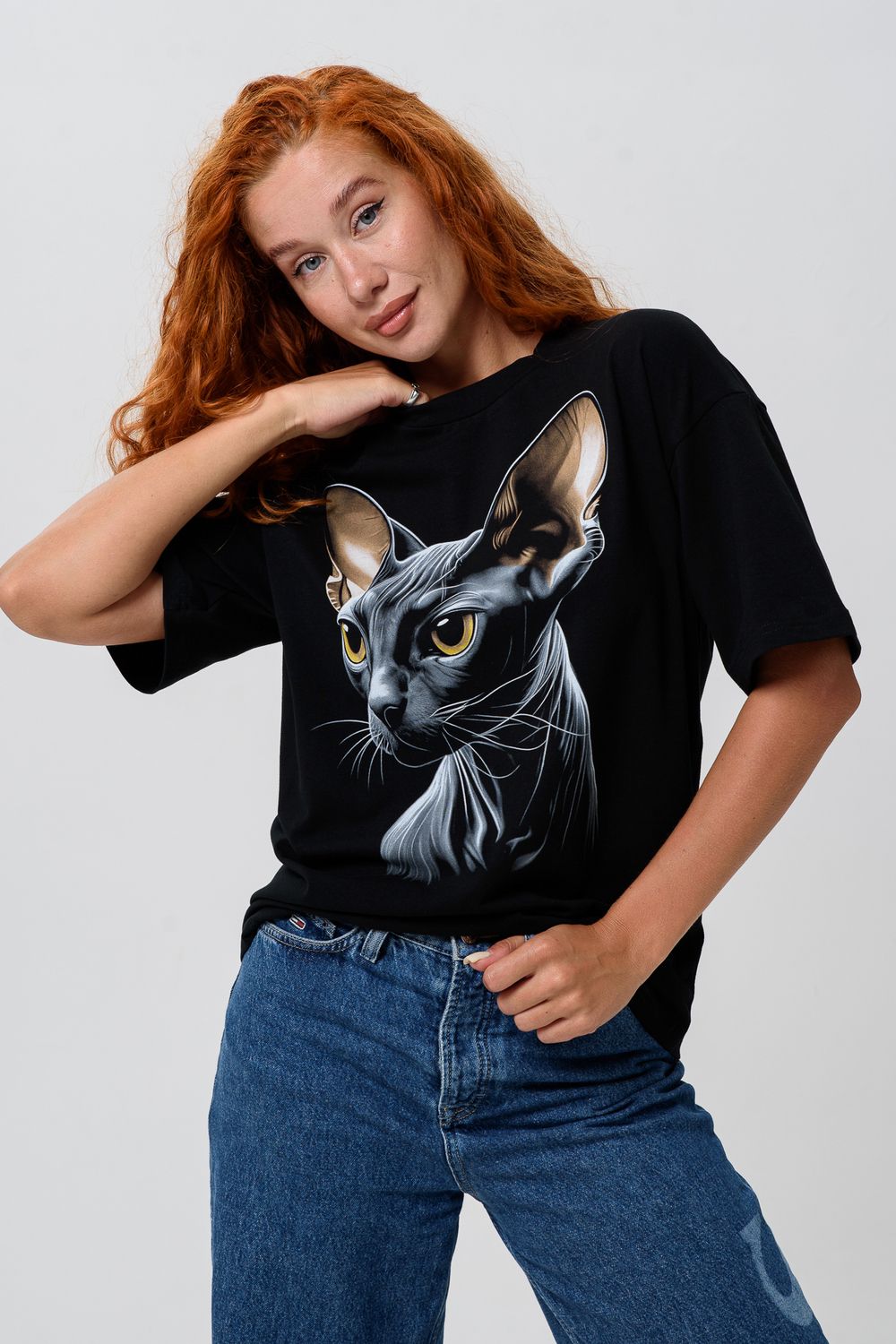 8506/1 Футболка женская оверсайз - сфинкс+черный