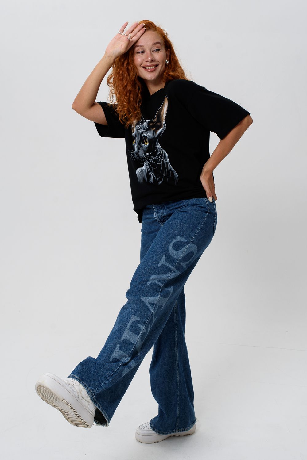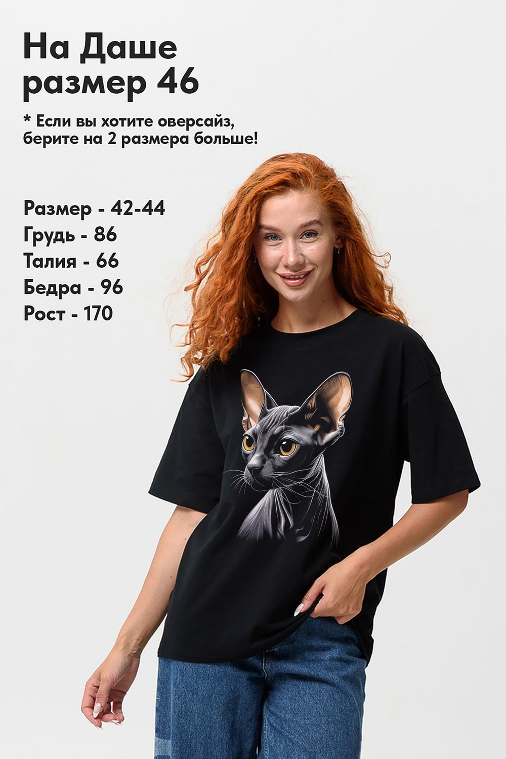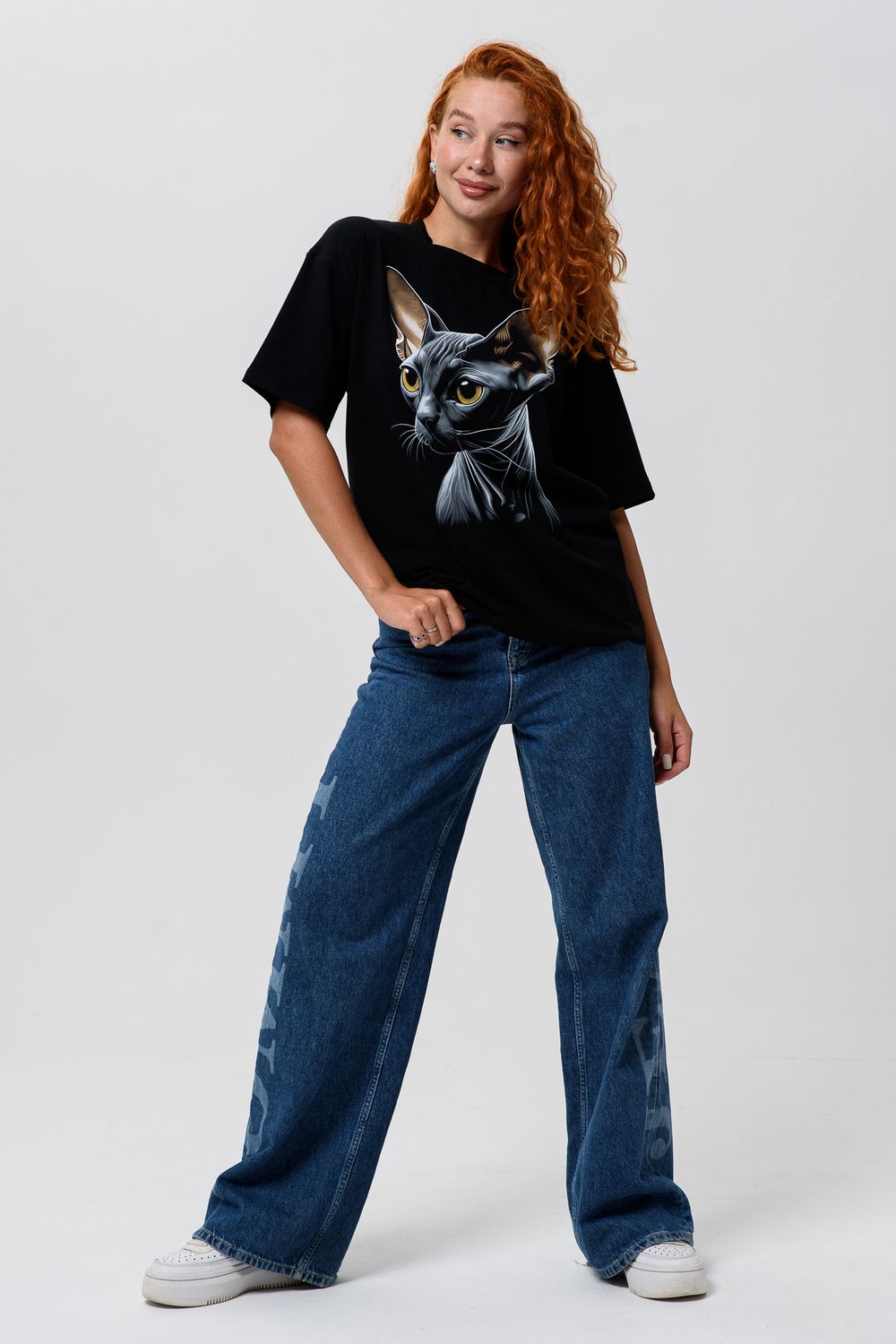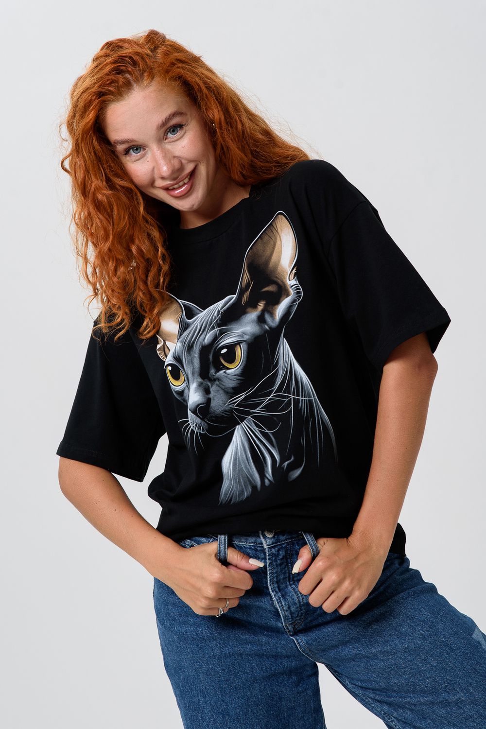 8506/1 Футболка женская оверсайз - сфинкс+черный
