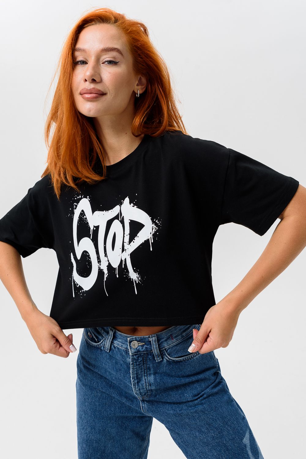 8512 Футболка женская - черный+Стоп