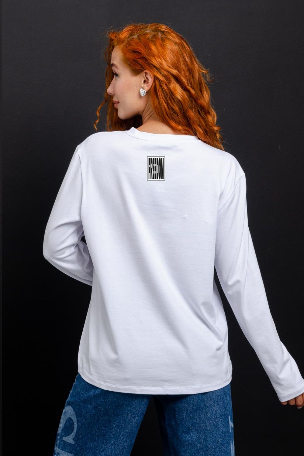 8513 Футболка с длинным рукавом женская - белый+Freedom
