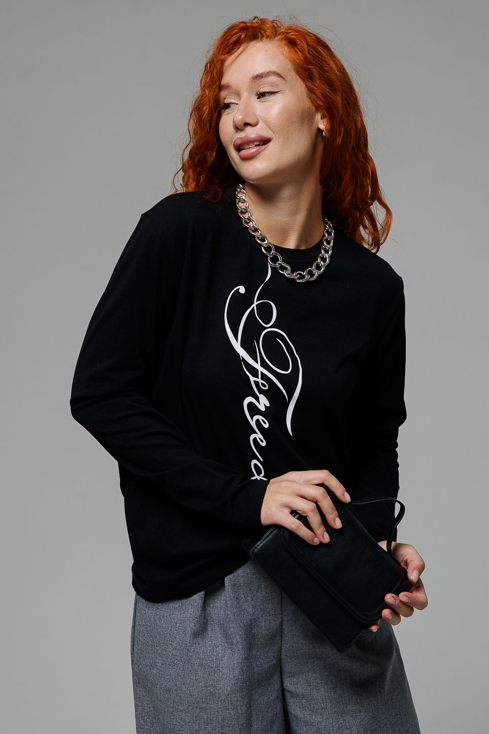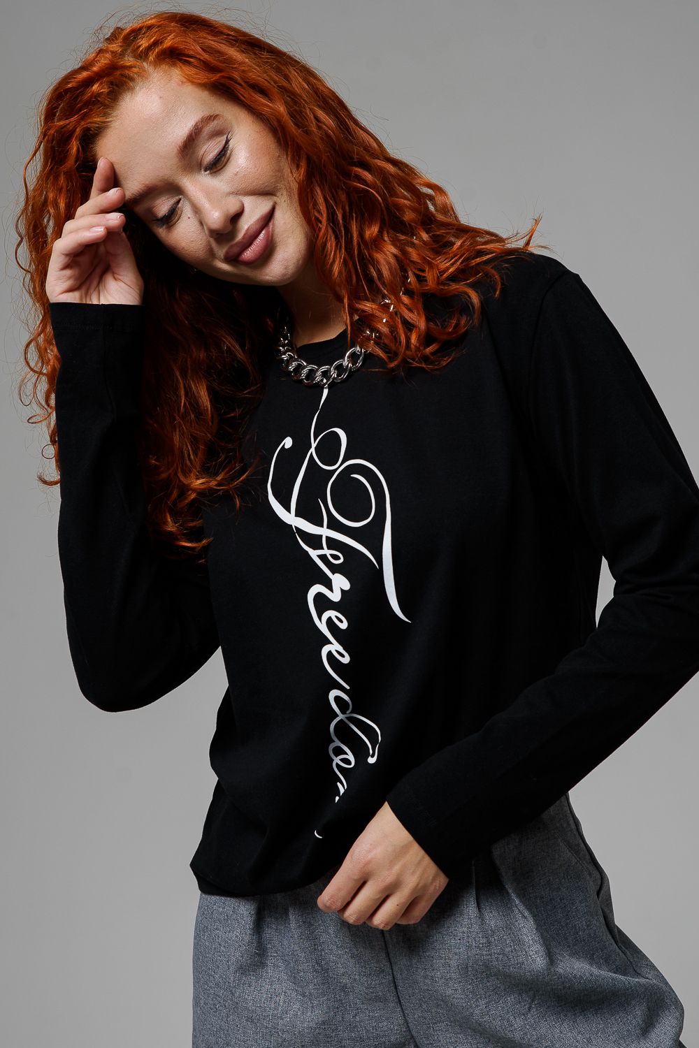 8513 Футболка с длинным рукавом женская - черный+freedom