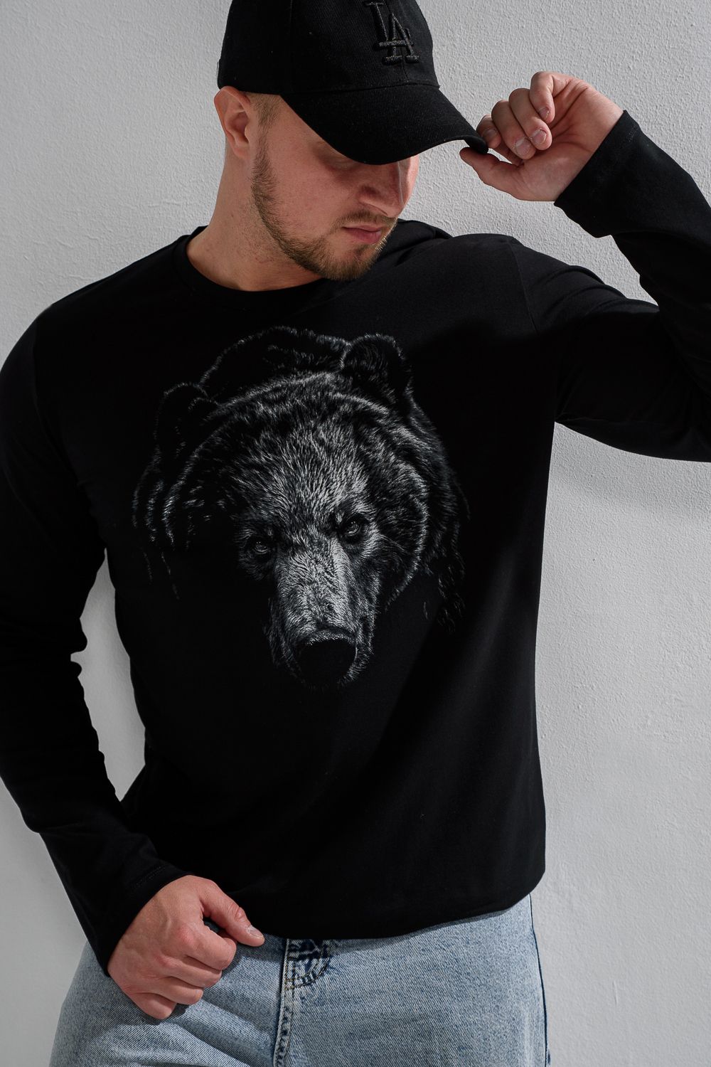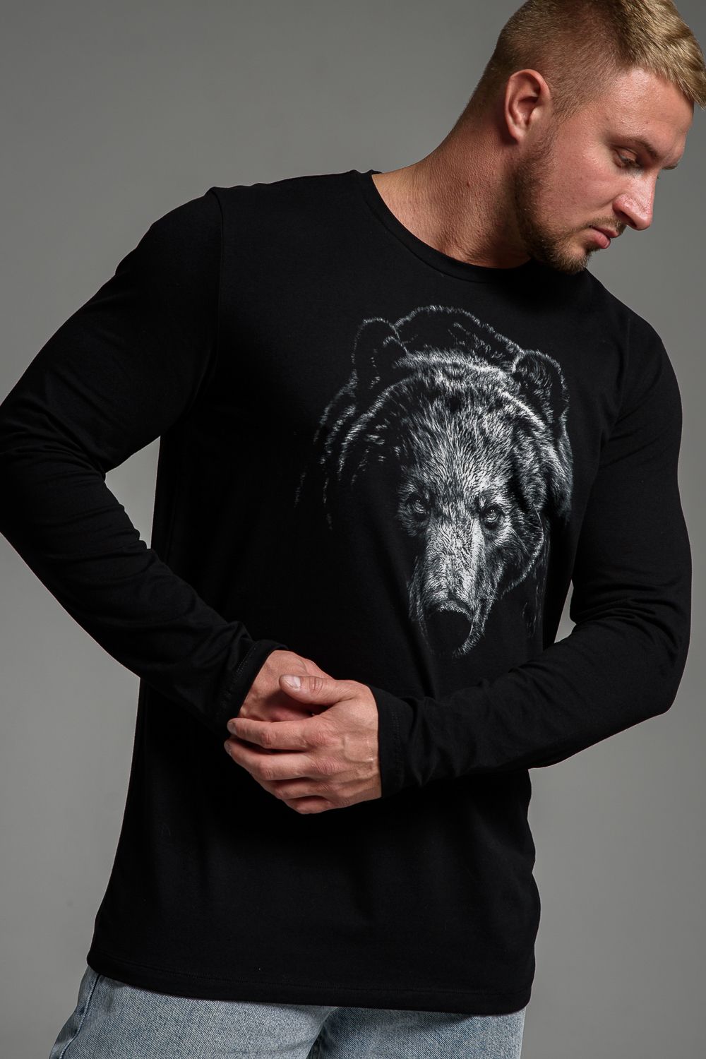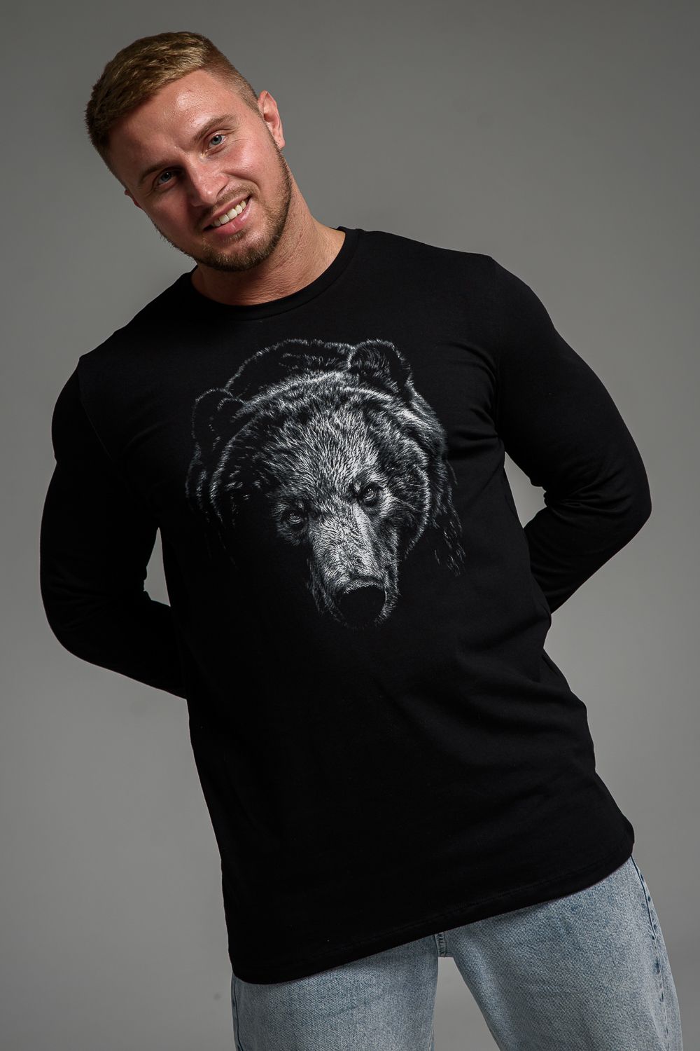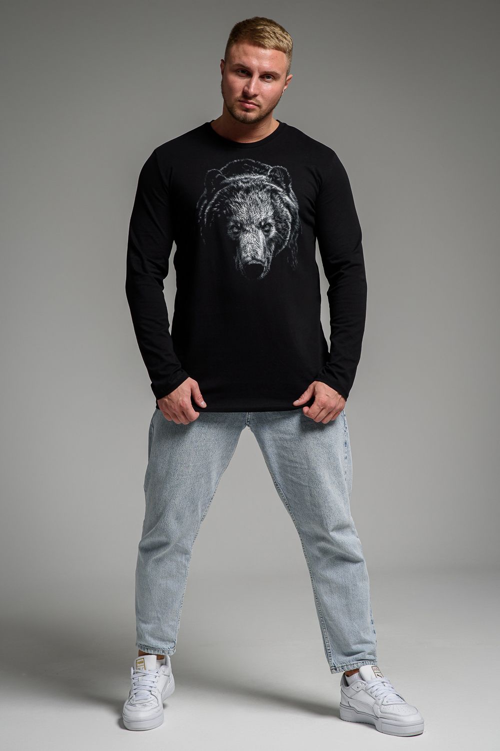 8514/1 Футболка с длинным рукавом мужская - черный+медведь