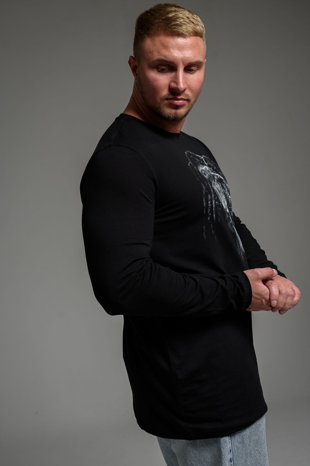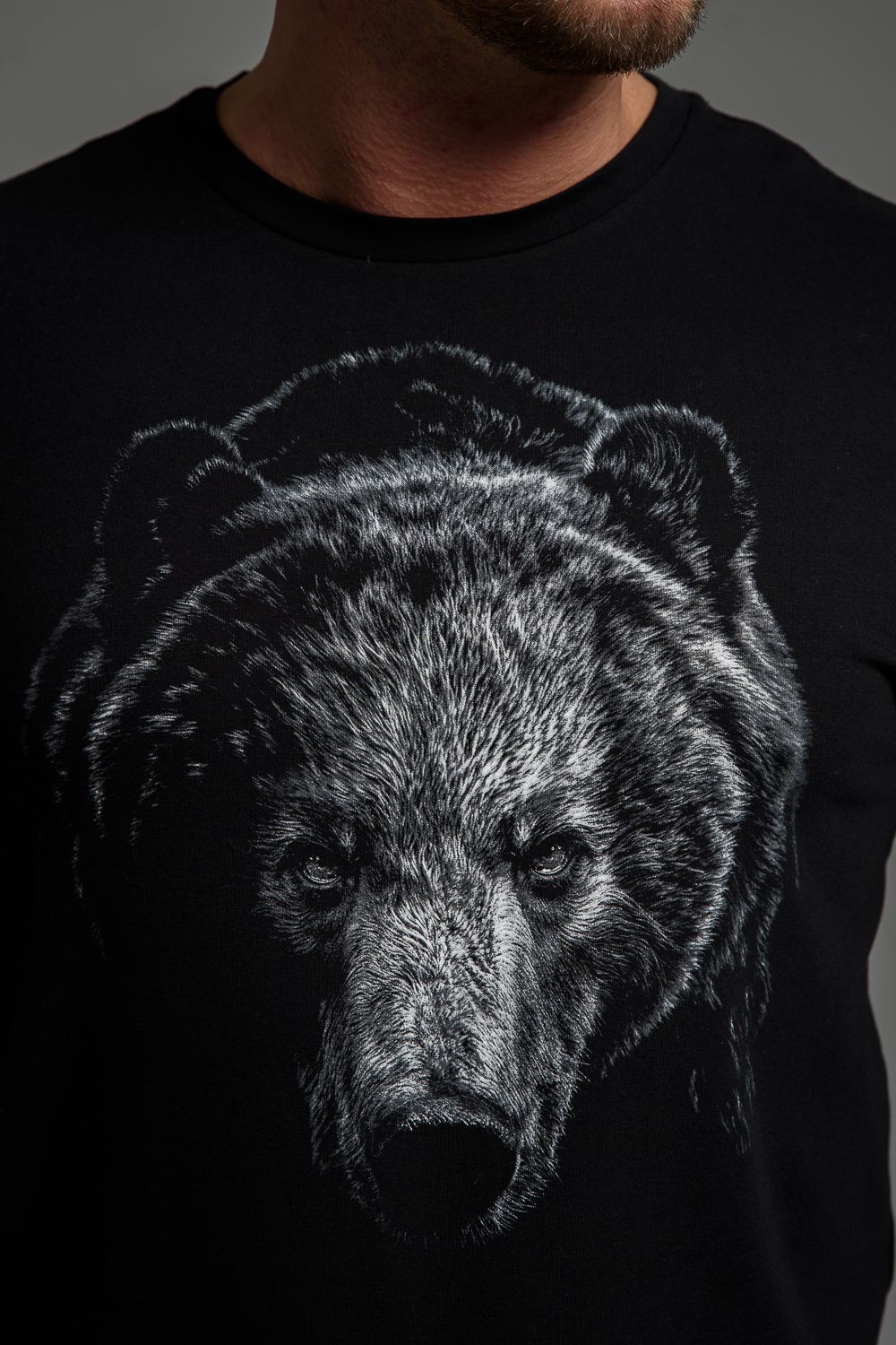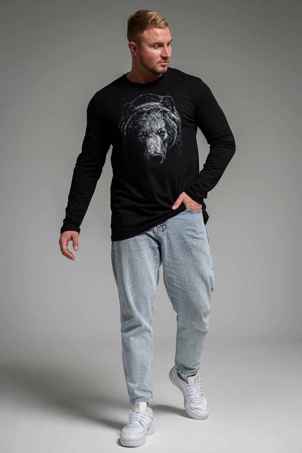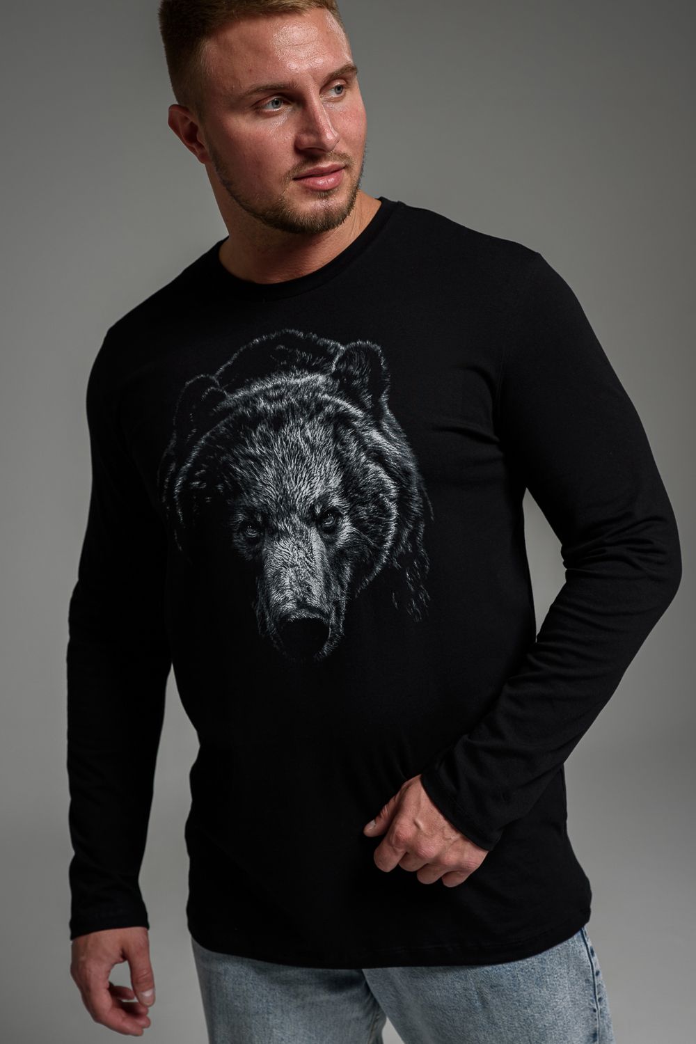8514/1 Футболка с длинным рукавом мужская - черный+медведь