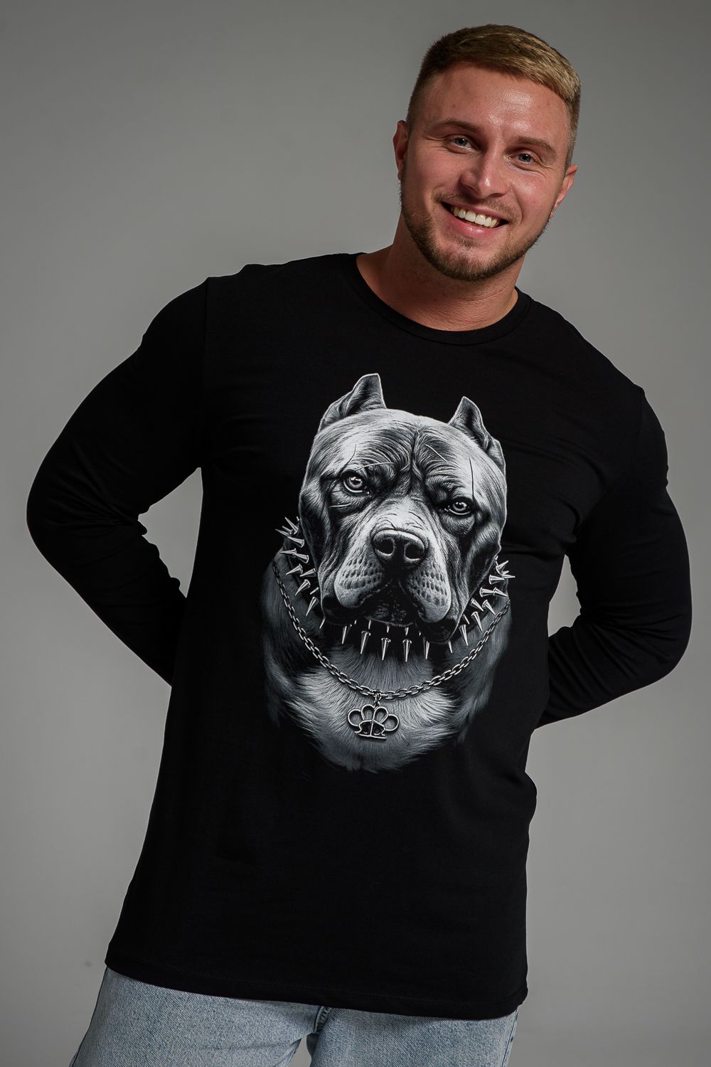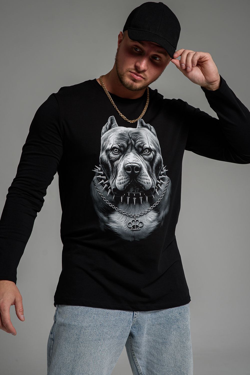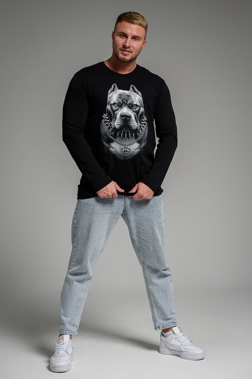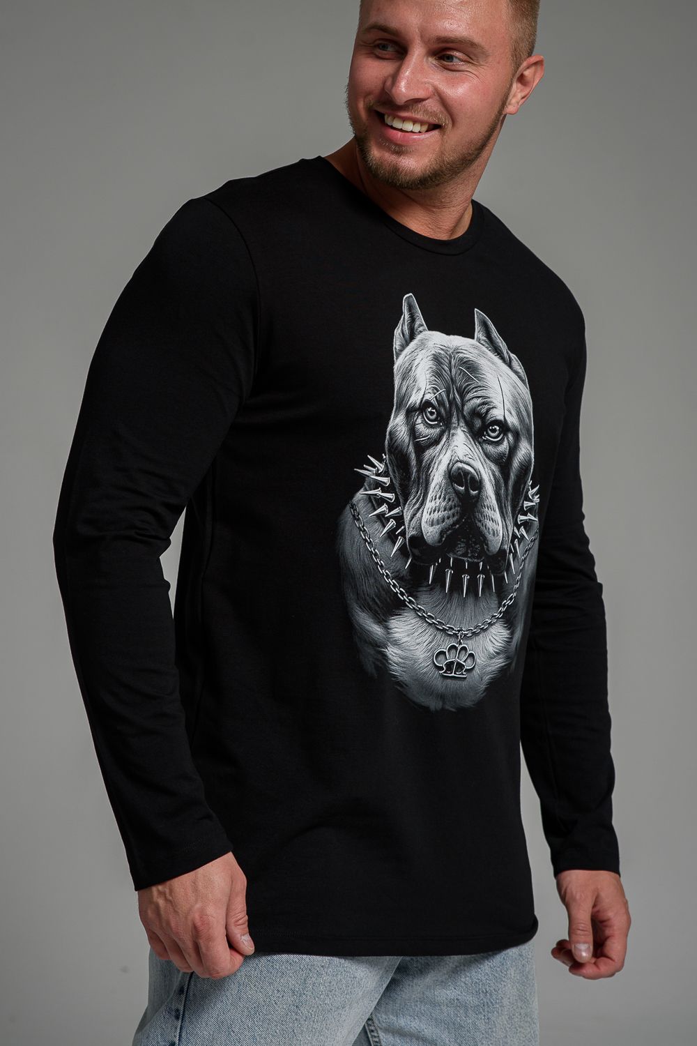 8514/1 Футболка с длинным рукавом мужская - черный+питбуль