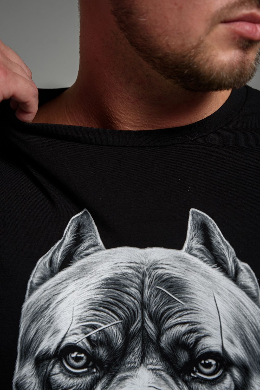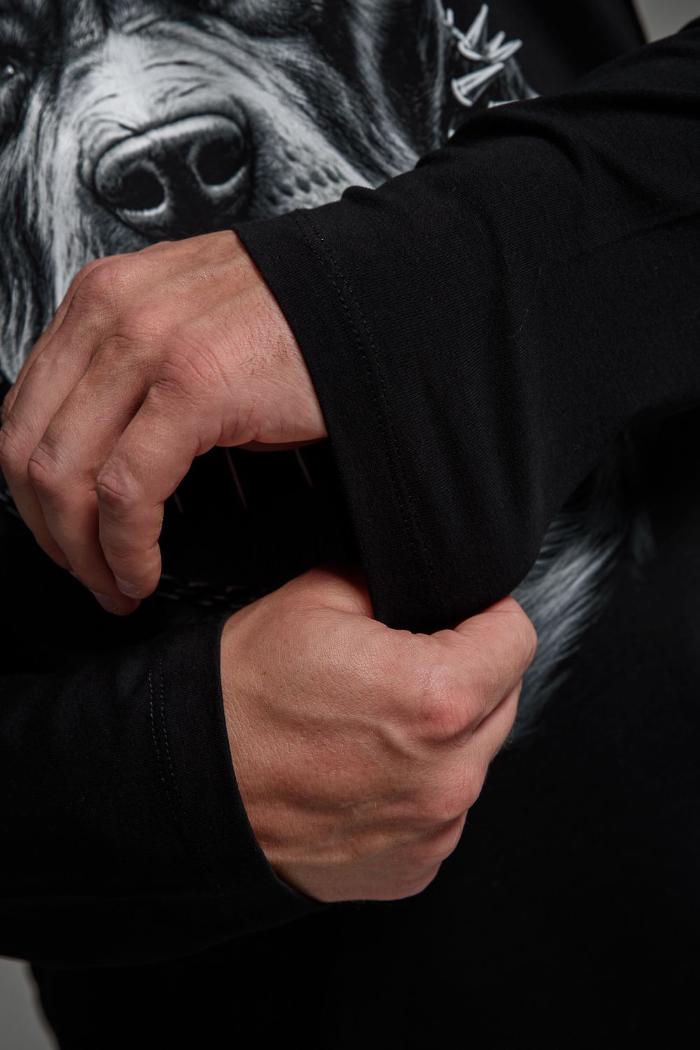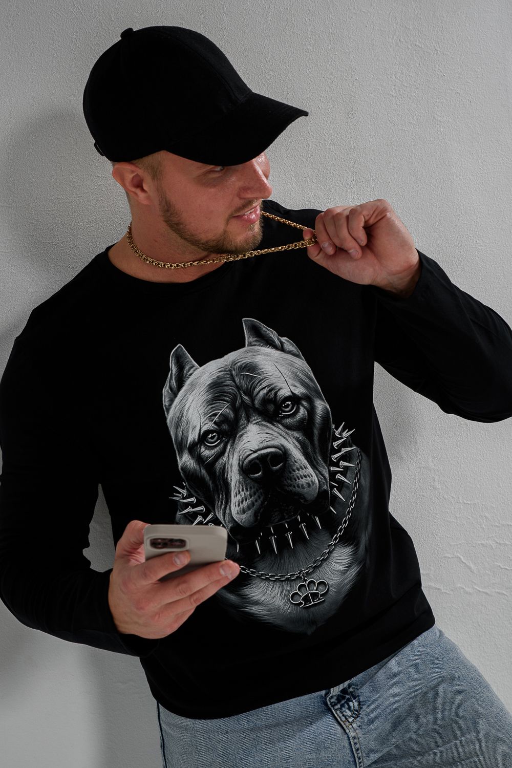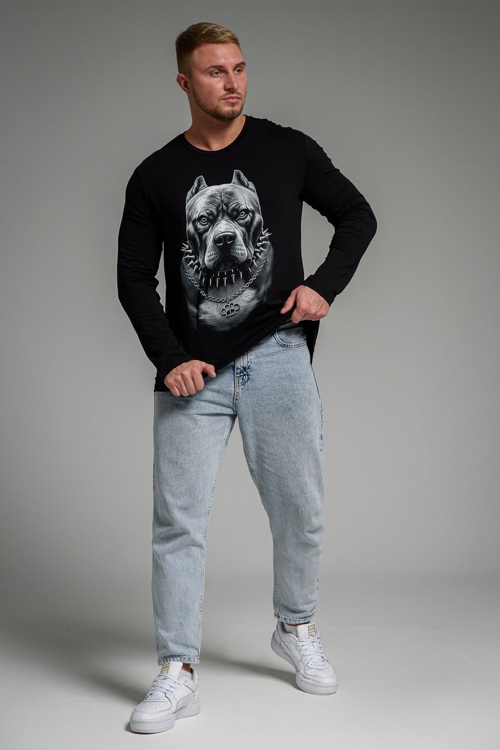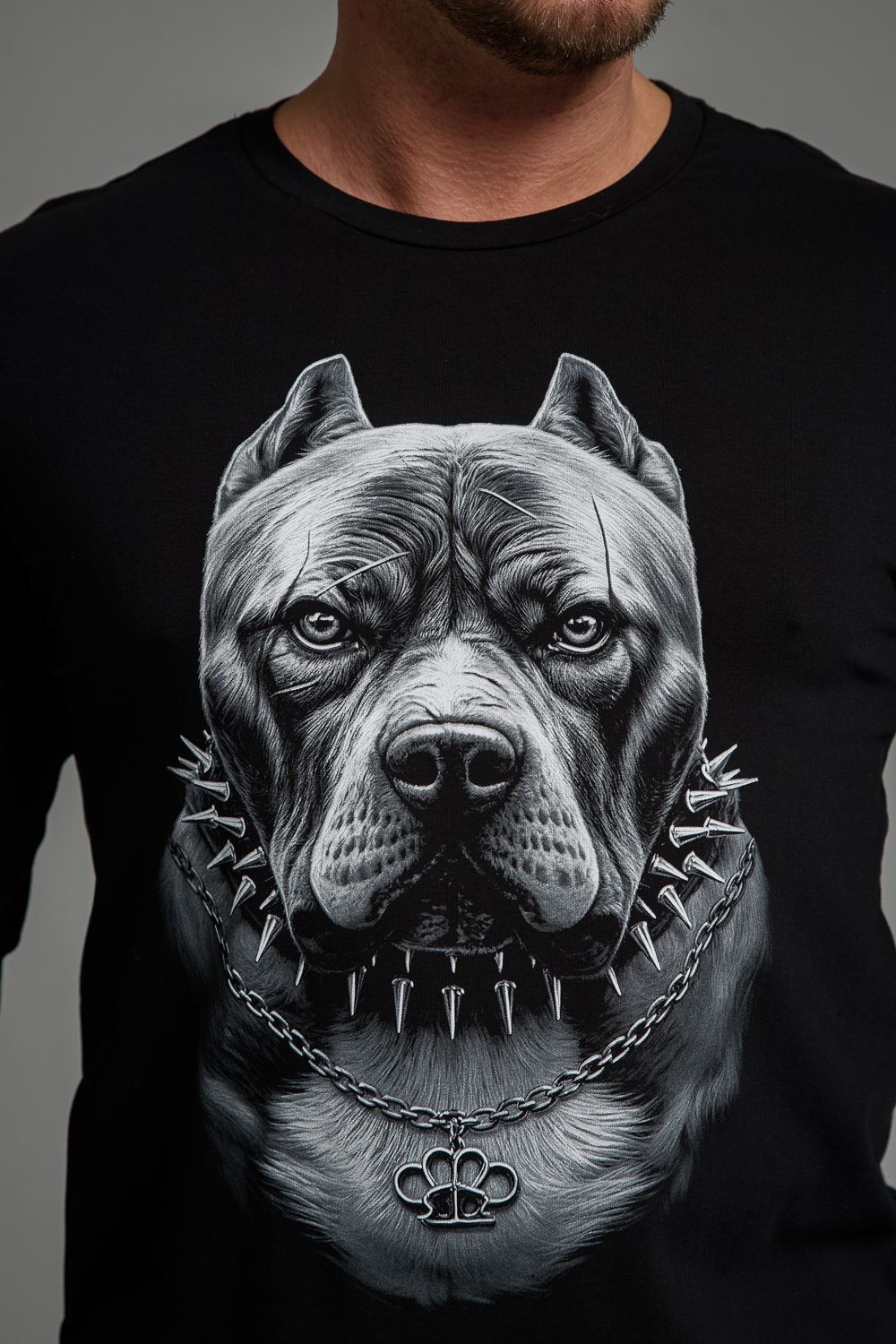 8514/1 Футболка с длинным рукавом мужская - черный+питбуль