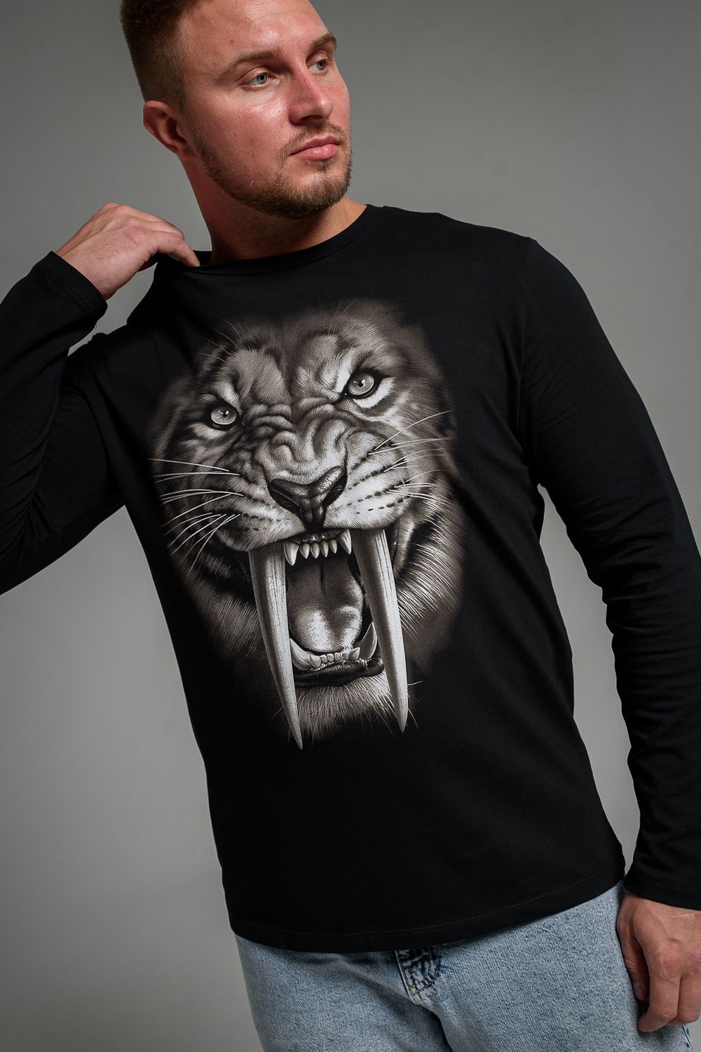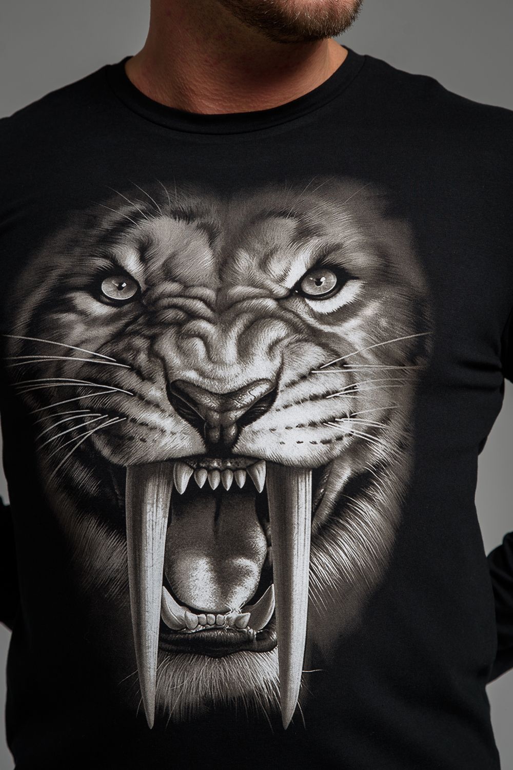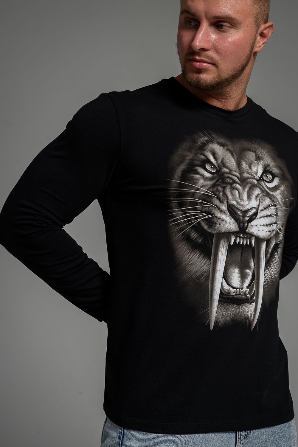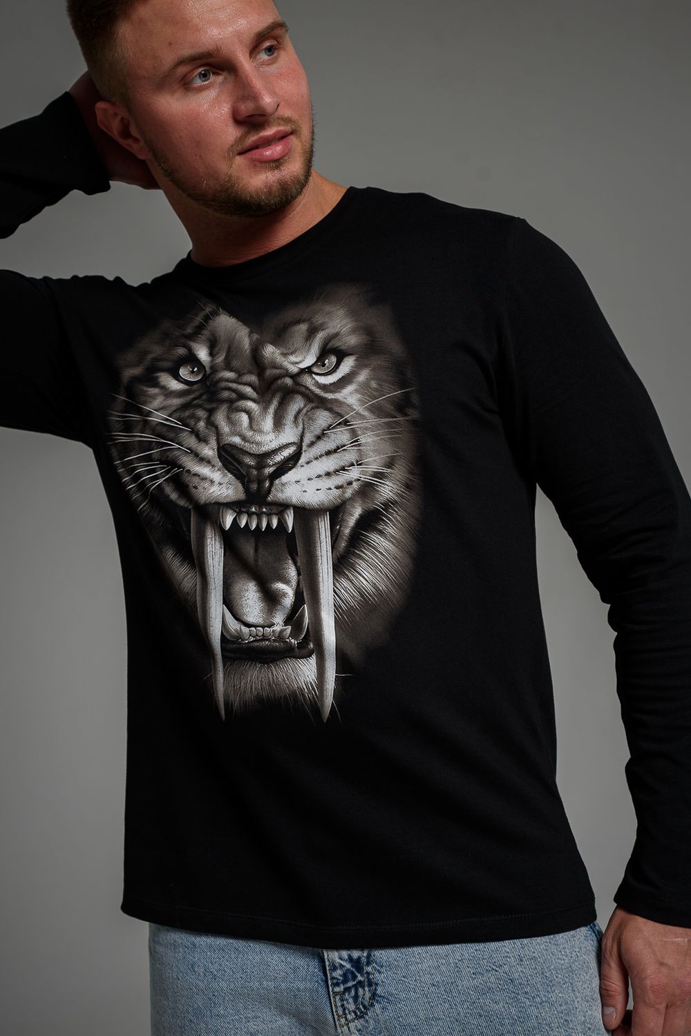 8514/1 Футболка с длинным рукавом мужская - черный+тигр