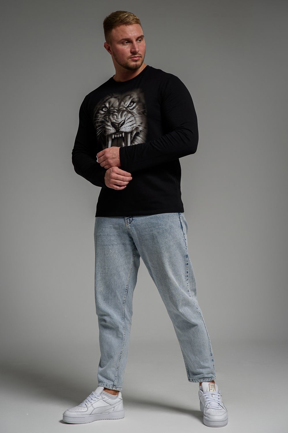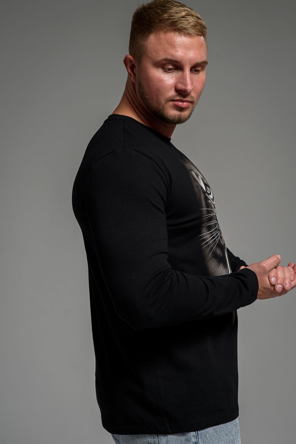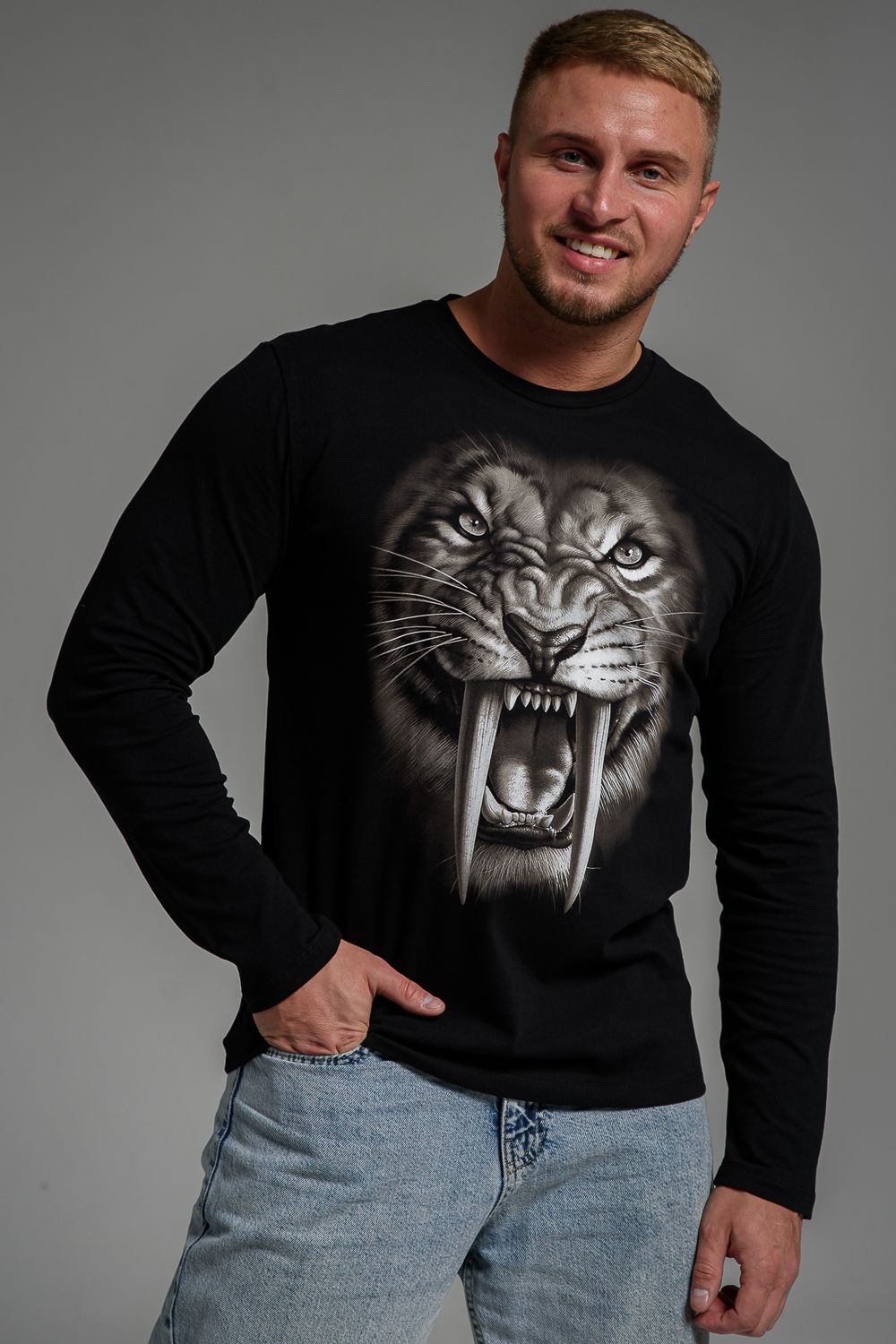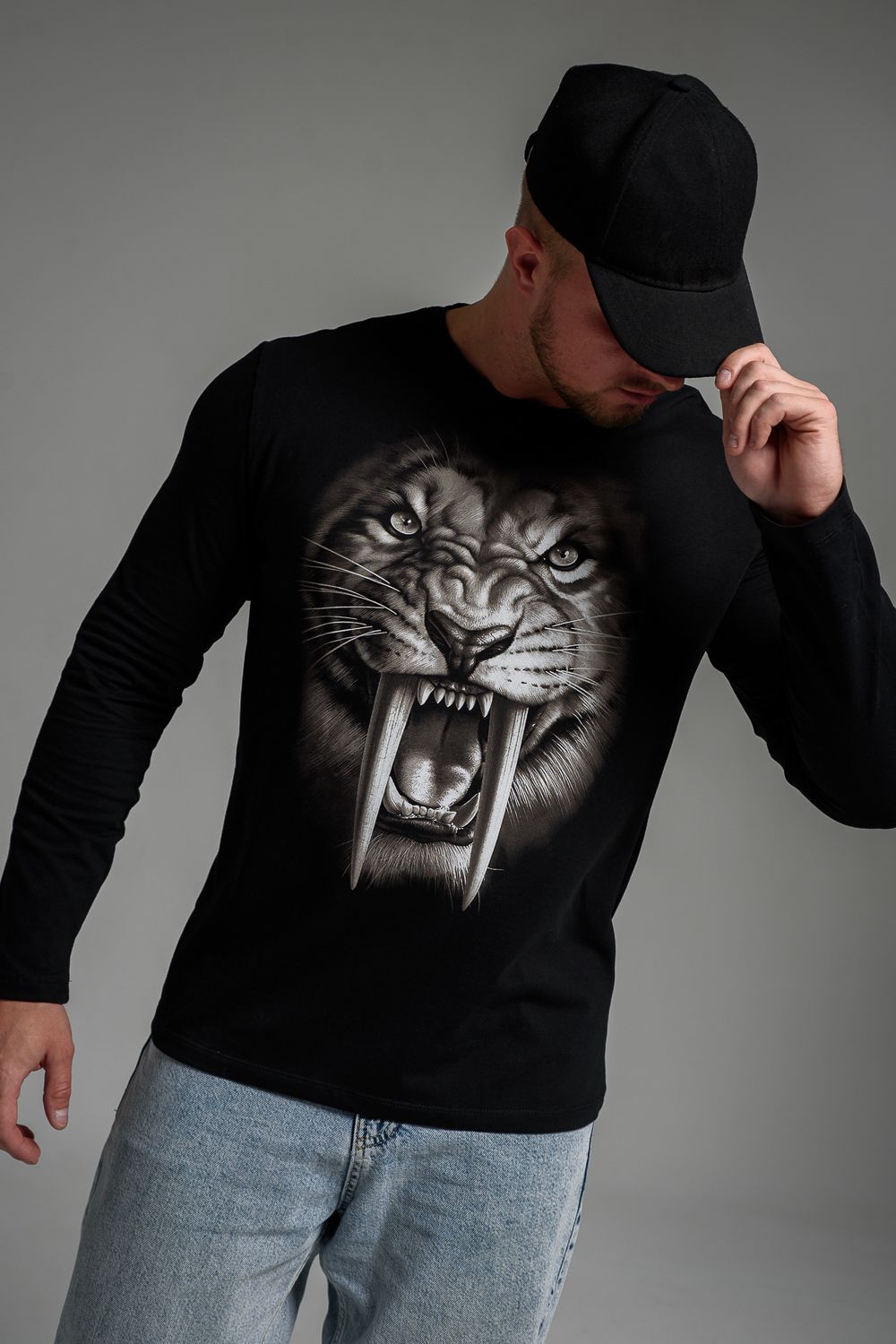 8514/1 Футболка с длинным рукавом мужская - черный+тигр