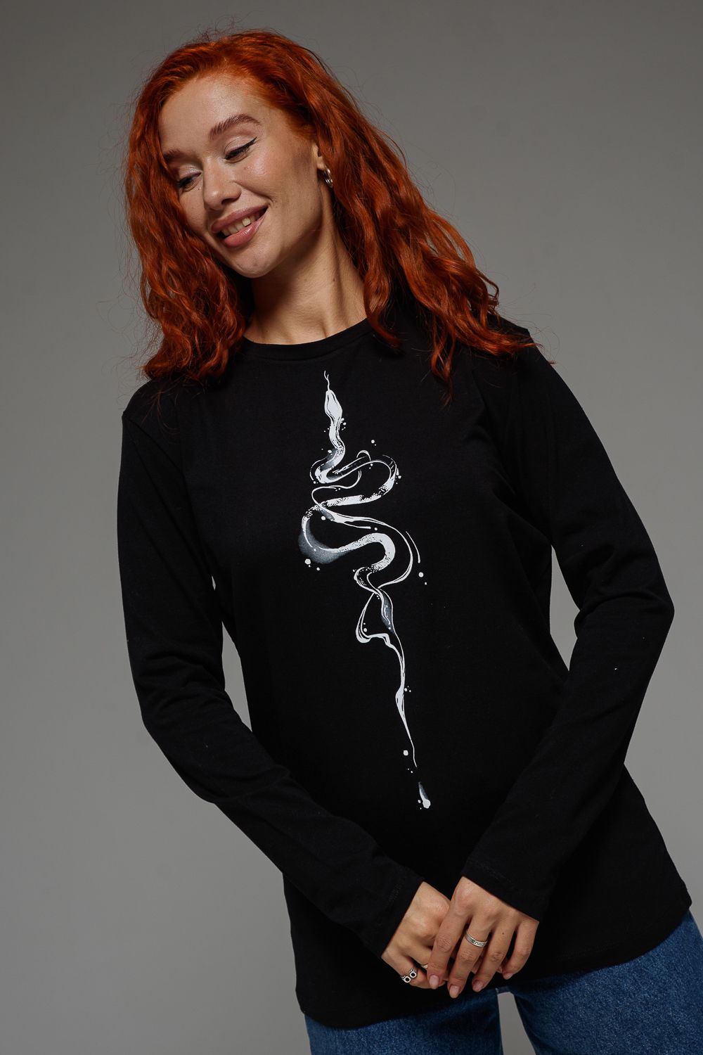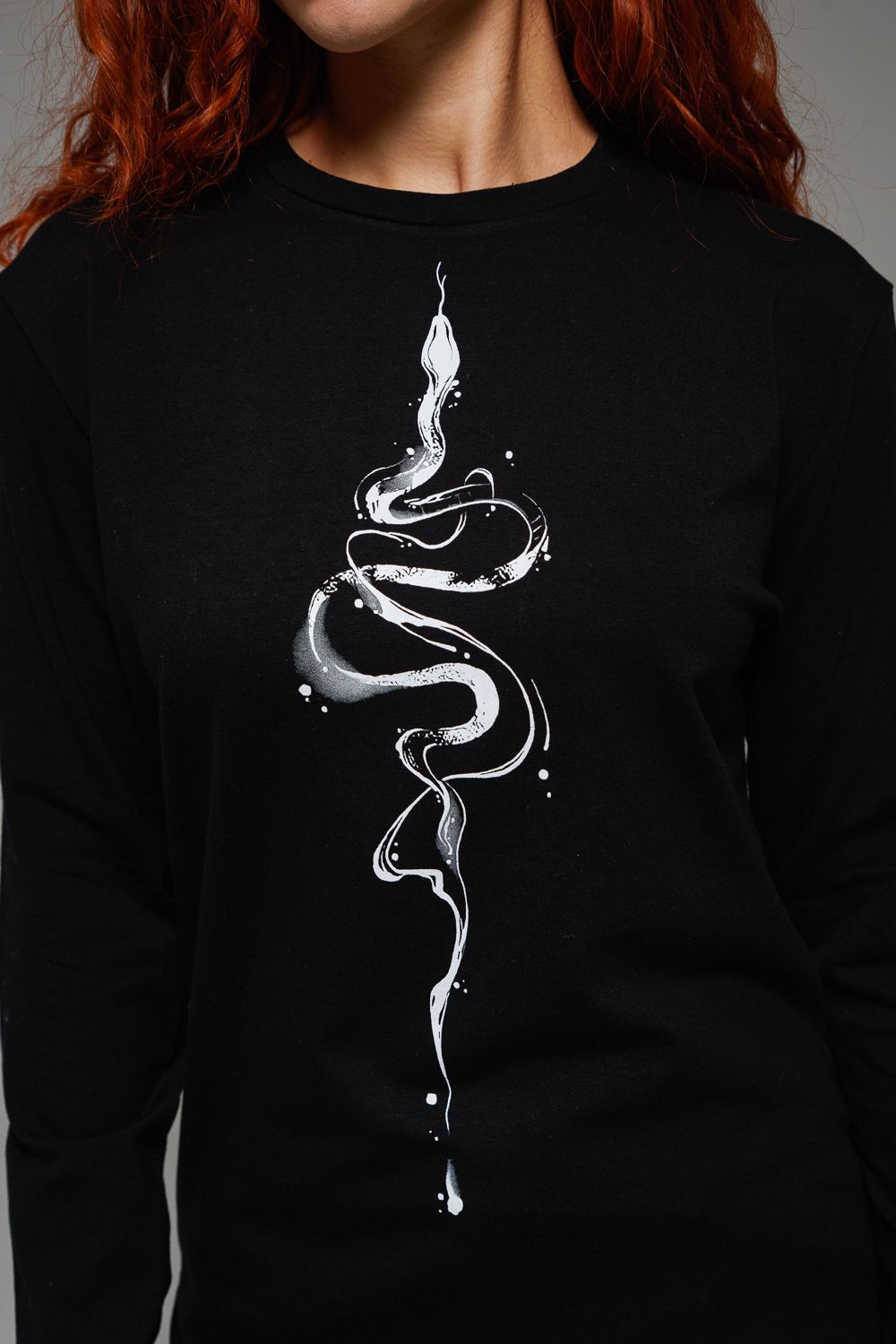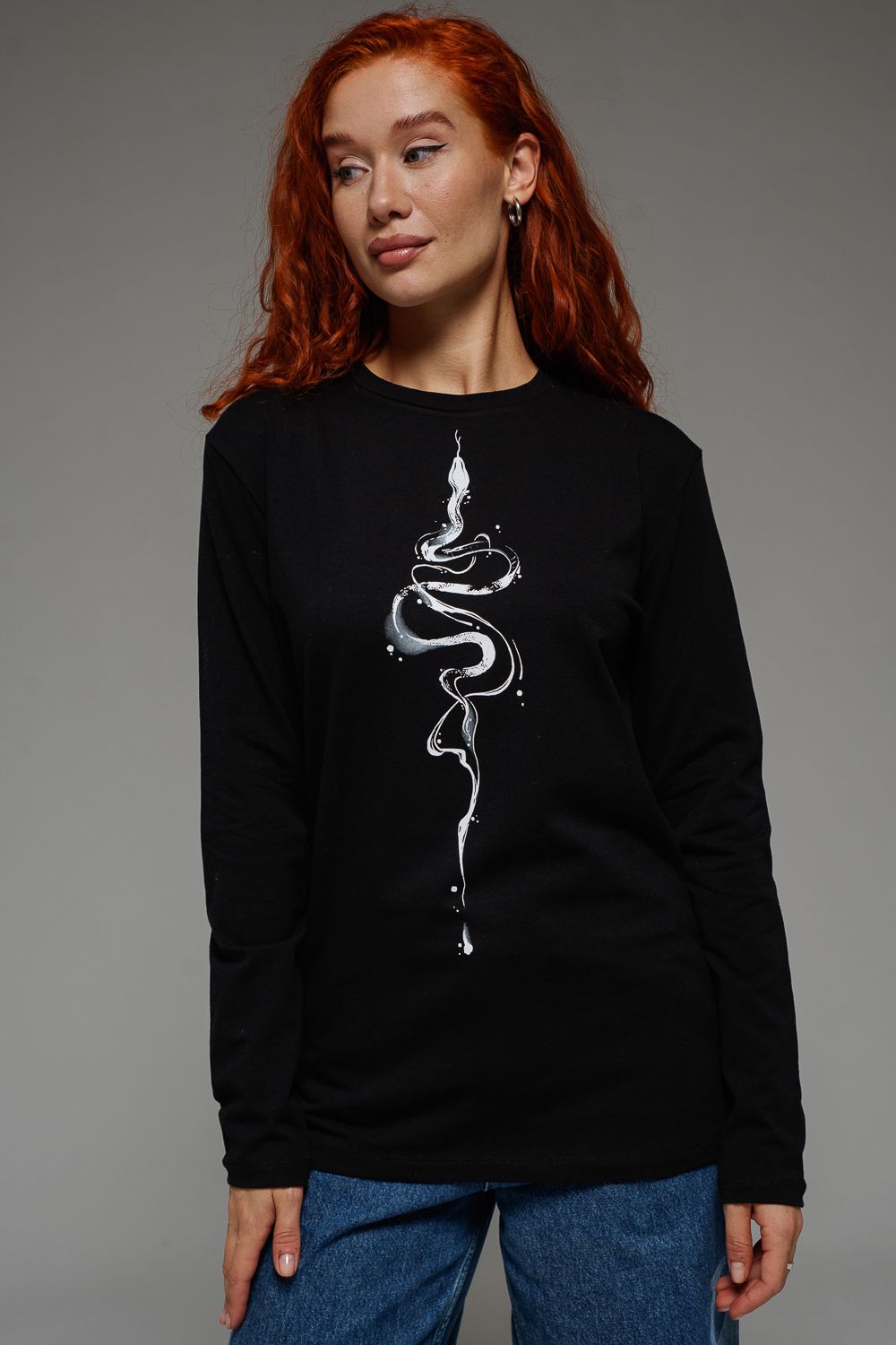 8516 Футболка с длинным рукавом женская - черный+змея