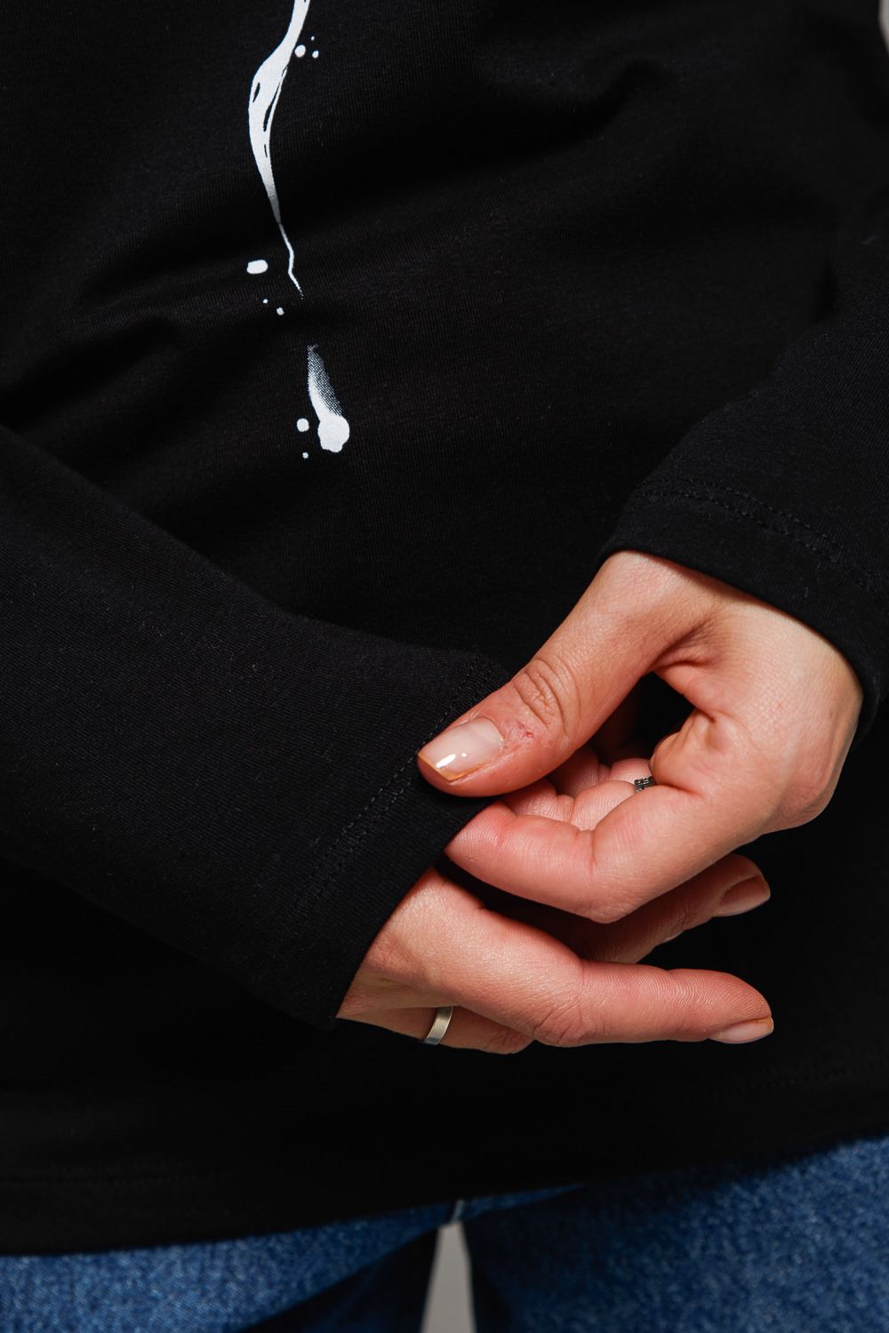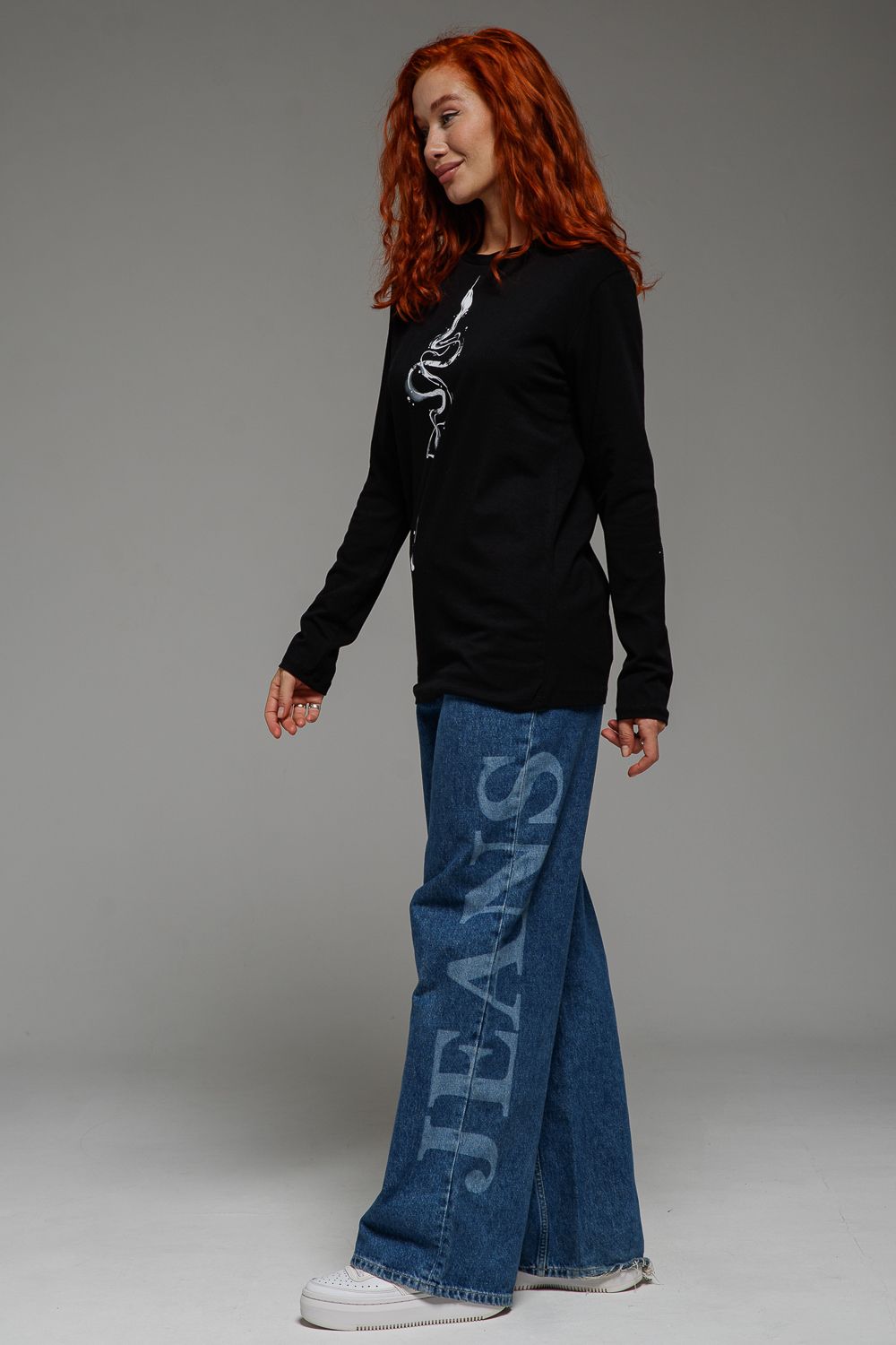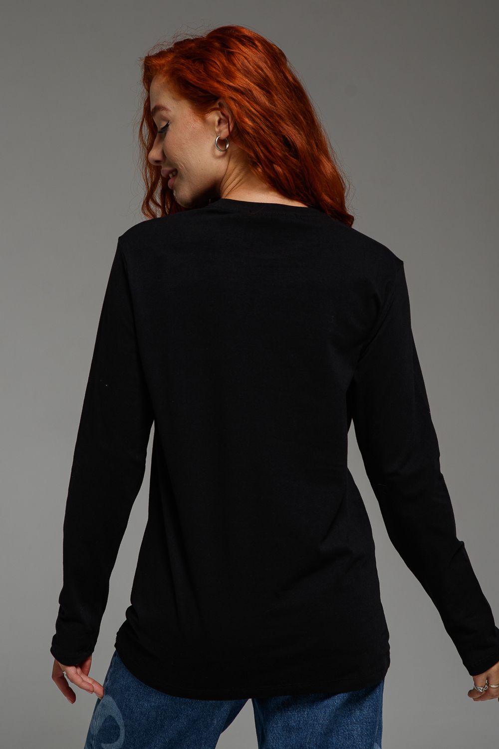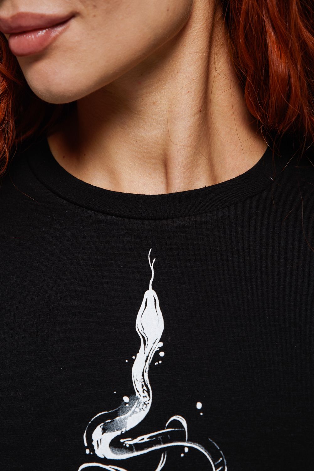 8516 Футболка с длинным рукавом женская - черный+змея