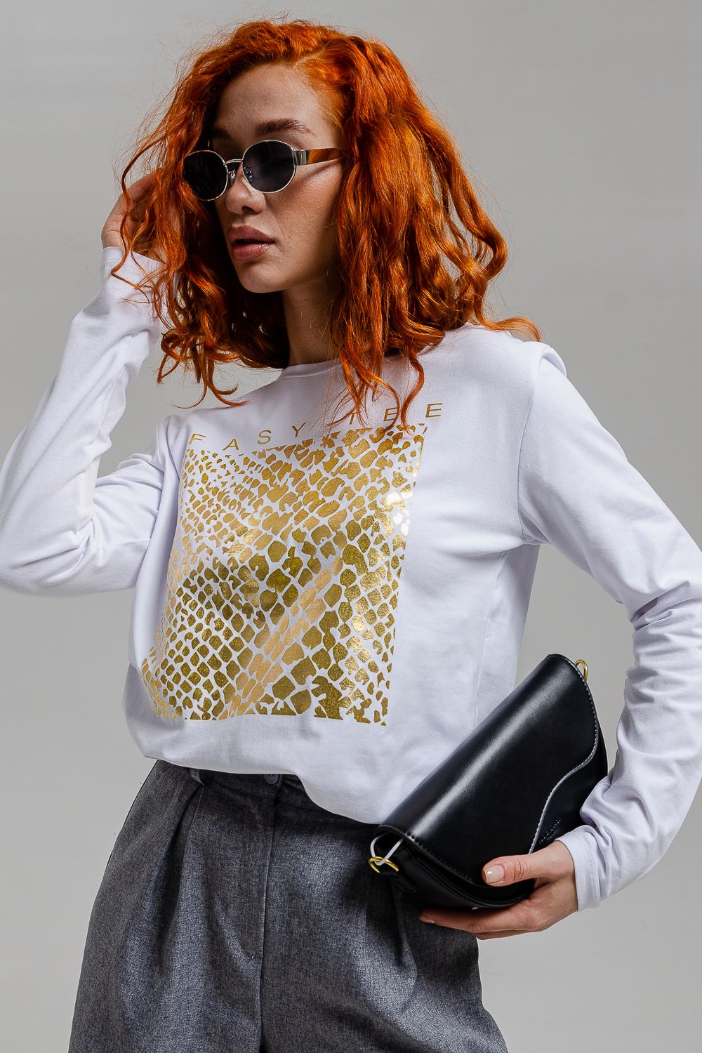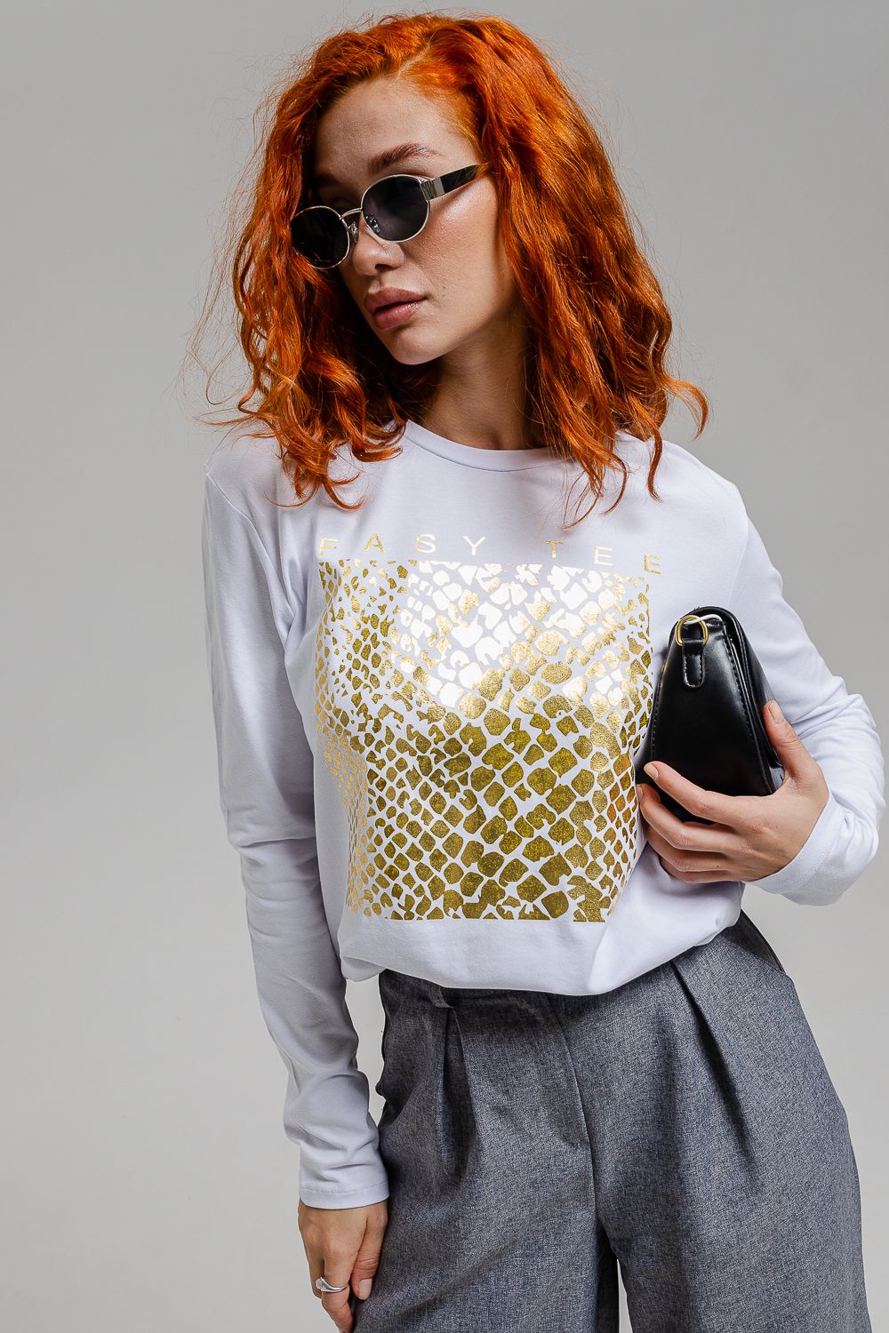 Лонгслив снова в моде и прочно обосновался в базовом гардеробе современного человека. Удобная трикотажная кофта представляет собой футболку с длинным рукавом, которую можно использовать как самостоятельный элемент, так и носить под пиджак, толстовку или рубашку. Лонгслив выполнен из высокоплотного хлопкового трикотажа и является невероятно комфортным и удобным. Футболка с длинными рукавами имеет прямой базовый крой и классическую линию плеча. Лонгслив - это неформальный стиль, когда на футболку можно надеть клетчатую рубашку и сочетать с кедами и джинсами. За счет натуральной ткани лонгслив можно носить в качестве домашней одежды или нательного белья, одежды для сна, тренировочной спортивной одежды и военной экипировки. Если вы хотите силуэт "оверсайз" нужно взять на размер или два больше, ориентируйтесь по таблице замеров. Принт "фольга" - очень яркий и блестящий.