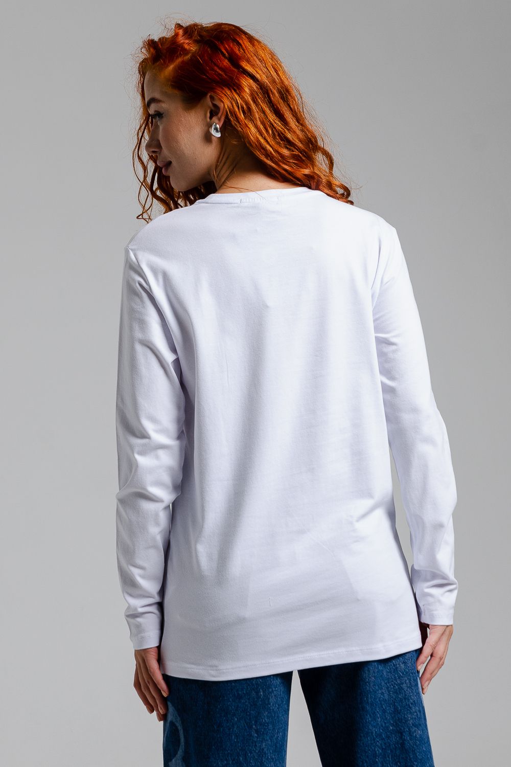 8519/1 Футболка с длинным рукавом женская - белый+мода