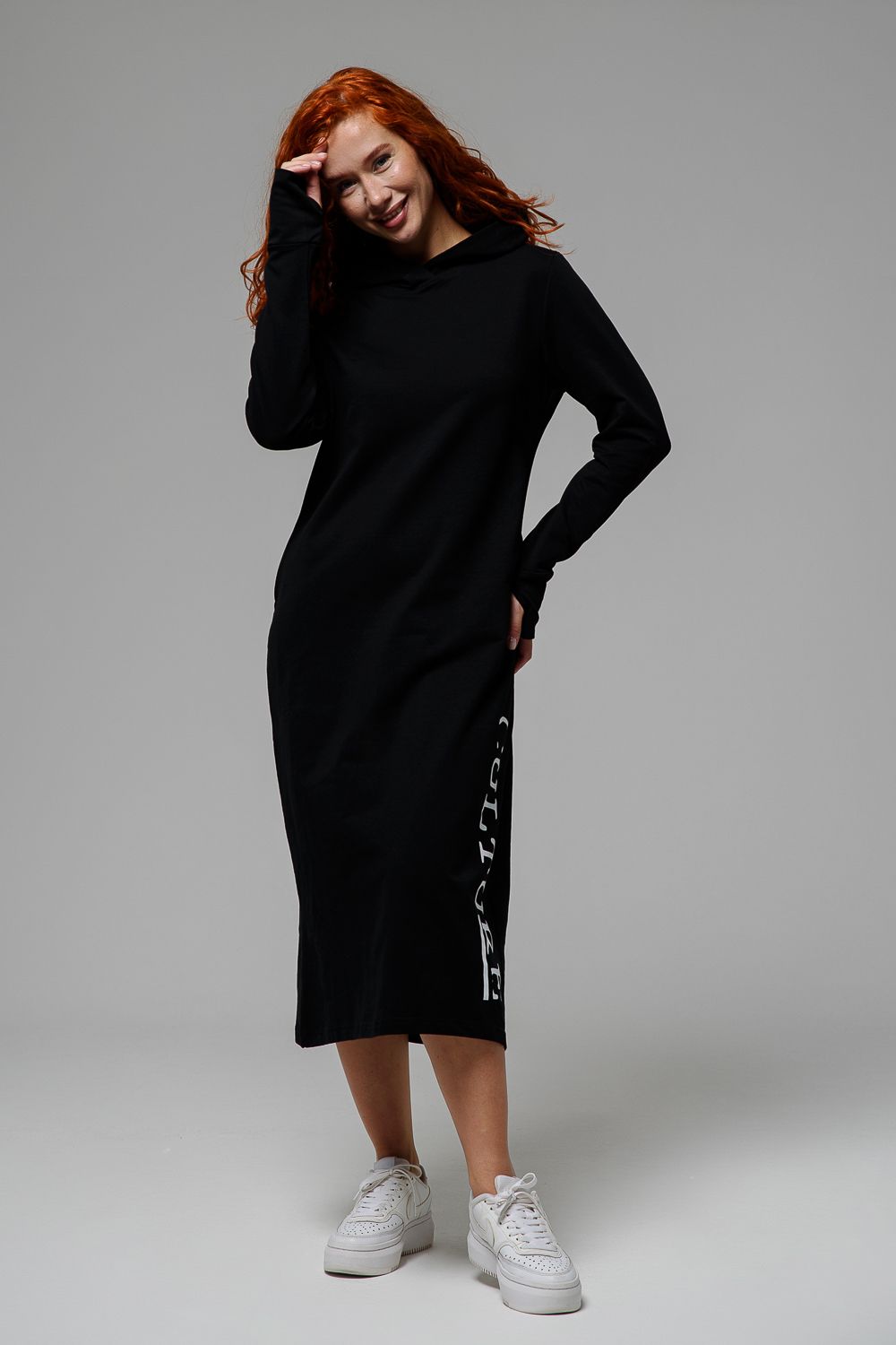 Женщины, которые хотят выглядеть привлекательно и стильно обязательно оценят это теплое платье с капюшоном и длинным рукавом. Платье - толстовка женское имеет прямой крой макси длины, поэтому легко скрывает изъяны фигуры, подчёркивая плавные линии тела, фасон хорошо подходит для полных. Длина оптимальна для прохладной погоды. Футер с лайкрой без начеса хорошо тянется и отлично держит форму. Ткань платья приятна к телу и очень проста в уходе.