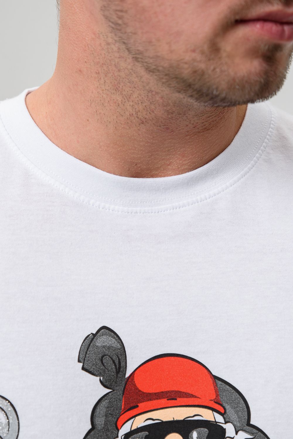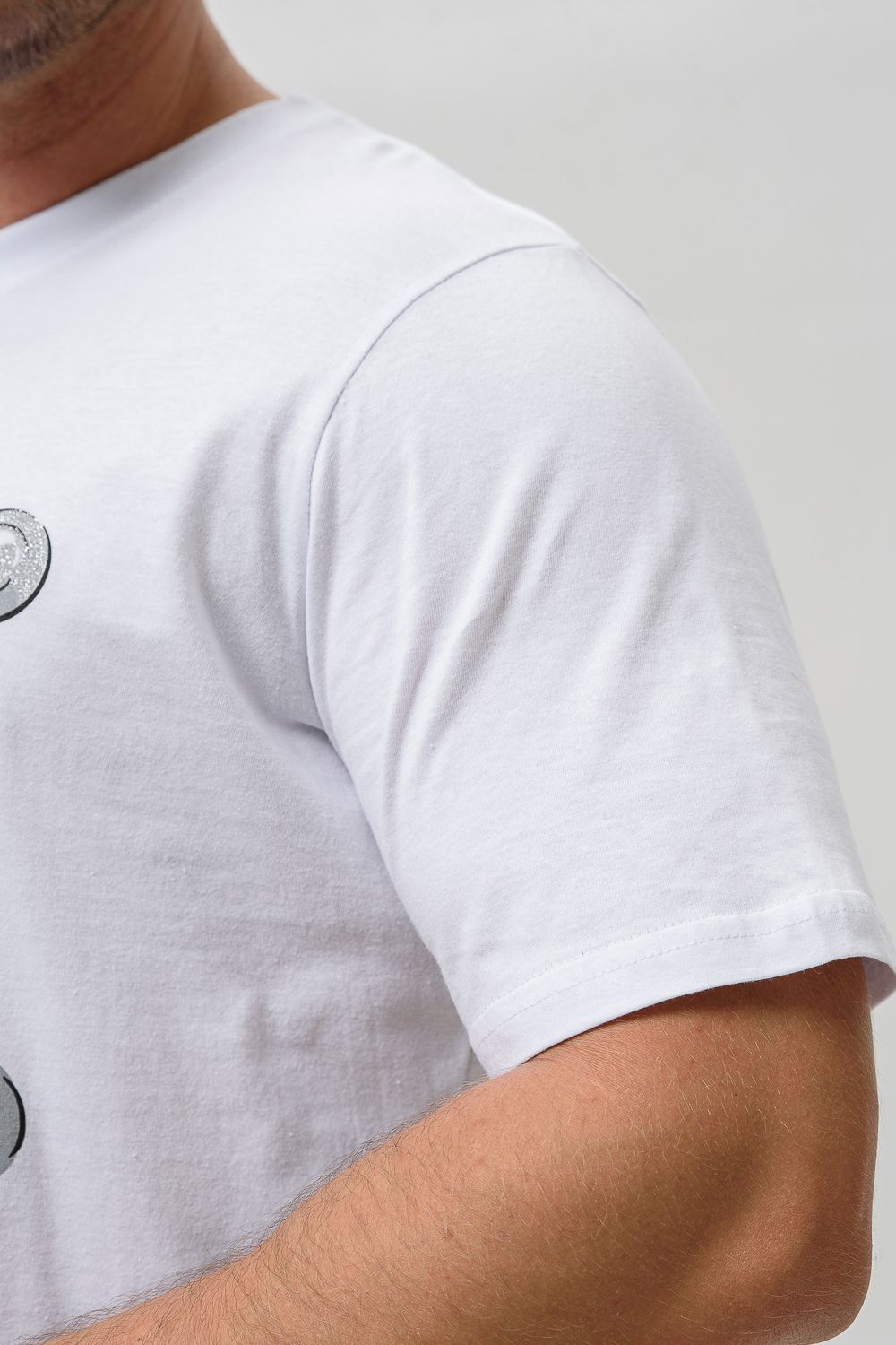 Классическая мужская футболка однотонного цвета. Базовая свободная трикотажная футболка из 100% хлопка - это стильная вещь, которая прекрасно подойдет для всех случаев: отдыха, активных тренировок, прогулки или офиса. Благодаря своему классическому дизайну, она легко сочетается с любой частью гардероба, а ее удлиненная форма и круглый вырез горловины придают удобство и стиль. Производство Узбекистан. Плотность ткани 150-160гр. Принт сделан с использоанием глиттера (декоративные, разноцветные блестки)