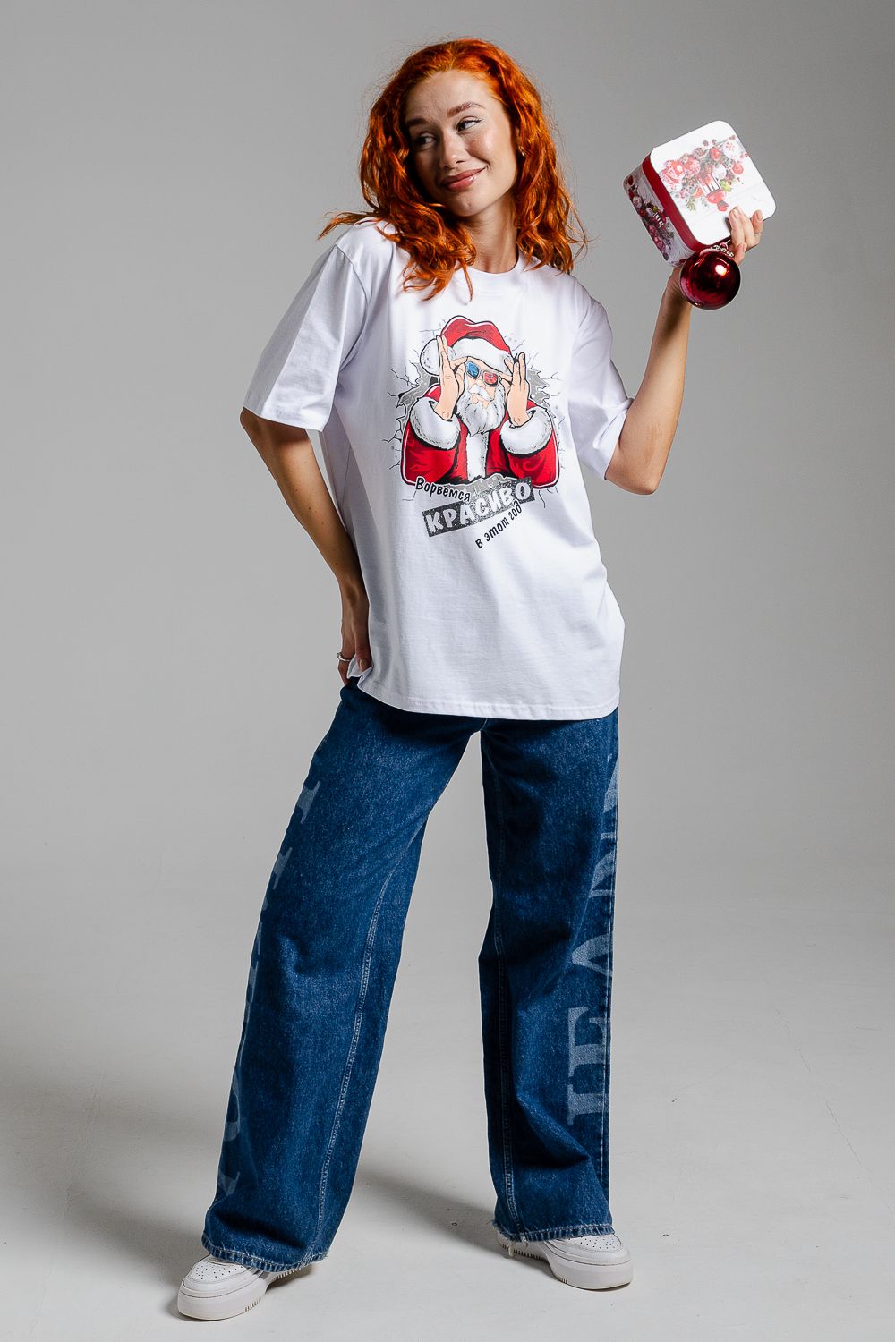 Классическая мужская футболка однотонного цвета. Базовая свободная трикотажная футболка из 100% хлопка - это стильная вещь, которая прекрасно подойдет для всех случаев: отдыха, активных тренировок, прогулки или офиса. Благодаря своему классическому дизайну, она легко сочетается с любой частью гардероба, а ее удлиненная форма и круглый вырез горловины придают удобство и стиль. Производство Узбекистан. Плотность ткани 150-160гр. Принт сделан с использоанием глиттера (декоративные, разноцветные блестки)
