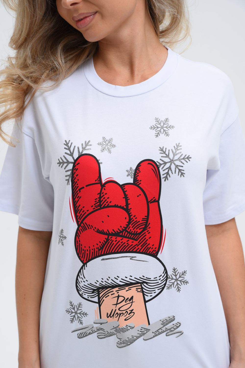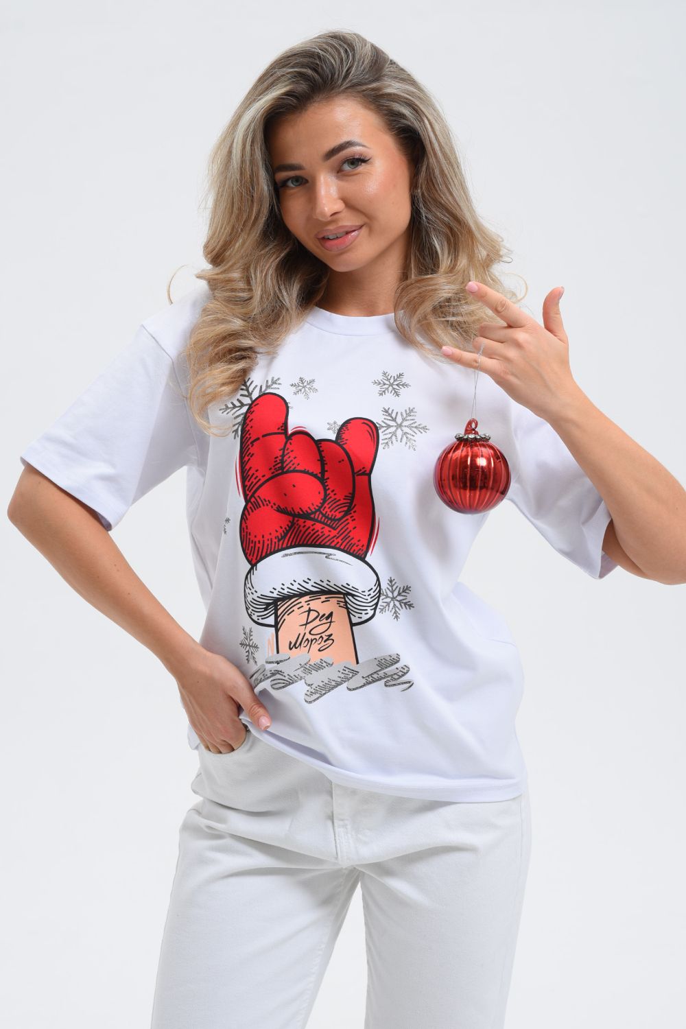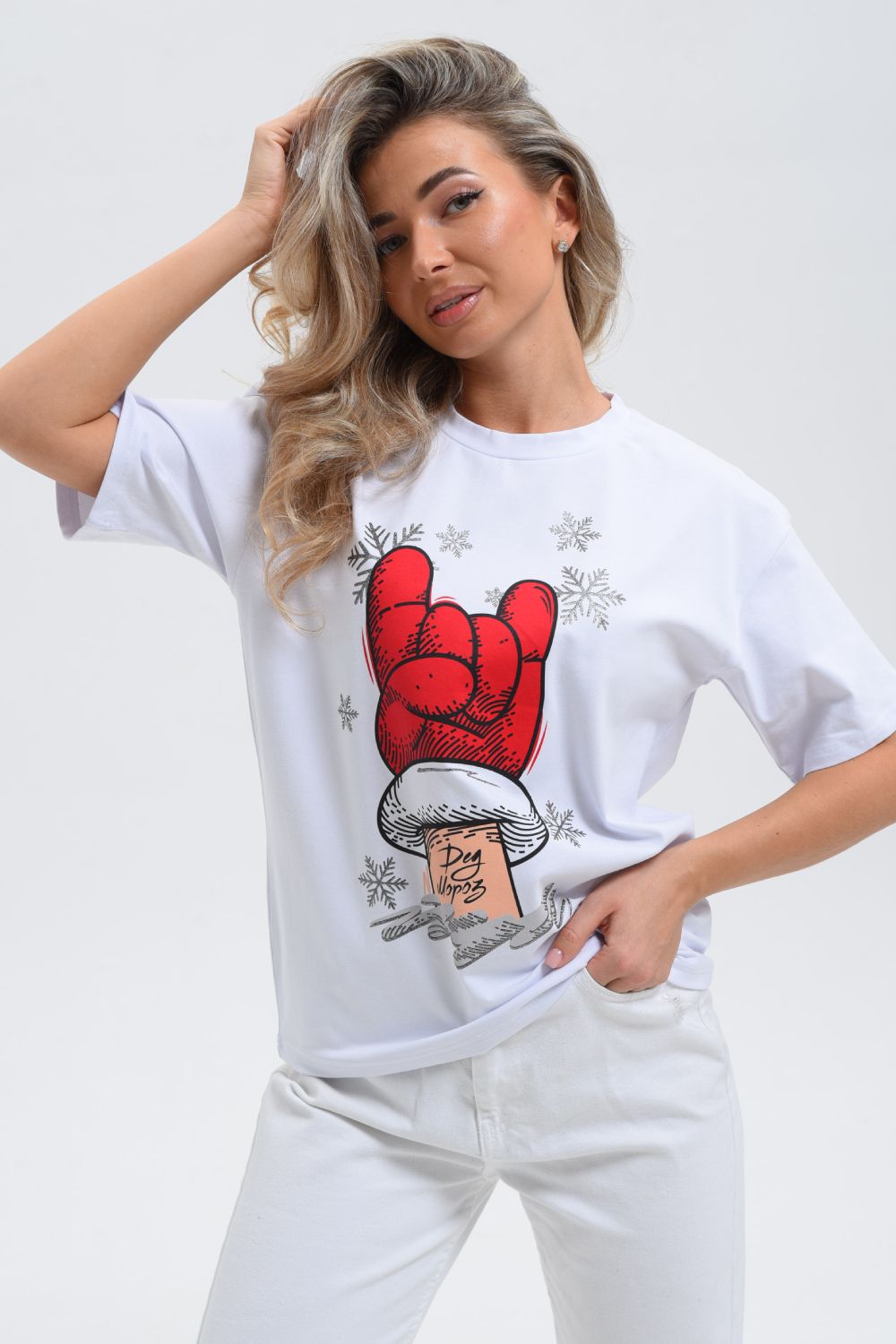 8531 Футболка женская оверсайз - белый+рука