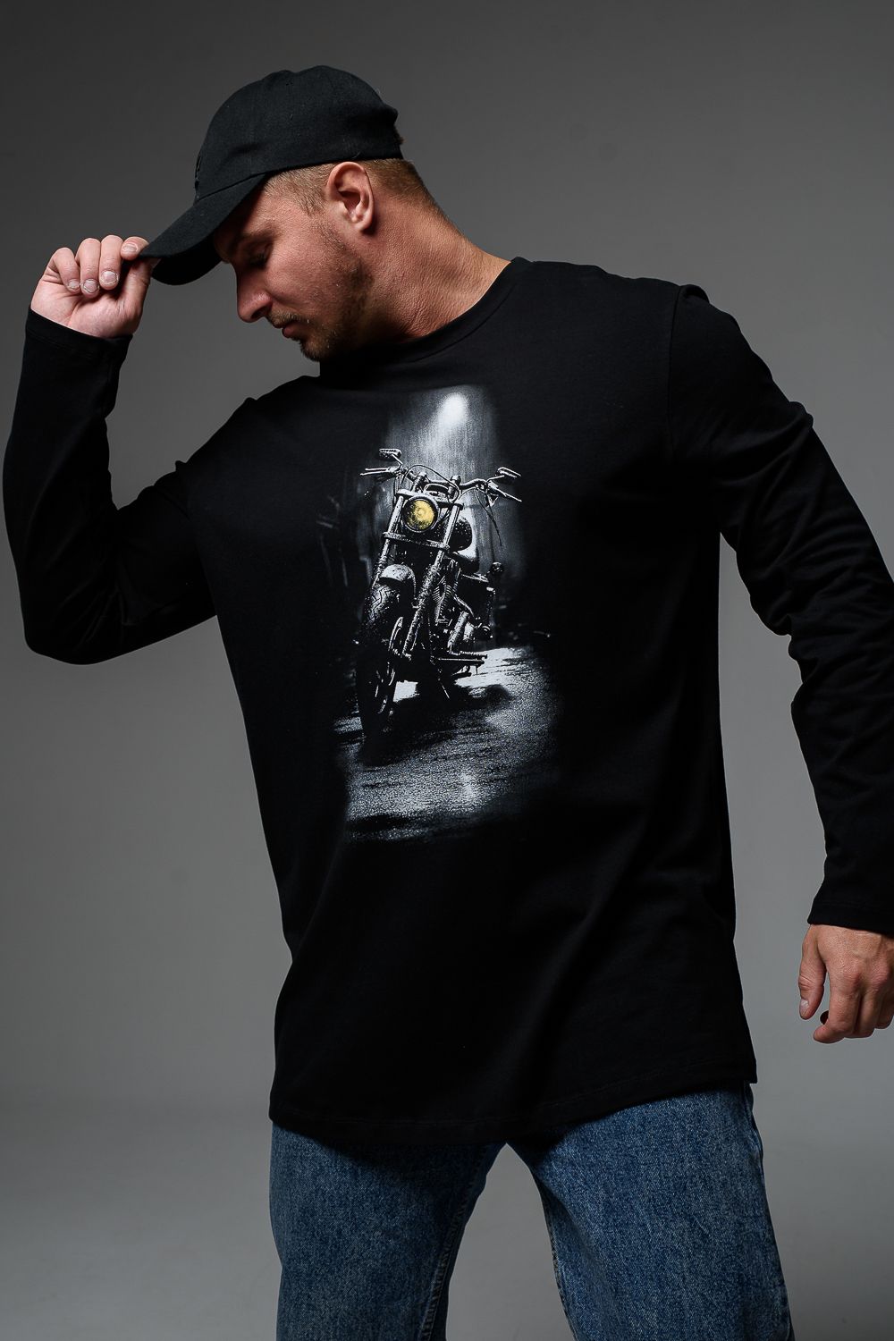 8533 футболка с дл.рукавом мужская - черный+Рыцарь