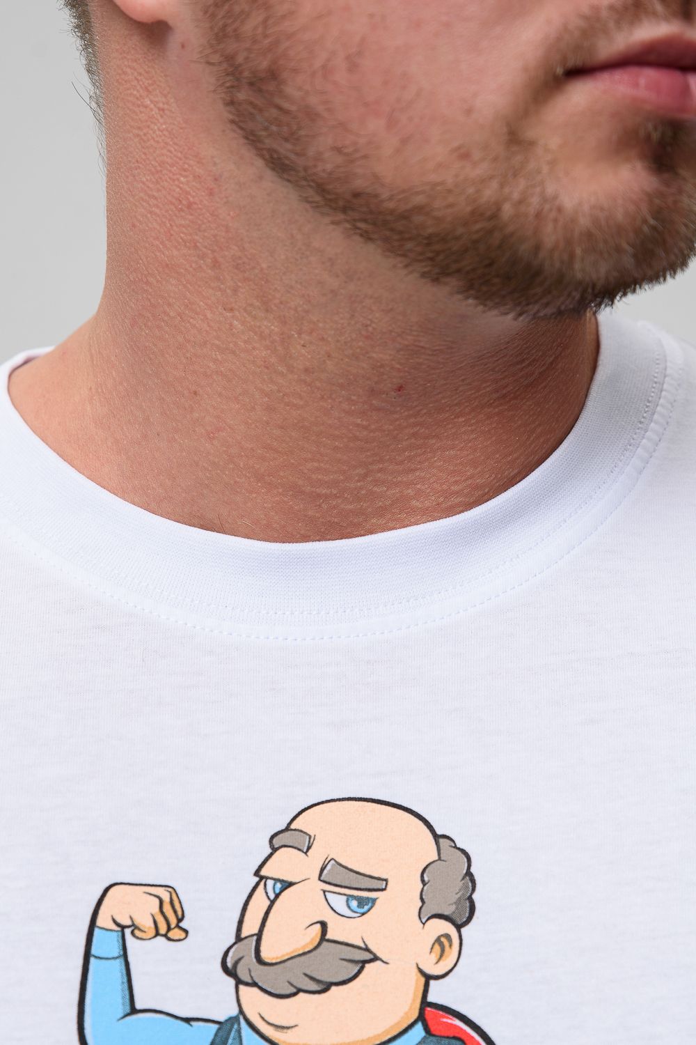Футболка это идеальный выбор для мужчин, предпочитающих комфорт и стиль. Сделанная из 100% хлопка, эта футболка обеспечивает отличную дышащую способность, делая её идеальной для домашнего использования, пляжного отдыха или просто для повседневного ношения. Уникальный принт на передней части добавляет элемент индивидуальности и стиля, делая эту футболку отличным дополнением к вашему гардеробу.