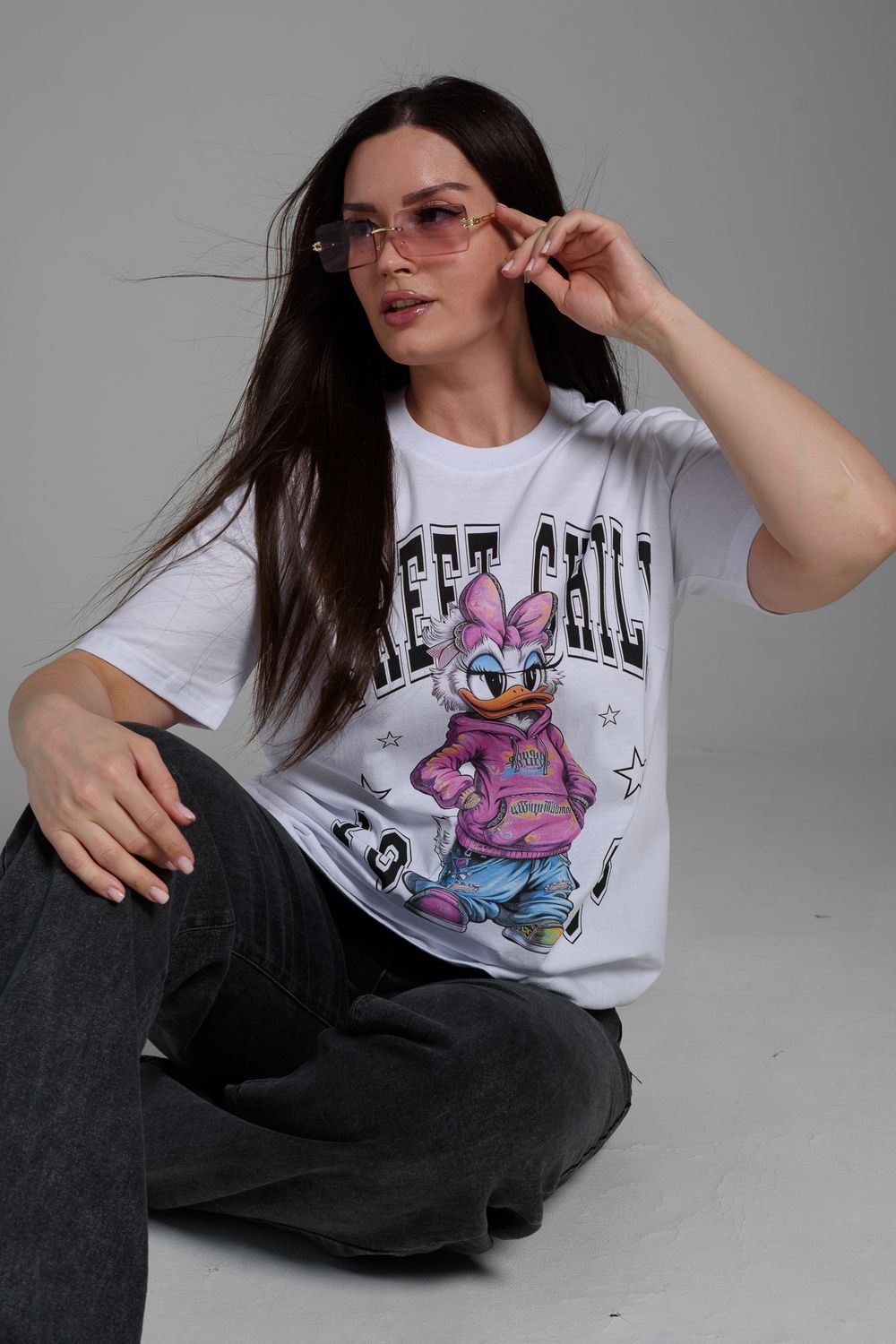 Футболка это идеальный выбор для женщин, предпочитающих комфорт и стиль. Сделанная из 100% хлопка, эта футболка обеспечивает отличную дышащую способность, делая её идеальной для домашнего использования, пляжного отдыха или просто для повседневного ношения. Уникальный принт на передней части добавляет элемент индивидуальности и стиля, делая эту футболку отличным дополнением к вашему гардеробу.