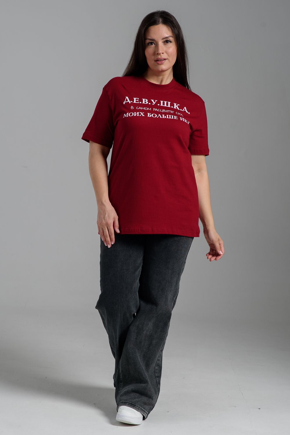 Футболка это идеальный выбор для женщин, предпочитающих комфорт и стиль. Сделанная из 100% хлопка, эта футболка обеспечивает отличную дышащую способность, делая её идеальной для домашнего использования, пляжного отдыха или просто для повседневного ношения. Уникальный принт на передней части добавляет элемент индивидуальности и стиля, делая эту футболку отличным дополнением к вашему гардеробу.