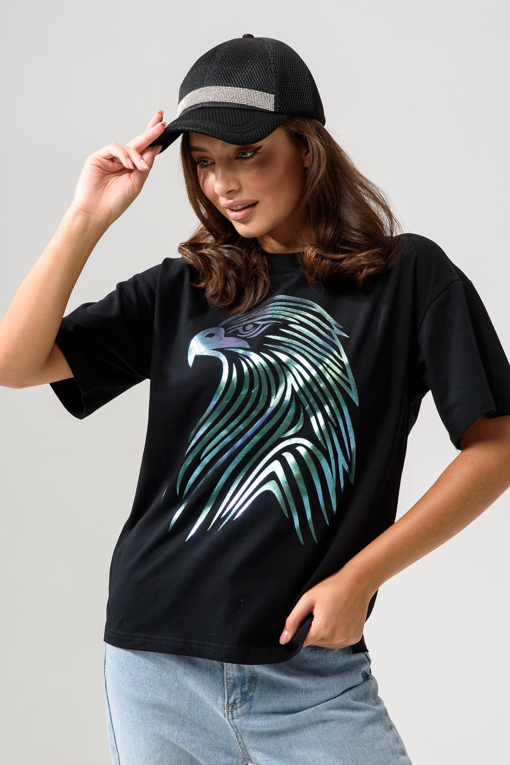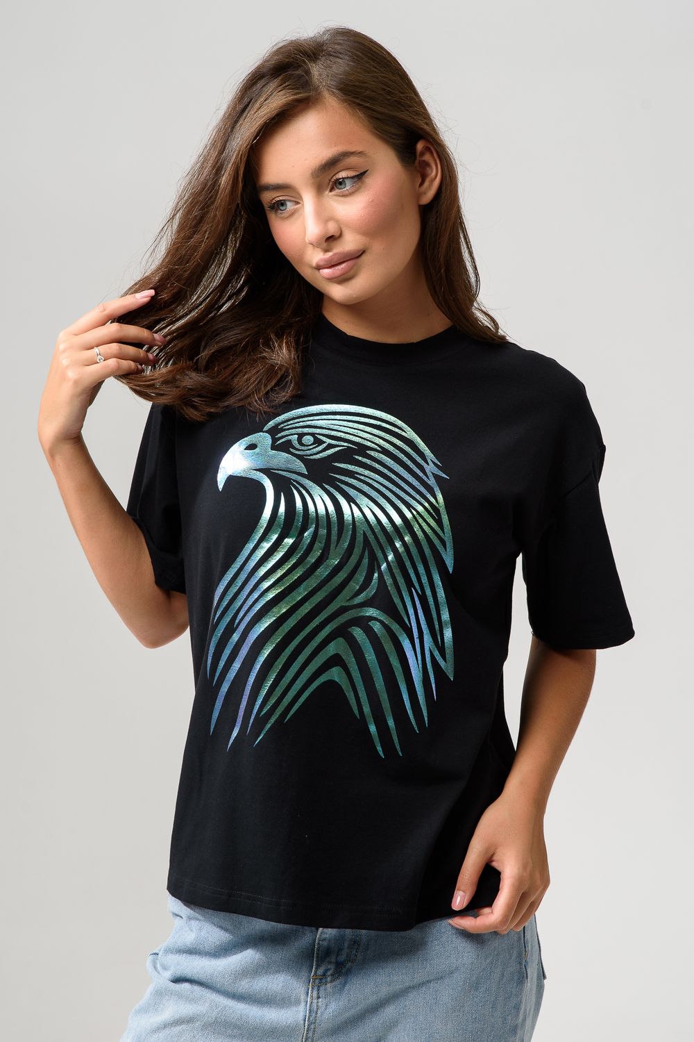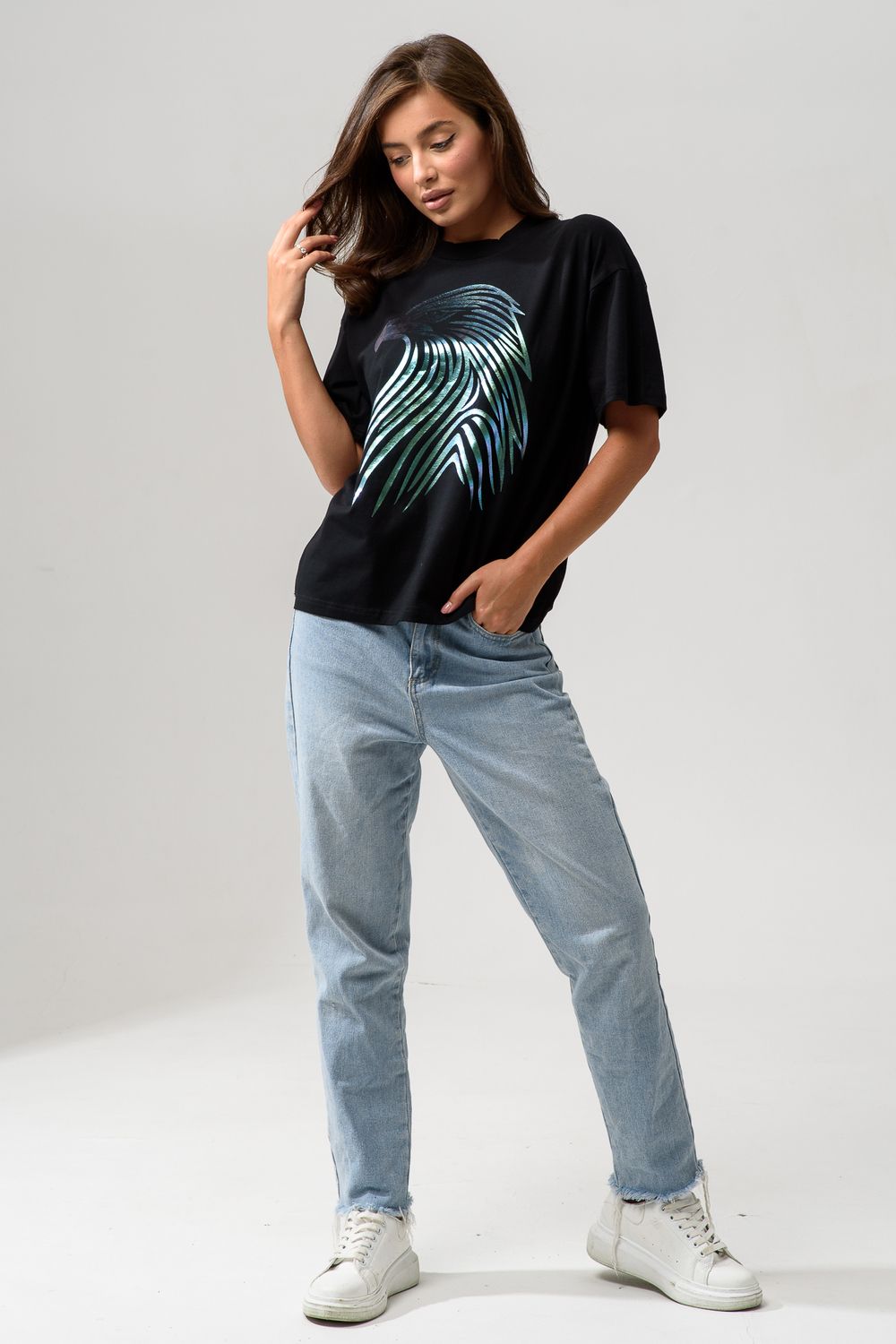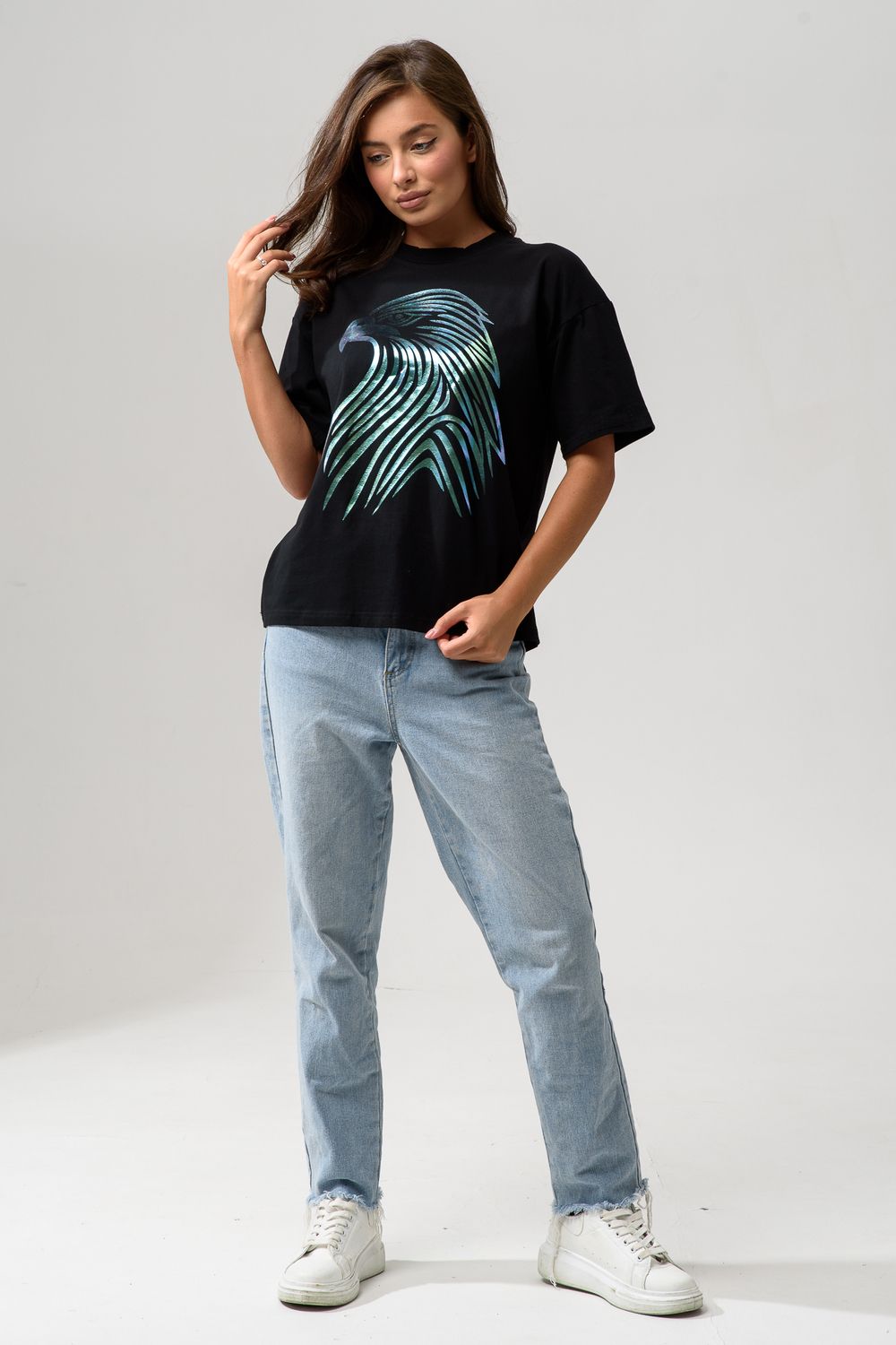 Женская футболка оверсайз — это идеальный выбор для девушек, которые любят сочетать комфорт и стиль. Стильная и качественная, она доступна в любом размере, включая большой до 56. Свободный крой подойдет в том числе и для беременных женщин. Высокие стандарты качества делают её универсальным элементом гардероба, подходящим для создания модных повседневных образов. Она идеальна для взрослых и подростков, предпочитающих спортивную и яркая одежду. Высокая плотность ткани 200гр/куб.м. Принт фольга "хамелеон" или "серебро" - может попасться без выбора.