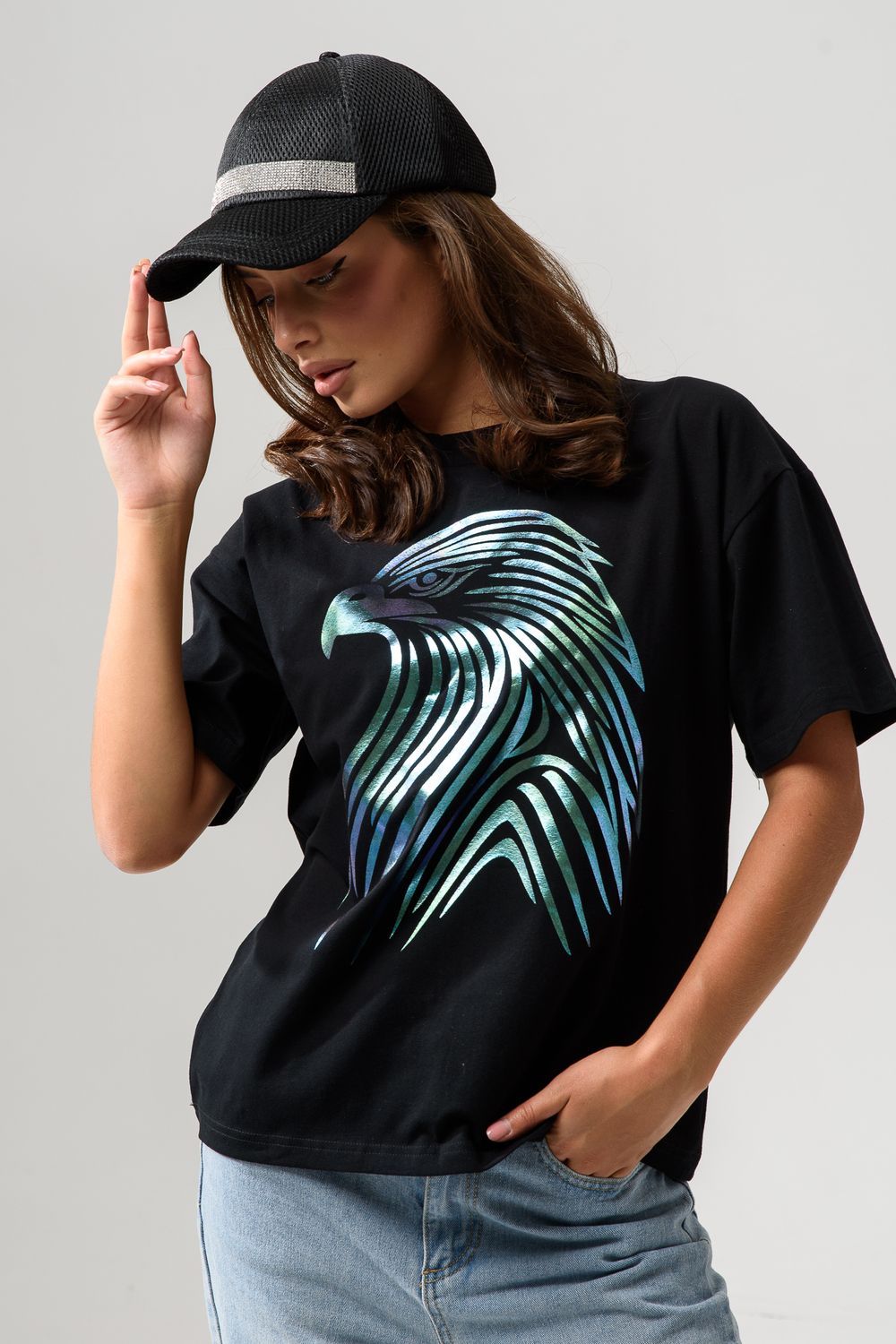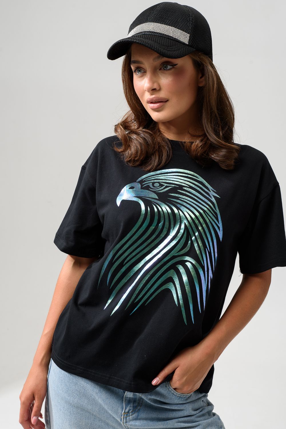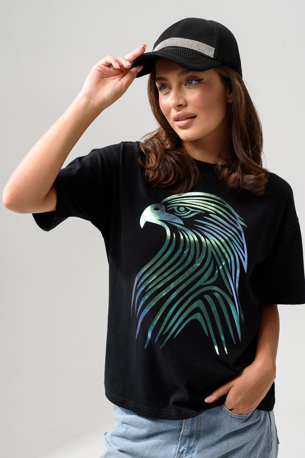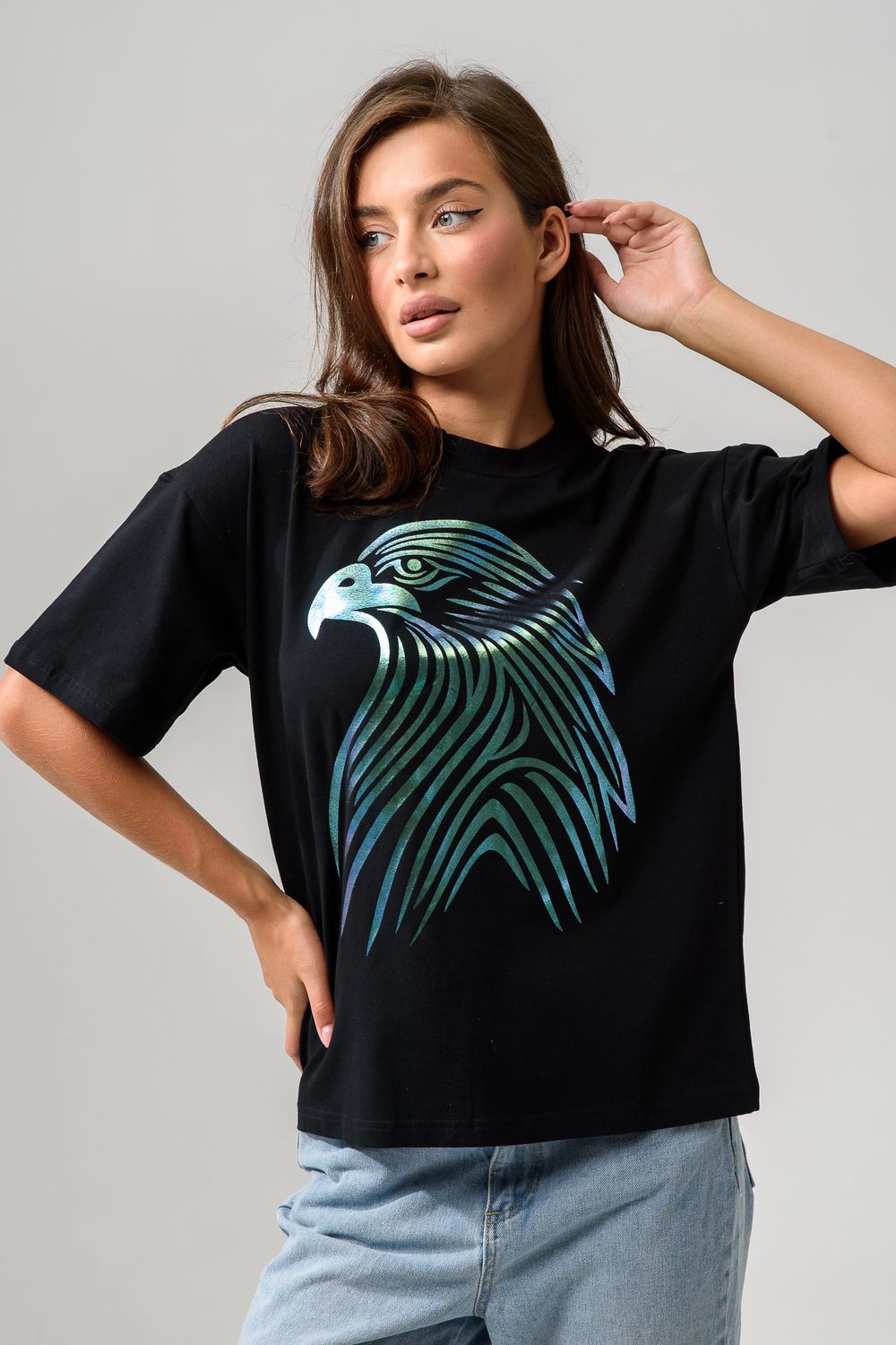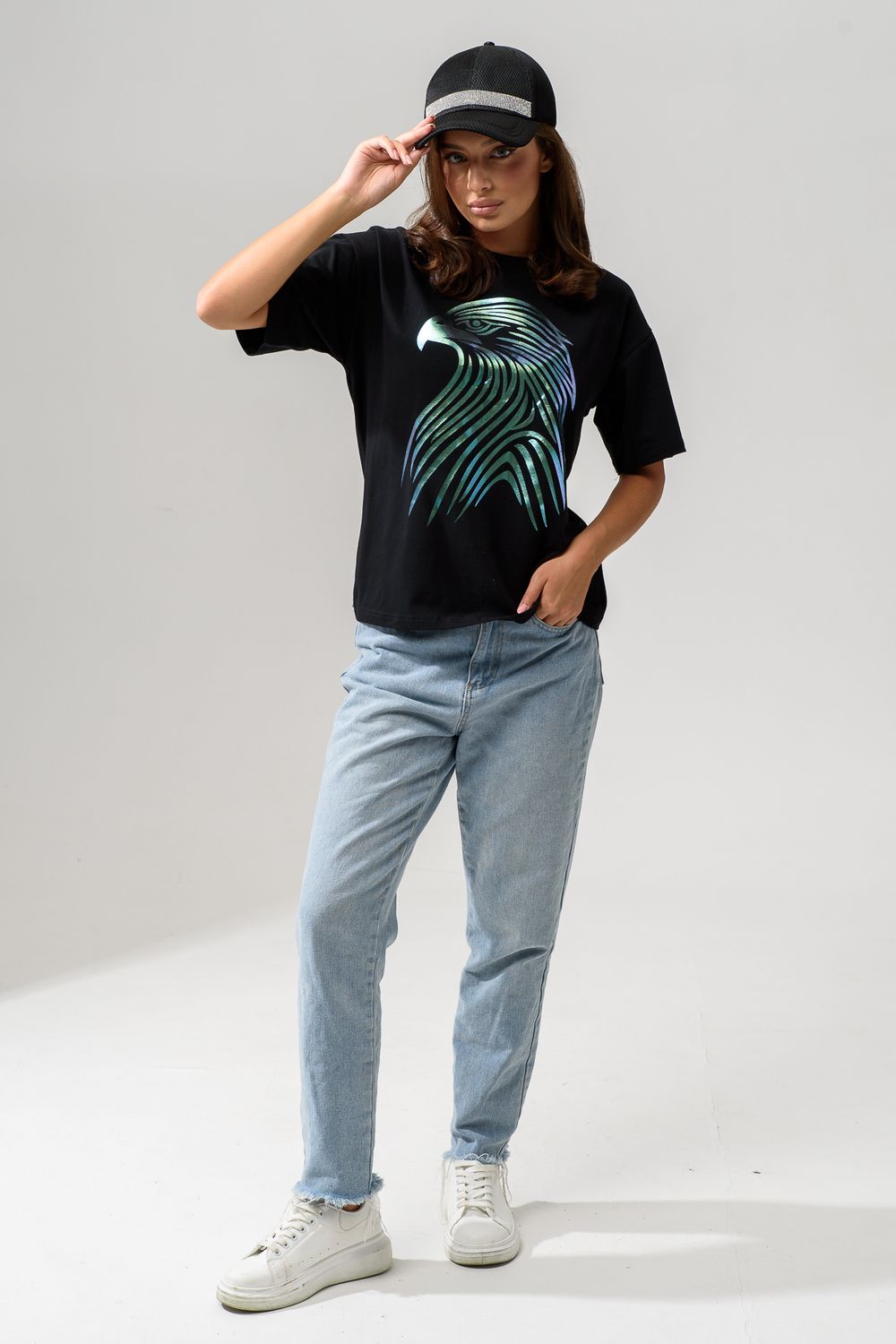 Женская футболка оверсайз — это идеальный выбор для девушек, которые любят сочетать комфорт и стиль. Стильная и качественная, она доступна в любом размере, включая большой до 56. Свободный крой подойдет в том числе и для беременных женщин. Высокие стандарты качества делают её универсальным элементом гардероба, подходящим для создания модных повседневных образов. Она идеальна для взрослых и подростков, предпочитающих спортивную и яркая одежду. Высокая плотность ткани 200гр/куб.м. Принт фольга "хамелеон" или "серебро" - может попасться без выбора.