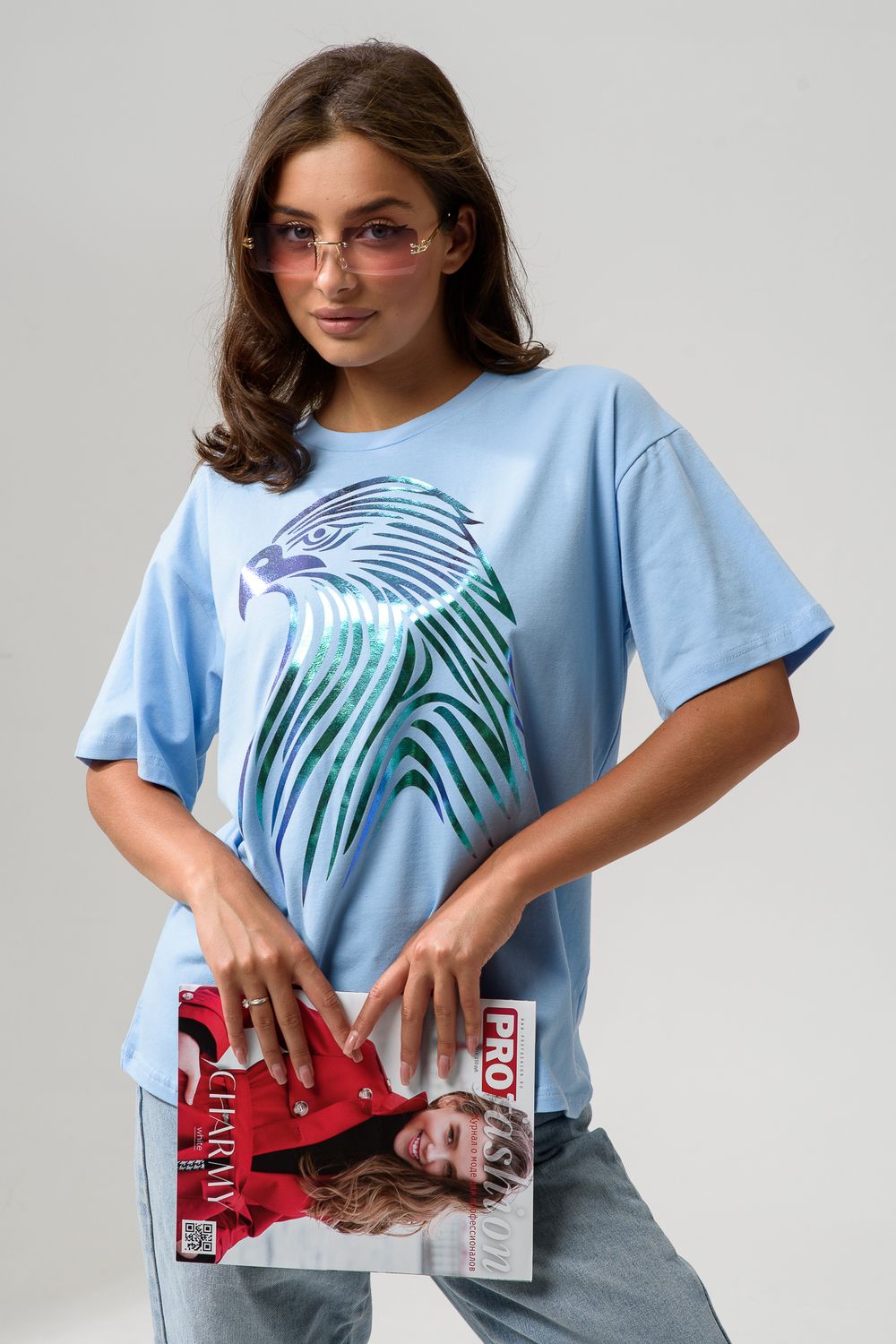 Женская футболка оверсайз — это идеальный выбор для девушек, которые любят сочетать комфорт и стиль. Стильная и качественная, она доступна в любом размере, включая большой до 56. Свободный крой подойдет в том числе и для беременных женщин. Высокие стандарты качества делают её универсальным элементом гардероба, подходящим для создания модных повседневных образов. Она идеальна для взрослых и подростков, предпочитающих спортивную и яркая одежду. Высокая плотность ткани 200гр/куб.м. Принт фольга "хамелеон" или "серебро" - может попасться без выбора.