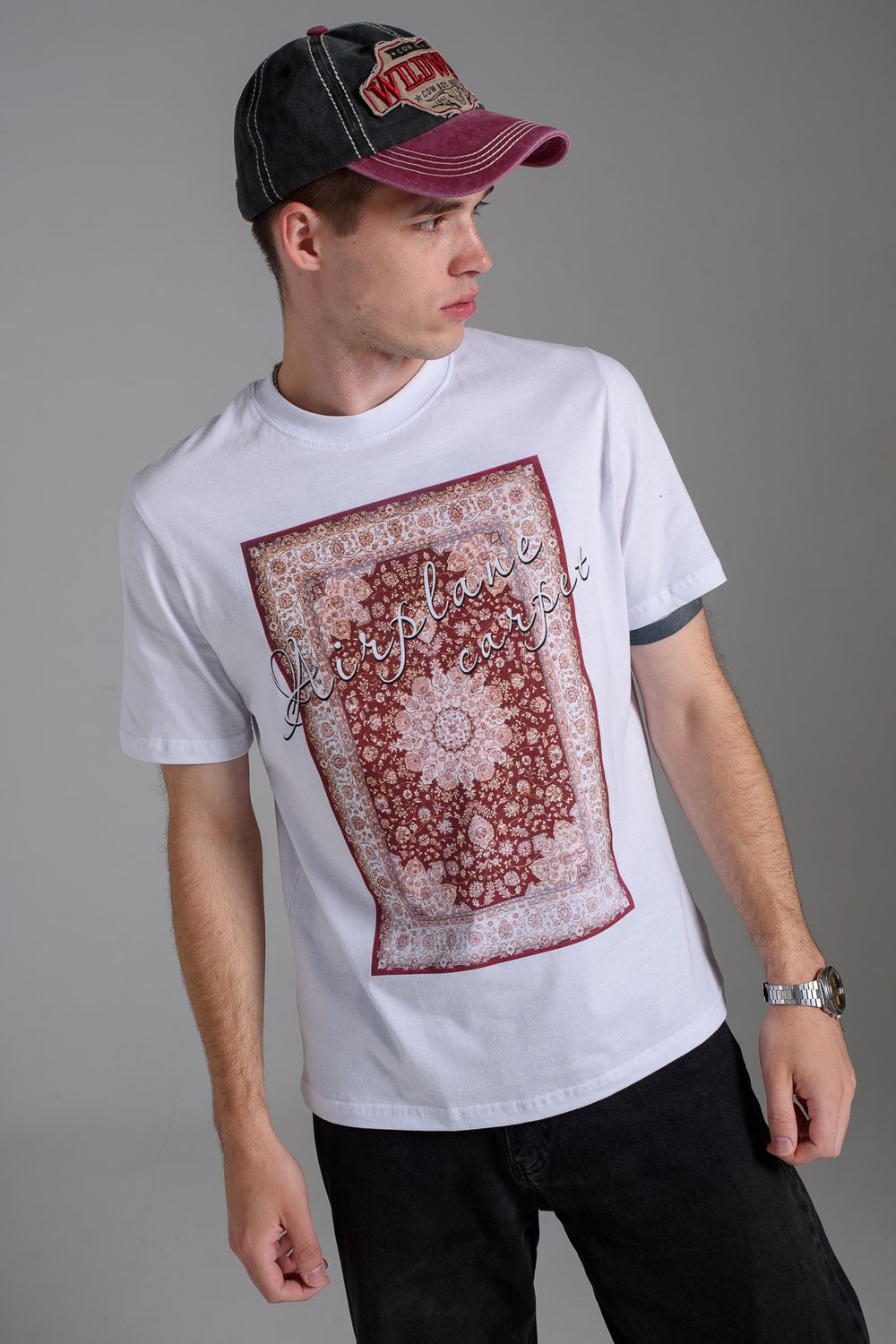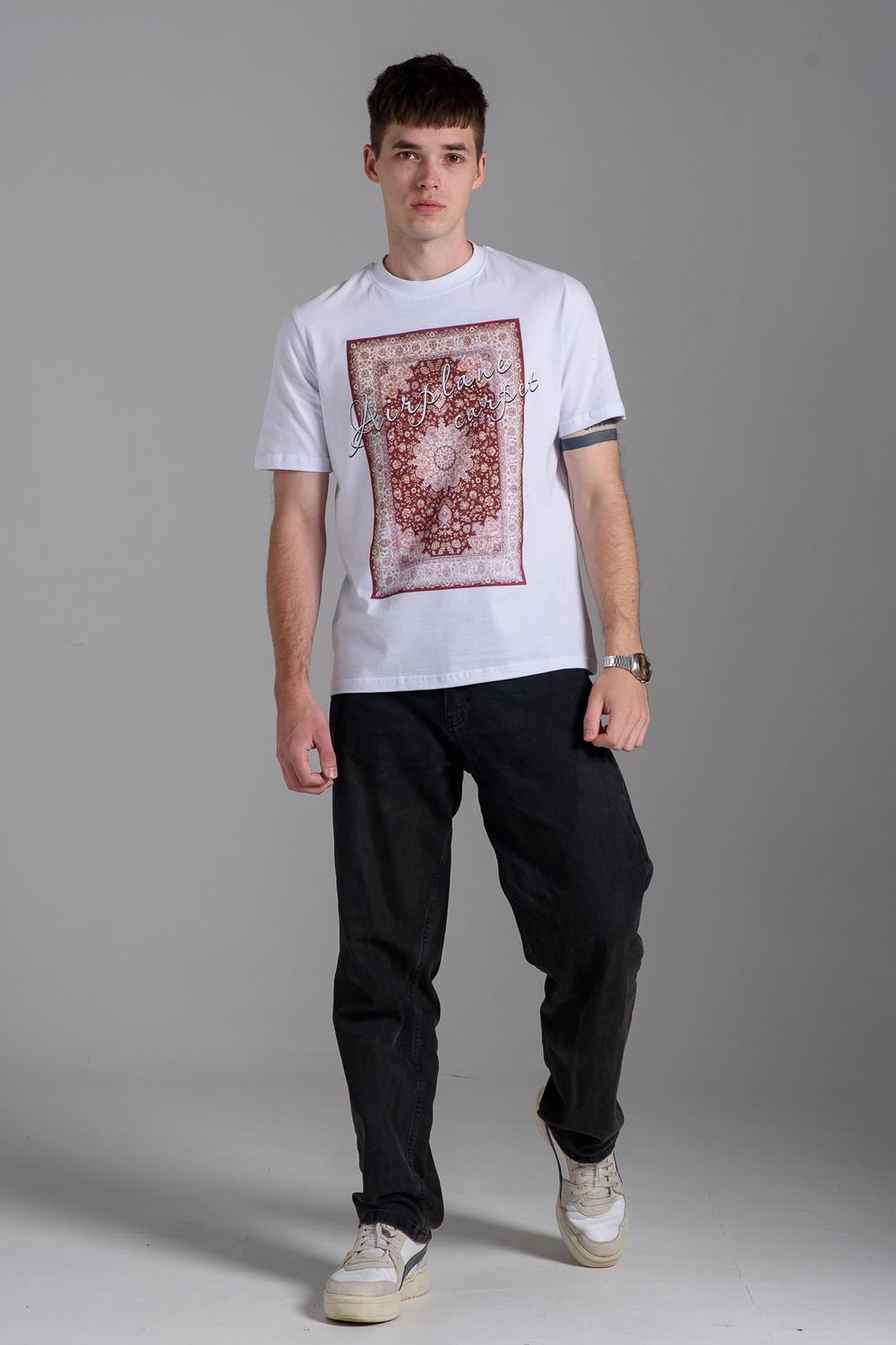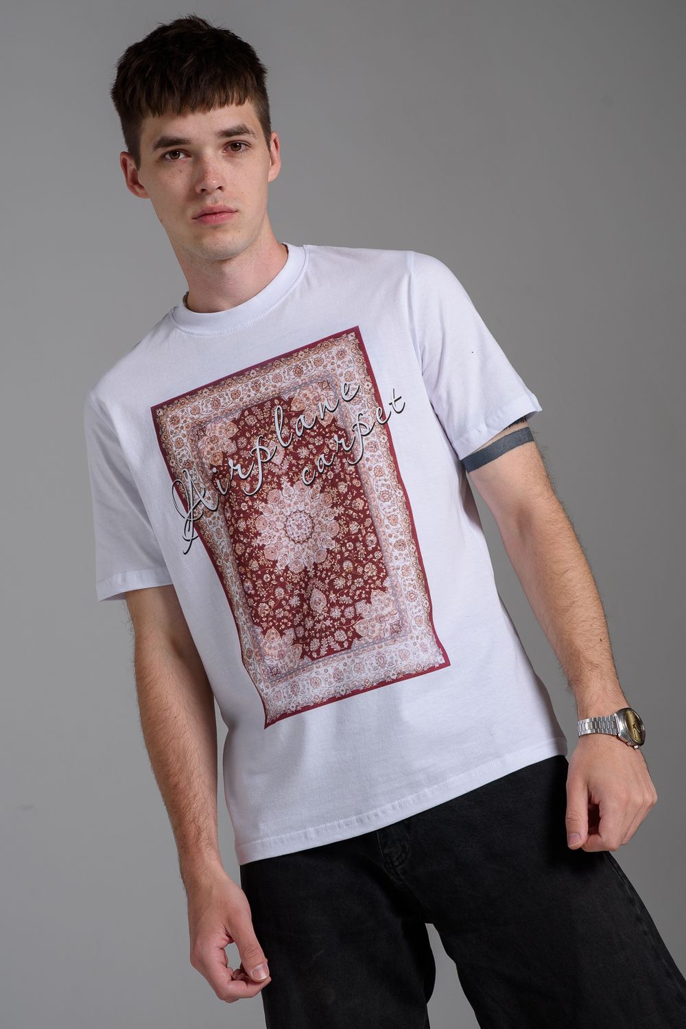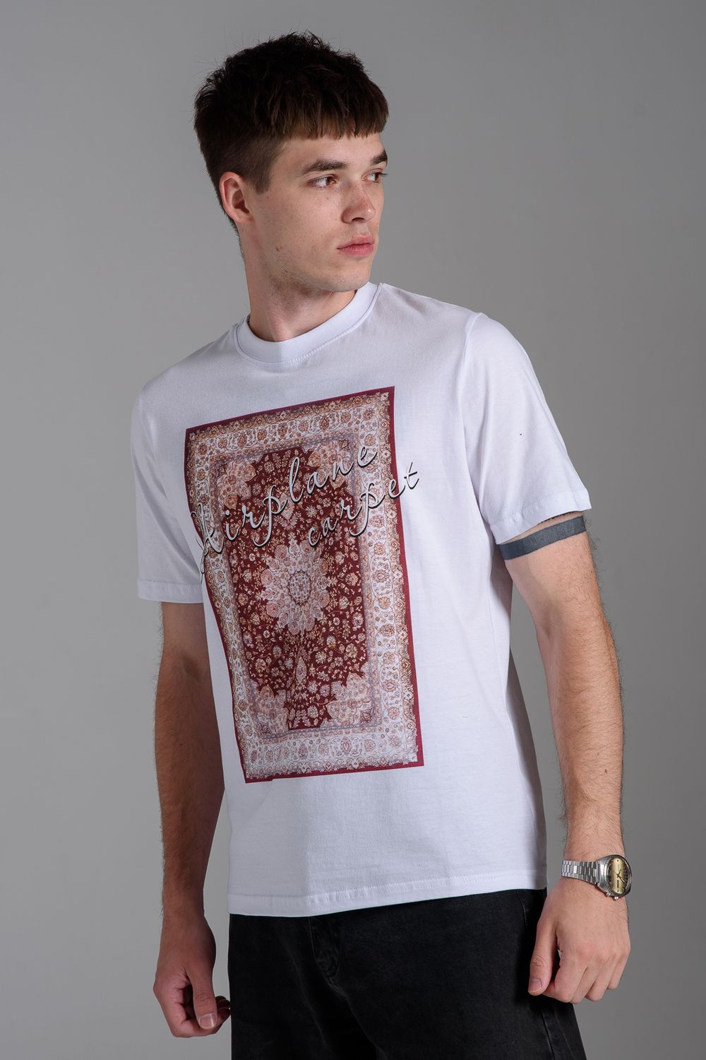 8556 Футболка мужская - белый+ковер