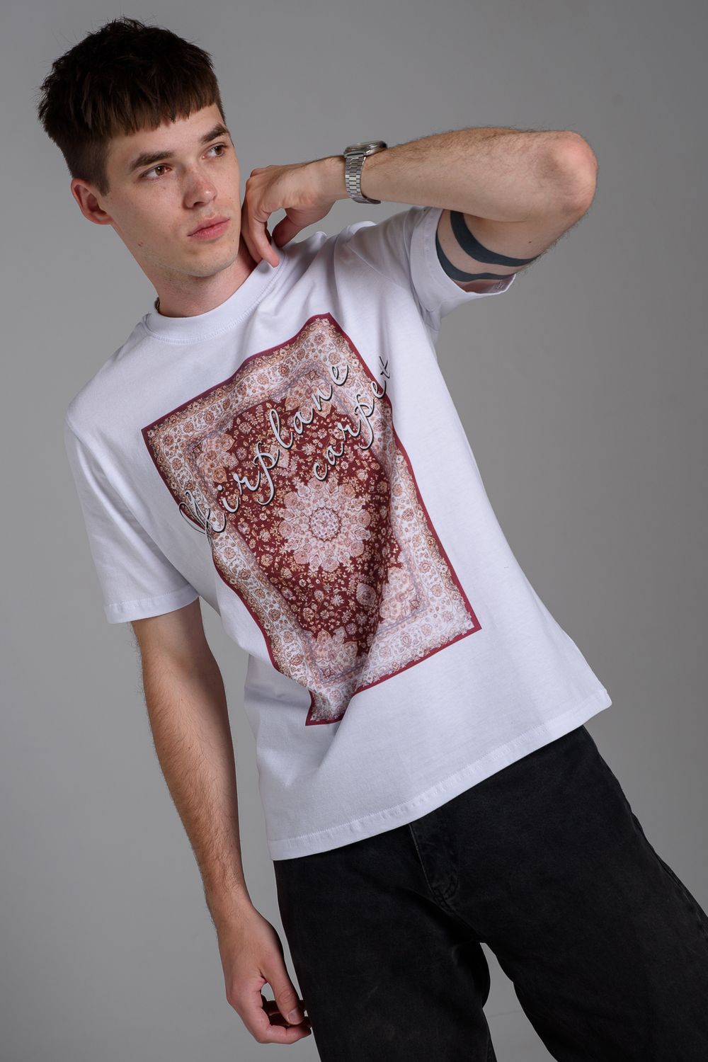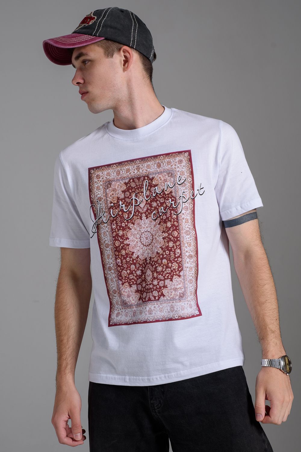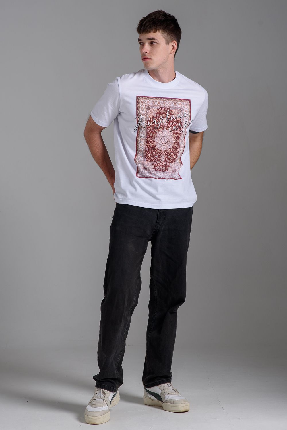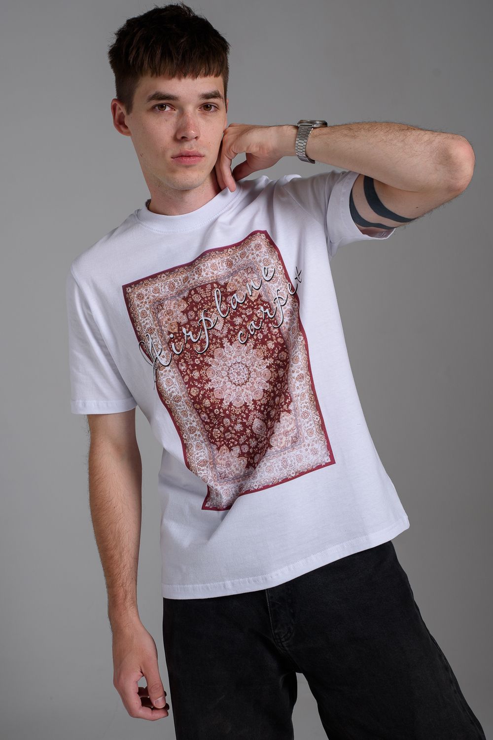 8556 Футболка мужская - белый+ковер