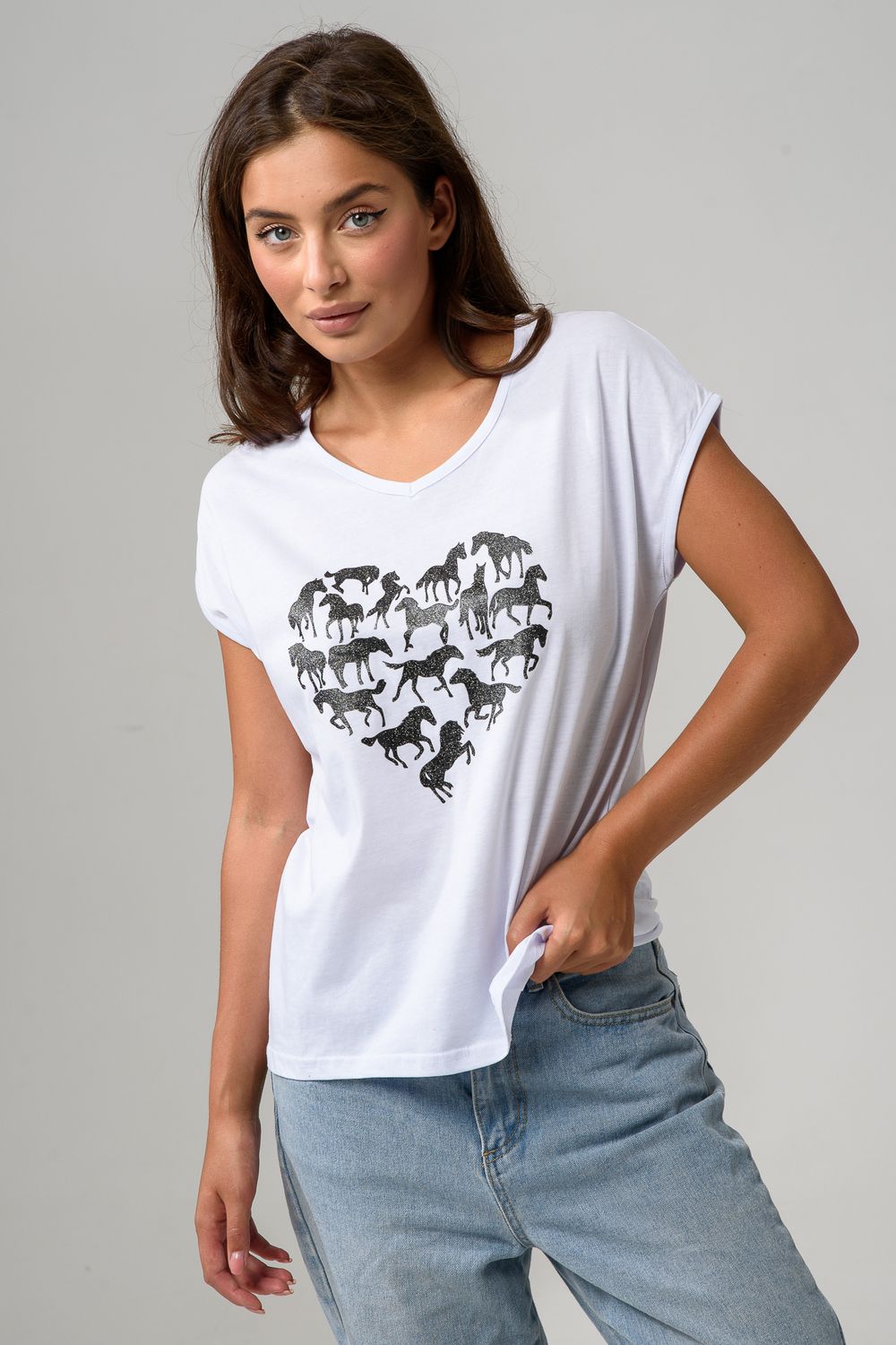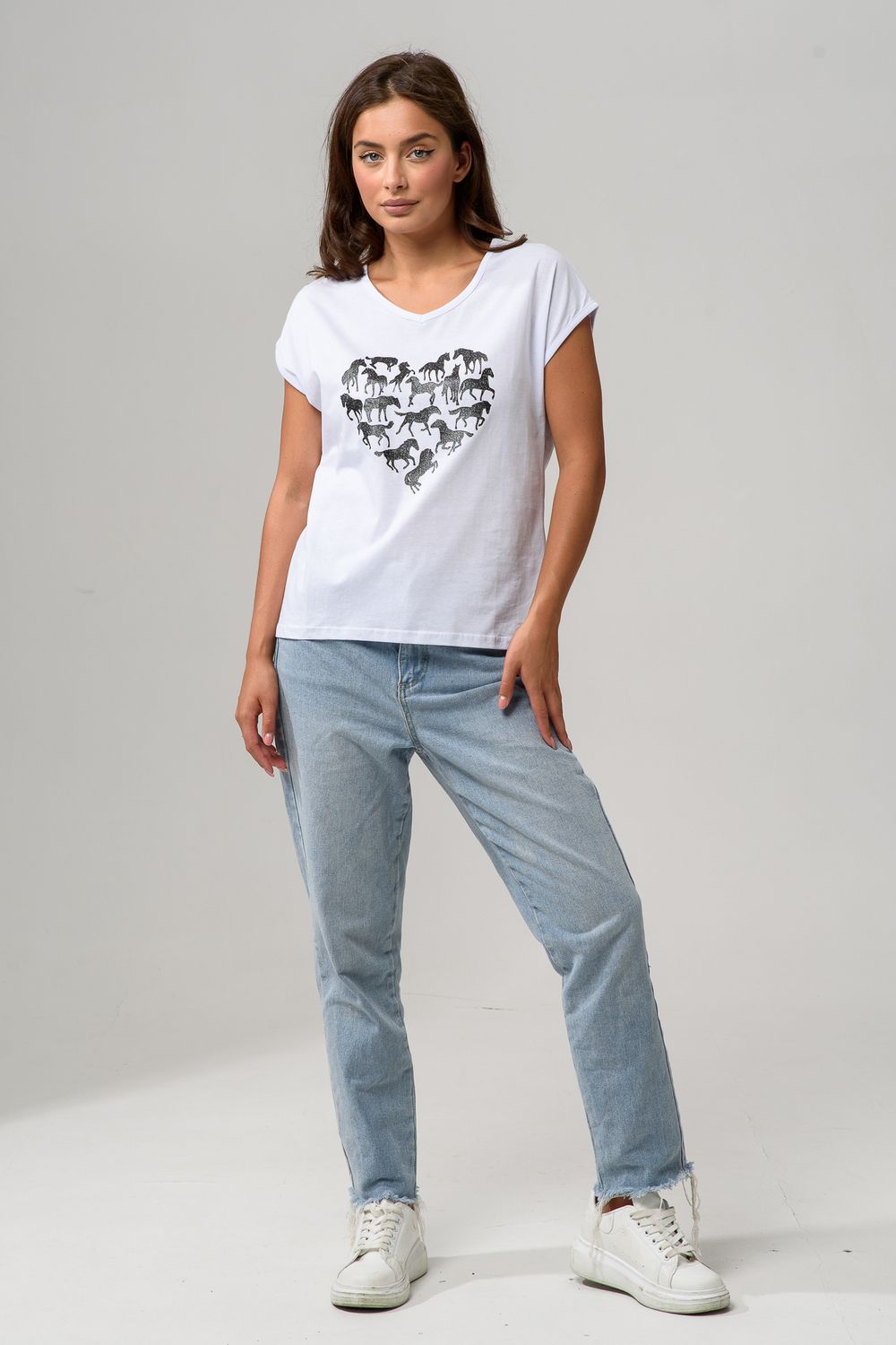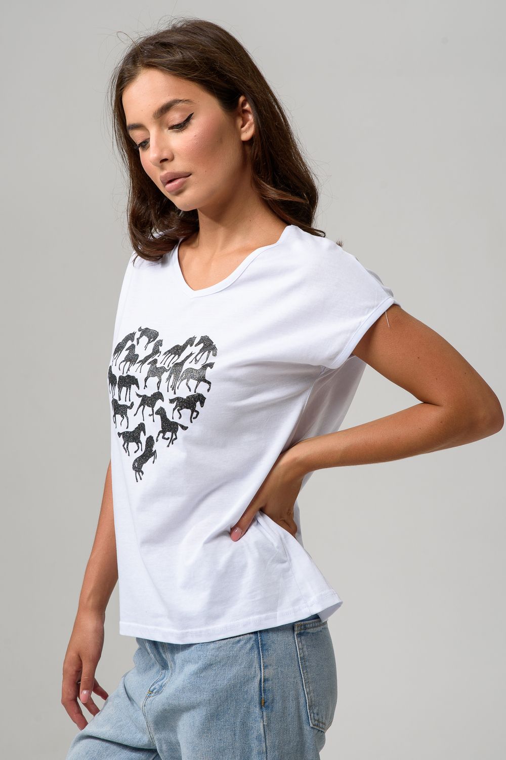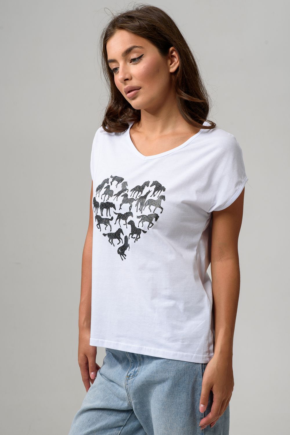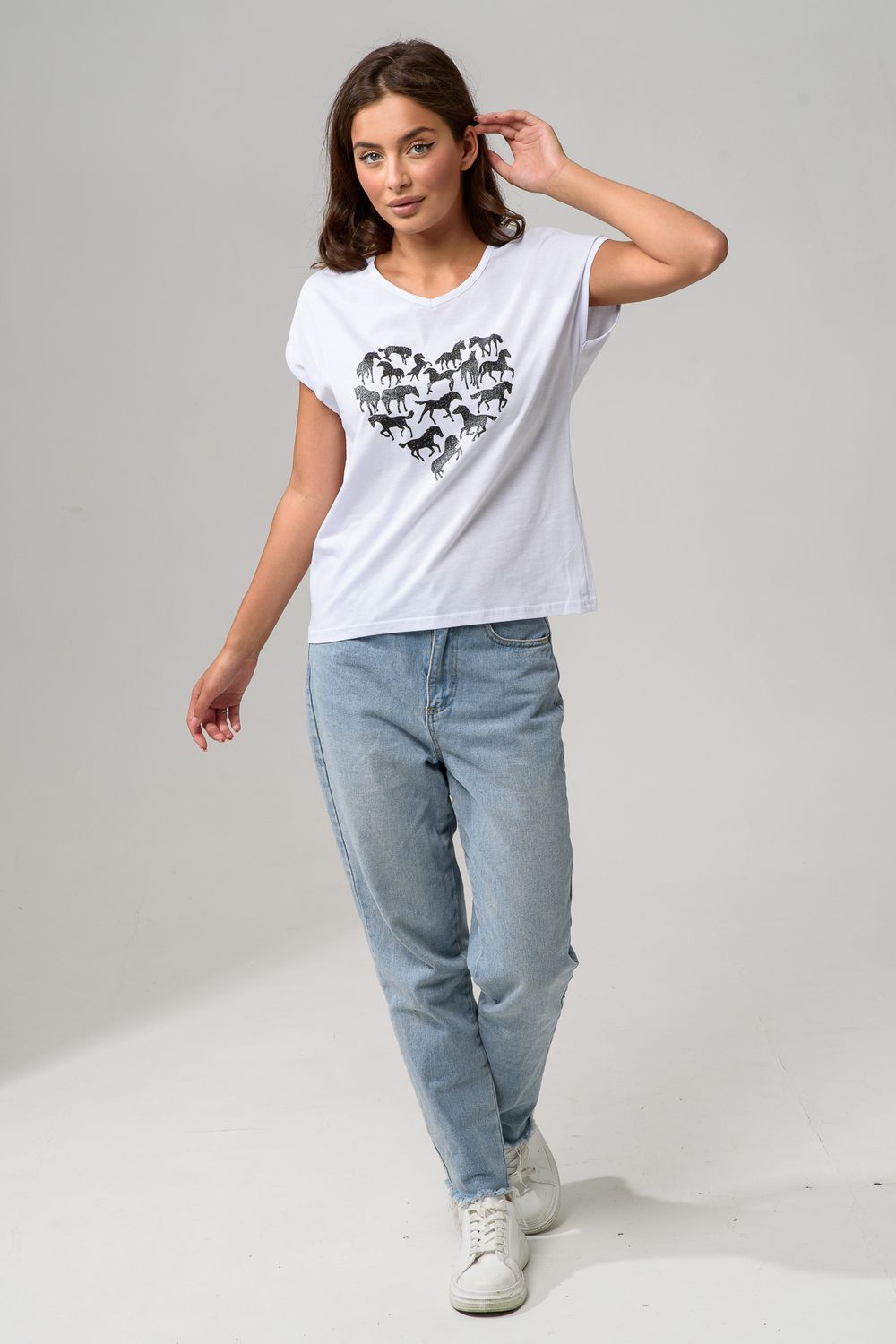 8558 футболка женская - белый+лошадь сердце