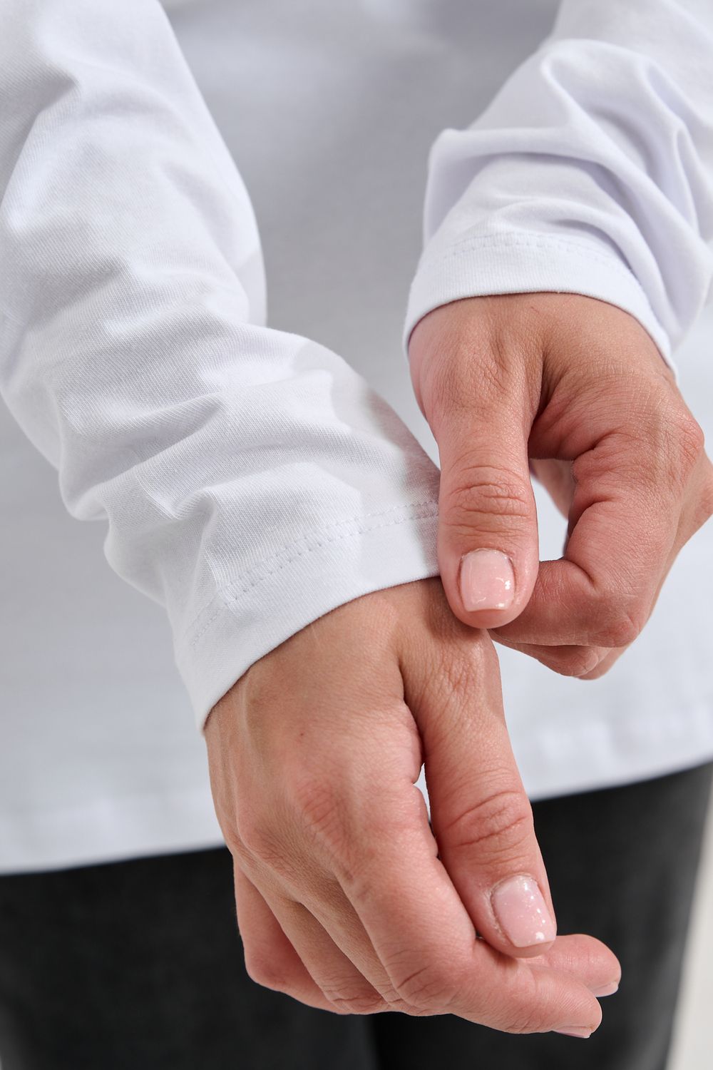 Лонгслив снова в моде и прочно обосновался в базовом гардеробе современного человека. Удобная трикотажная кофта представляет собой футболку с длинным рукавом, которую можно использовать как самостоятельный элемент, так и носить под пиджак, толстовку или рубашку. Лонгслив выполнен из высокоплотного хлопкового трикотажа и является невероятно комфортным и удобным. Футболка с длинными рукавами имеет прямой базовый крой и классическую линию плеча. Лонгслив - это неформальный стиль, когда на футболку можно надеть клетчатую рубашку и сочетать с кедами и джинсами. За счет натуральной ткани лонгслив можно носить в качестве домашней одежды или нательного белья, одежды для сна, тренировочной спортивной одежды и военной экипировки. Если вы хотите силуэт "оверсайз" нужно взять на размер или два больше, ориентируйтесь по таблице замеров.