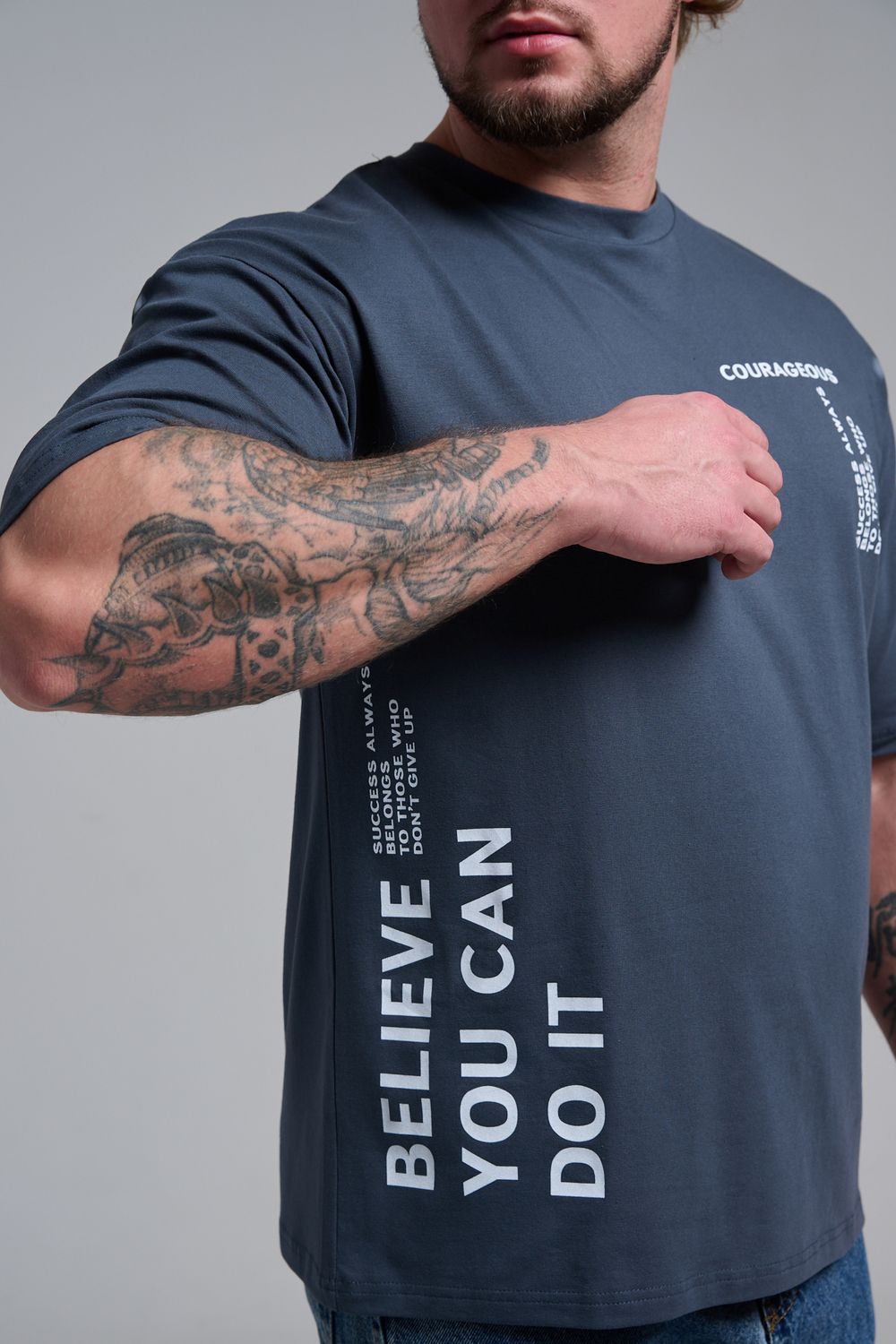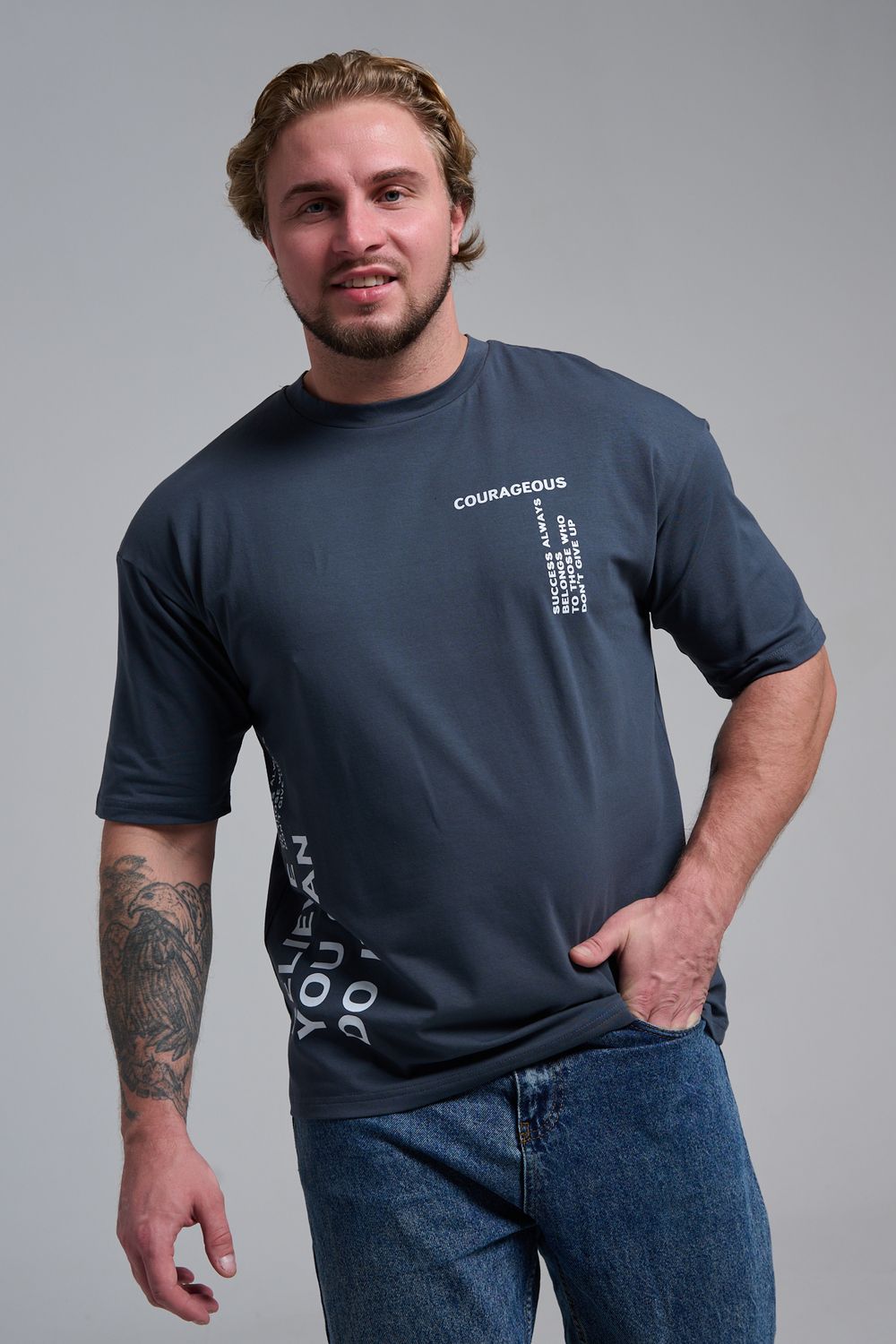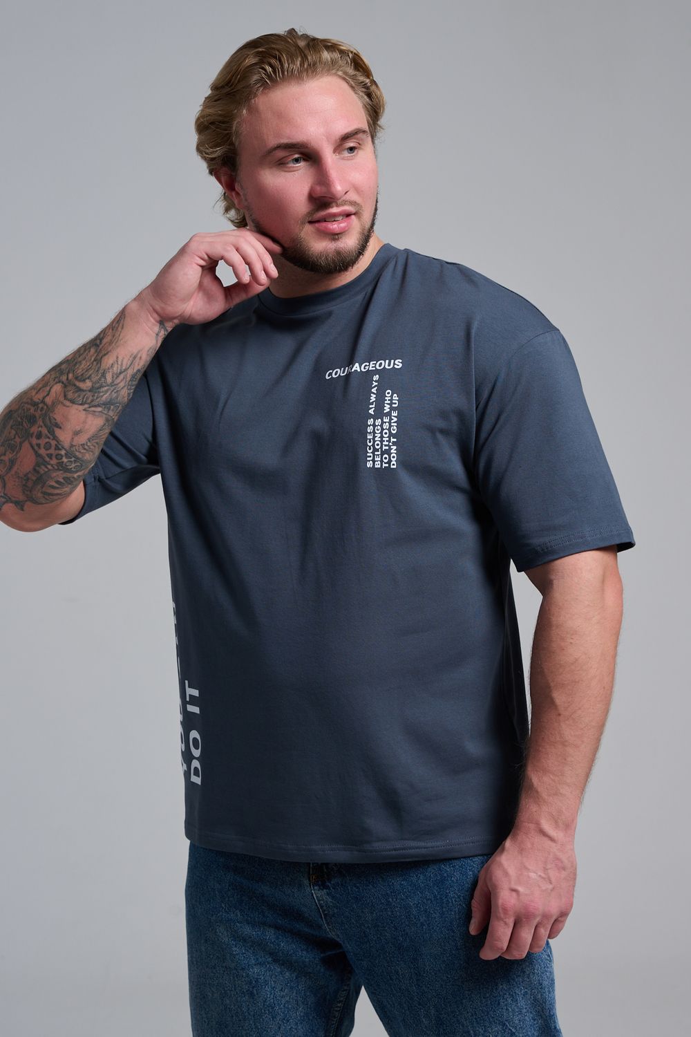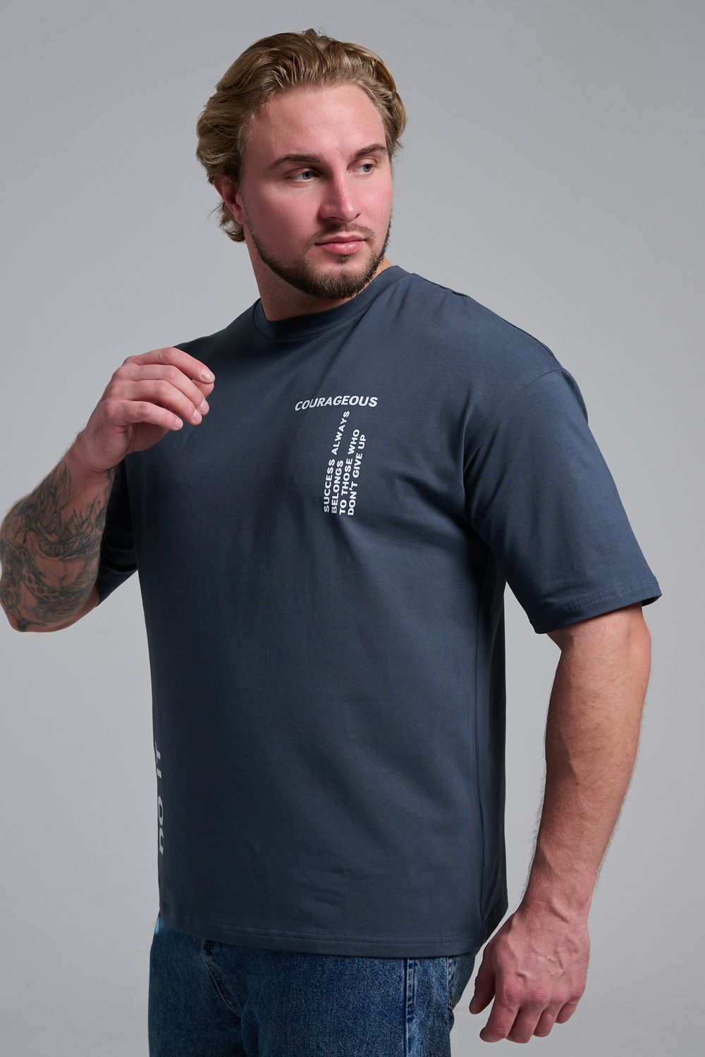 8570 футболка оверсайз мужская - графит+смелый