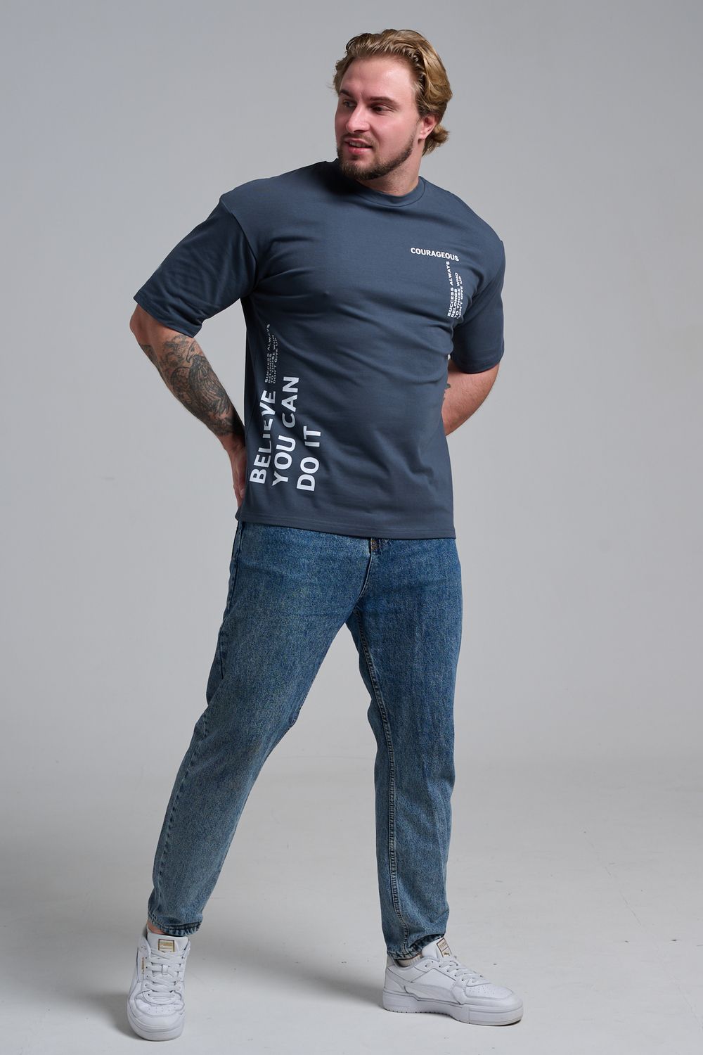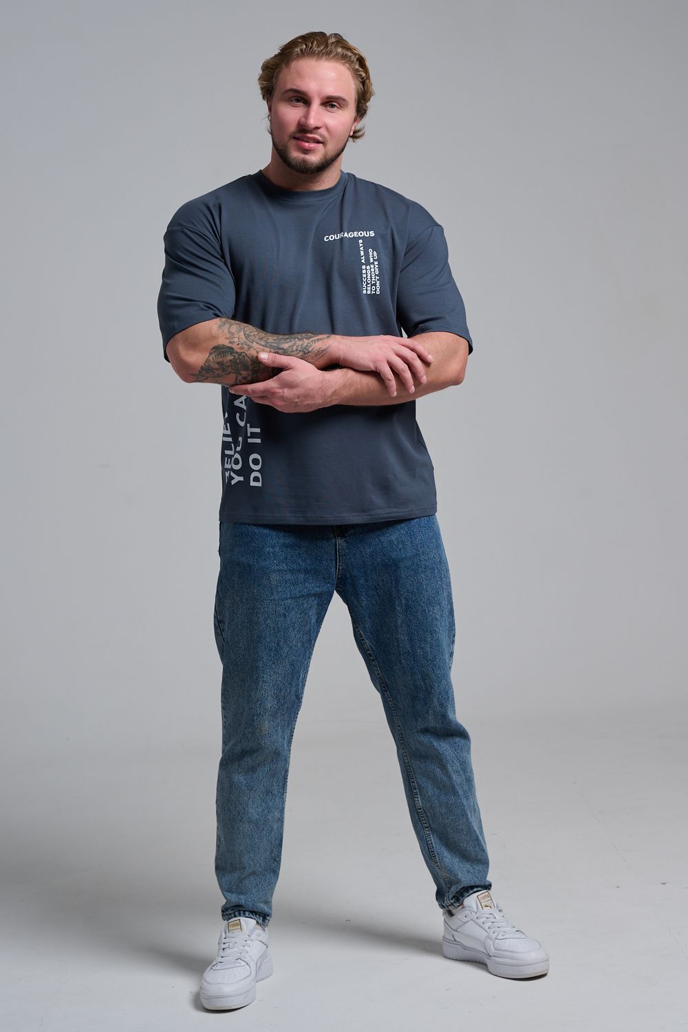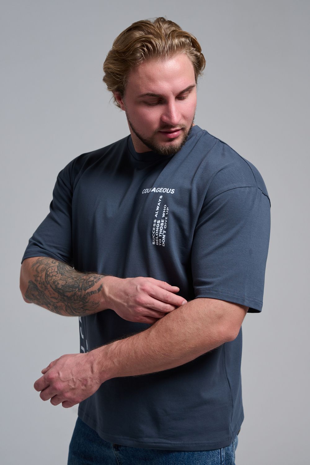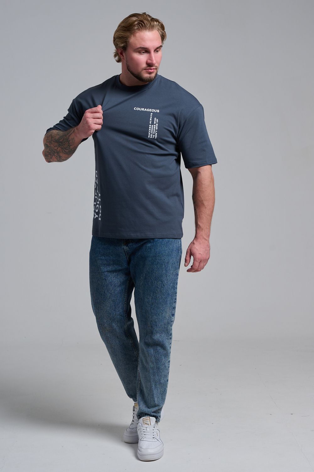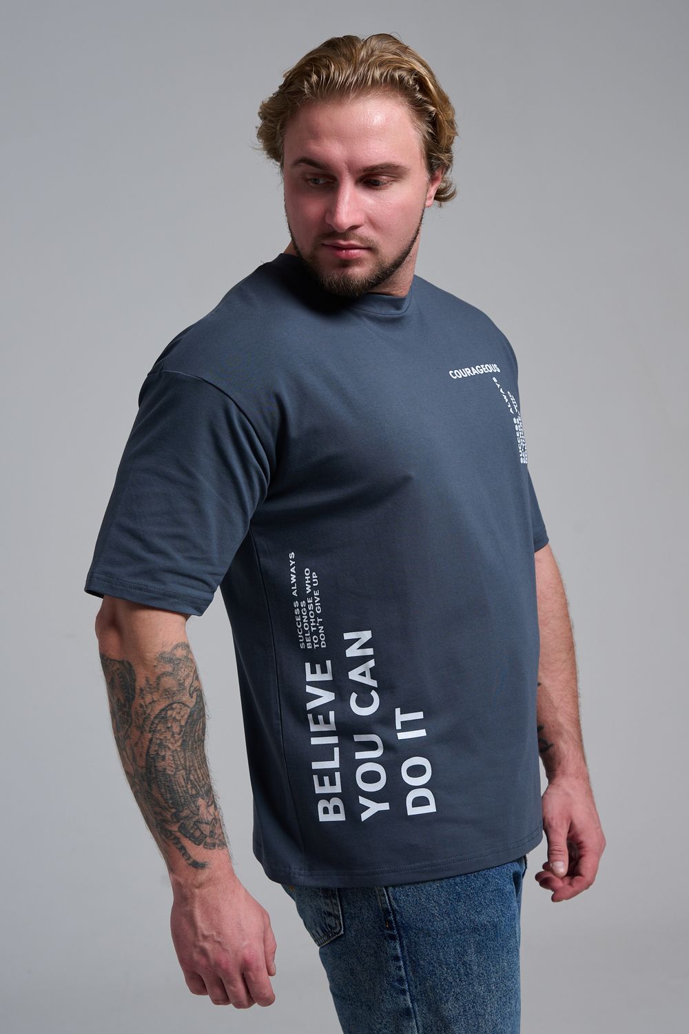8570 футболка оверсайз мужская - графит+смелый