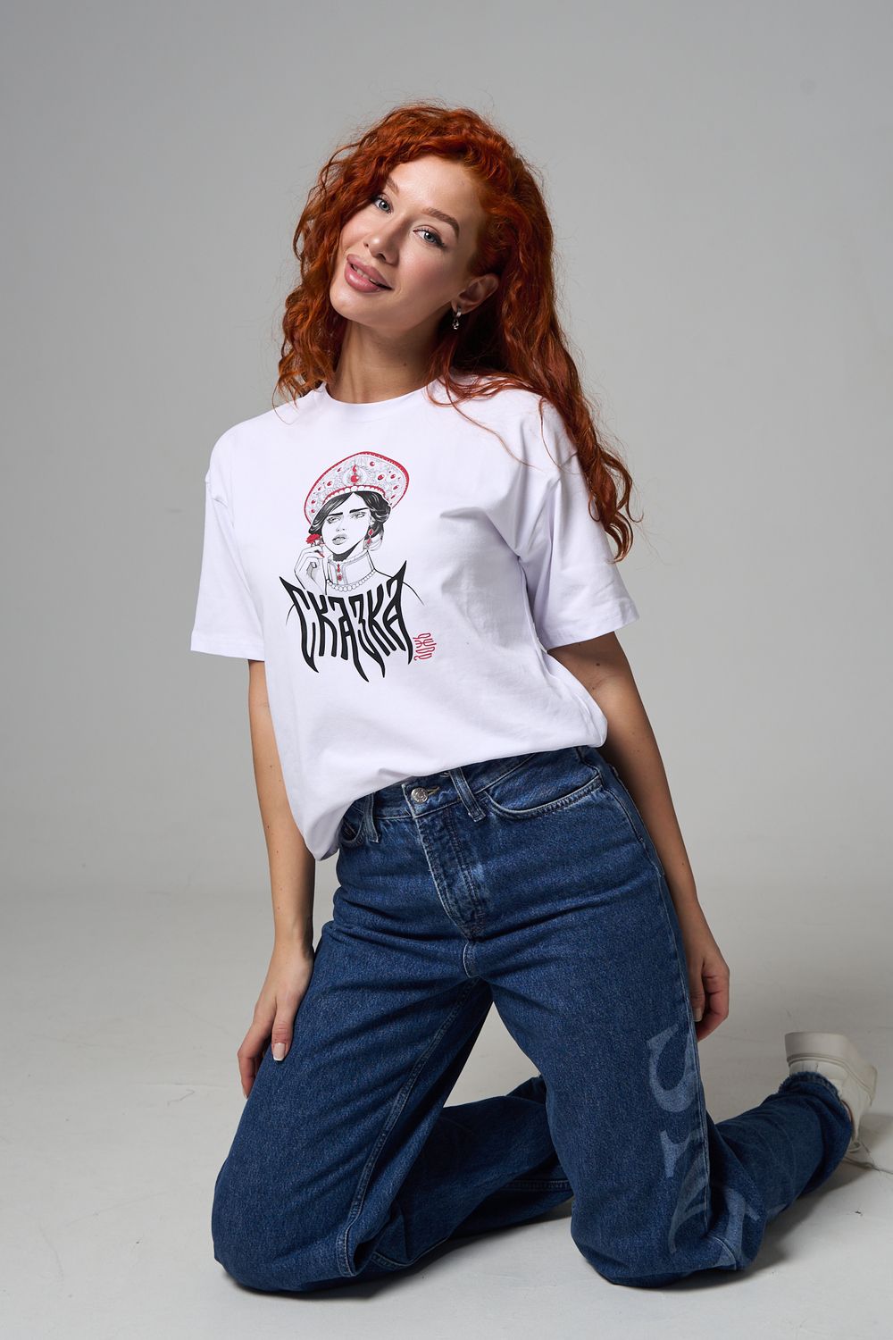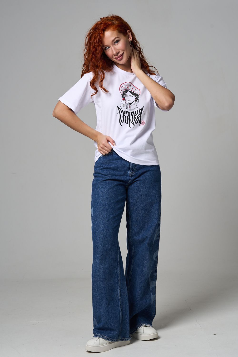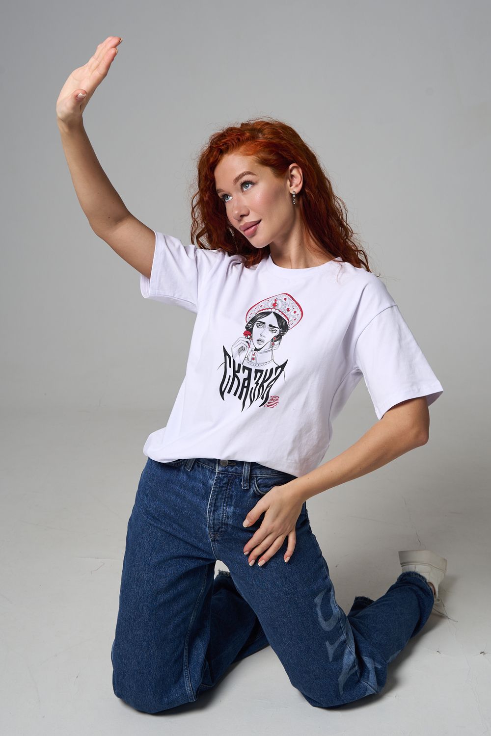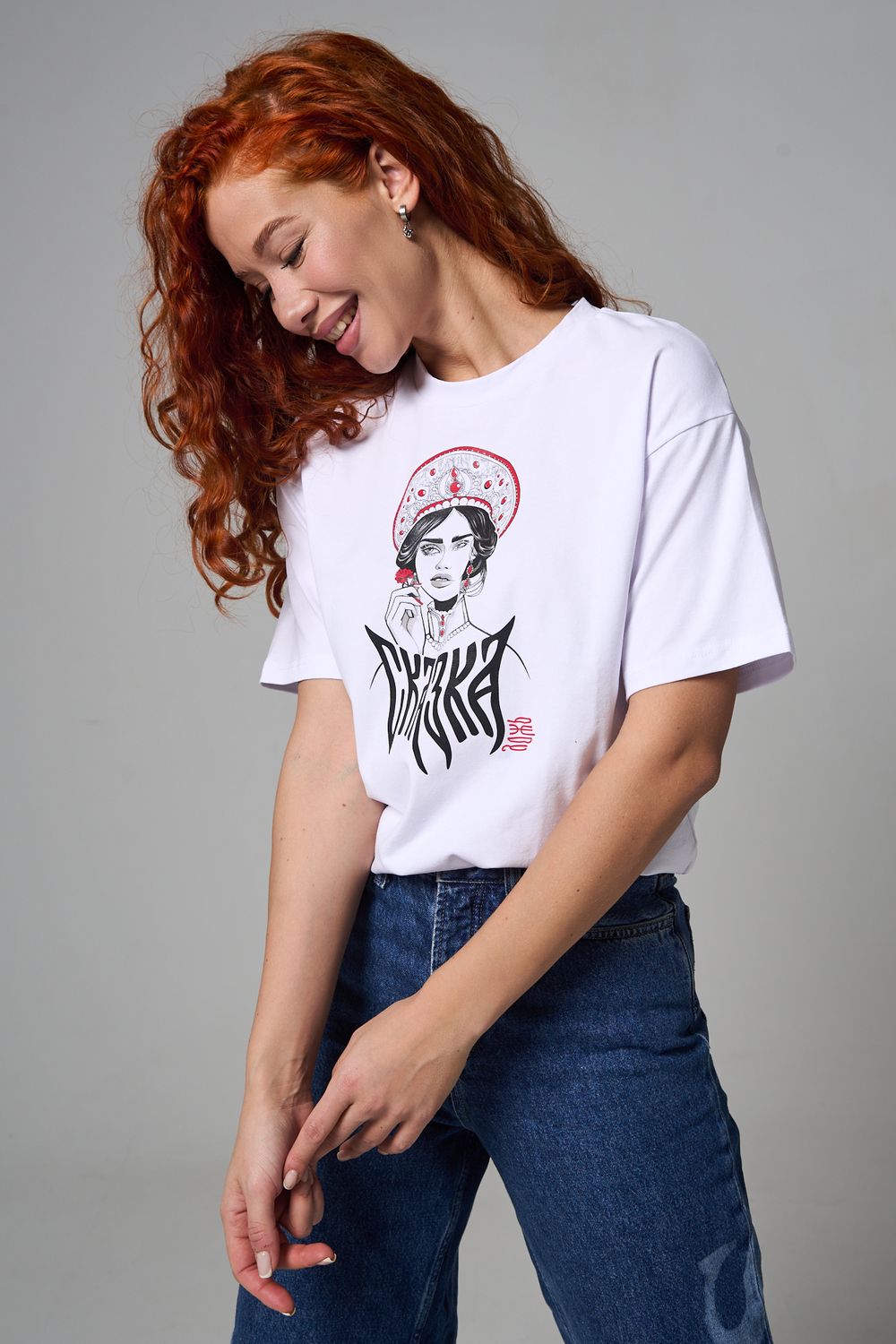 Представьте: вы — королева своего стиля, а на груди — императрица! Наша белоснежная oversize-футболка превращает повседневность в сказку с долей иронии. Мягкий хлопок дарит непревзойденный комфорт: дышащий, не липнет к телу и идеально сидит на любой фигуре, подчеркивая свободу и расслабленность.