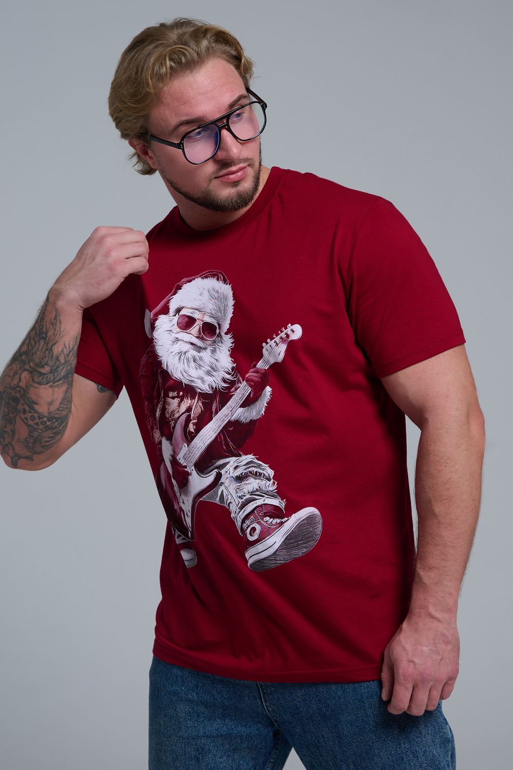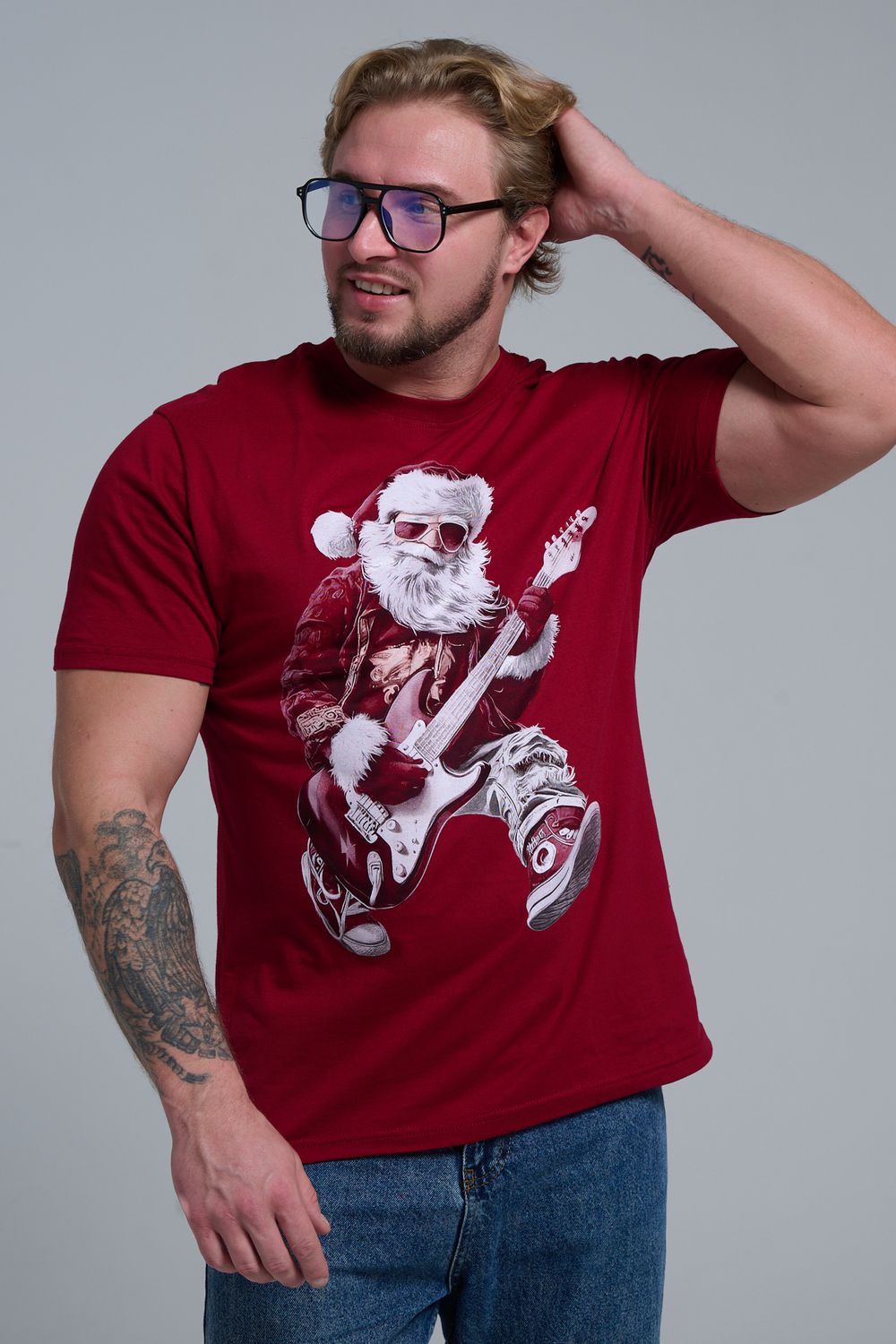 8581 футболка унисекс - бордо+Д мороз с гитарой