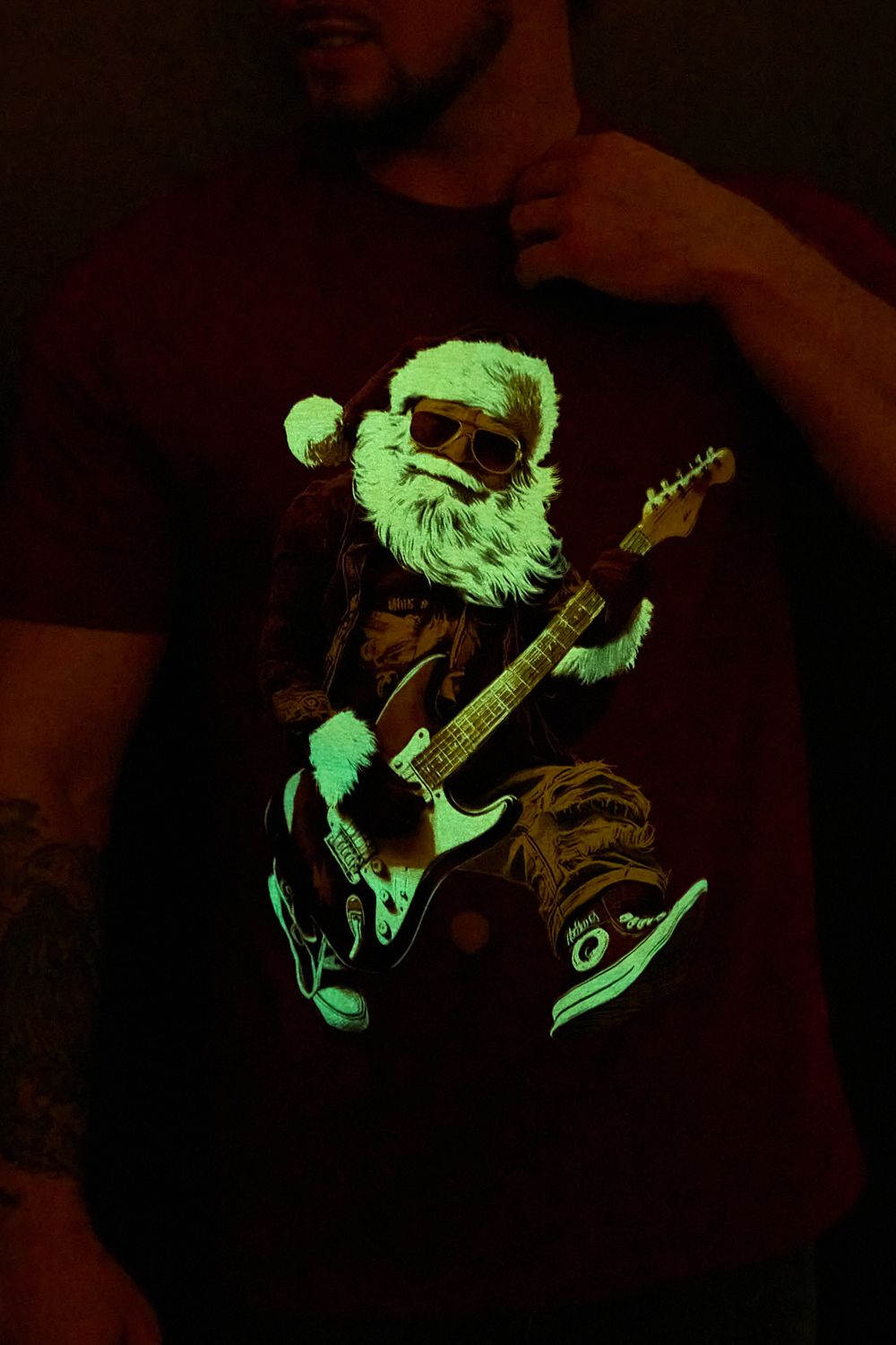 Представьте: Новый год, вечеринка в разгаре, а вы в стильной красной футболке с Сантой, который не просто раздает подарки, а зажигает на полную! На одной версии – Santa DJ в наушниках, миксует треки за пультом. На второй – Santa Rocker с гитарой, в прыжке, готовый к соло! Дизайн в белом и красном – яркий, юмористичный и супер-актуальный для праздников.