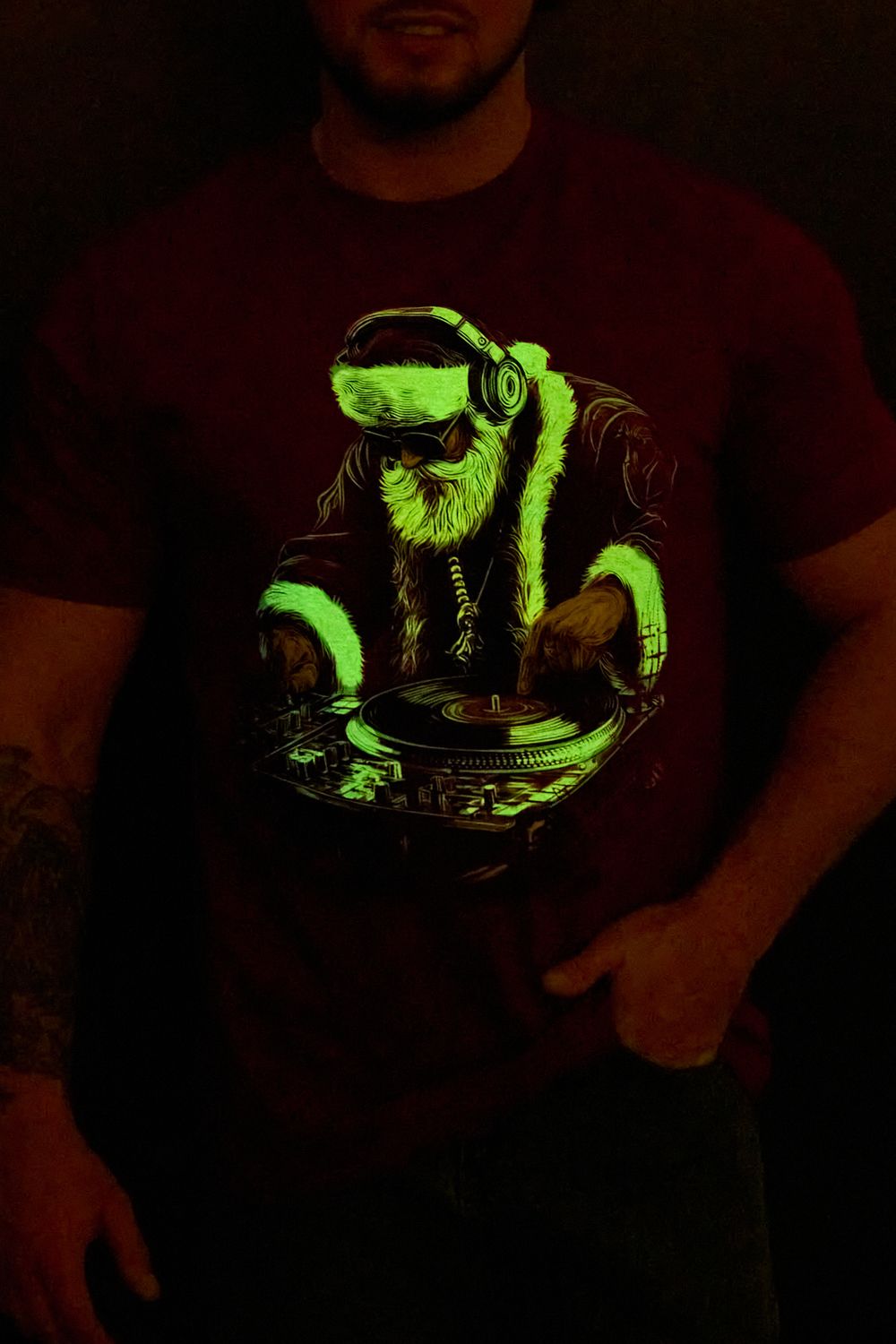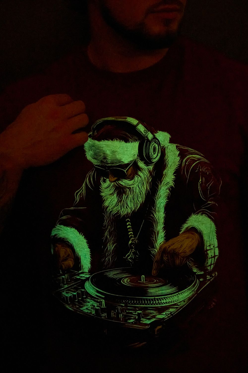 Представьте: Новый год, вечеринка в разгаре, а вы в стильной красной футболке с Сантой, который не просто раздает подарки, а зажигает на полную! На одной версии – Santa DJ в наушниках, миксует треки за пультом. На второй – Santa Rocker с гитарой, в прыжке, готовый к соло! Дизайн в белом и красном – яркий, юмористичный и супер-актуальный для праздников.