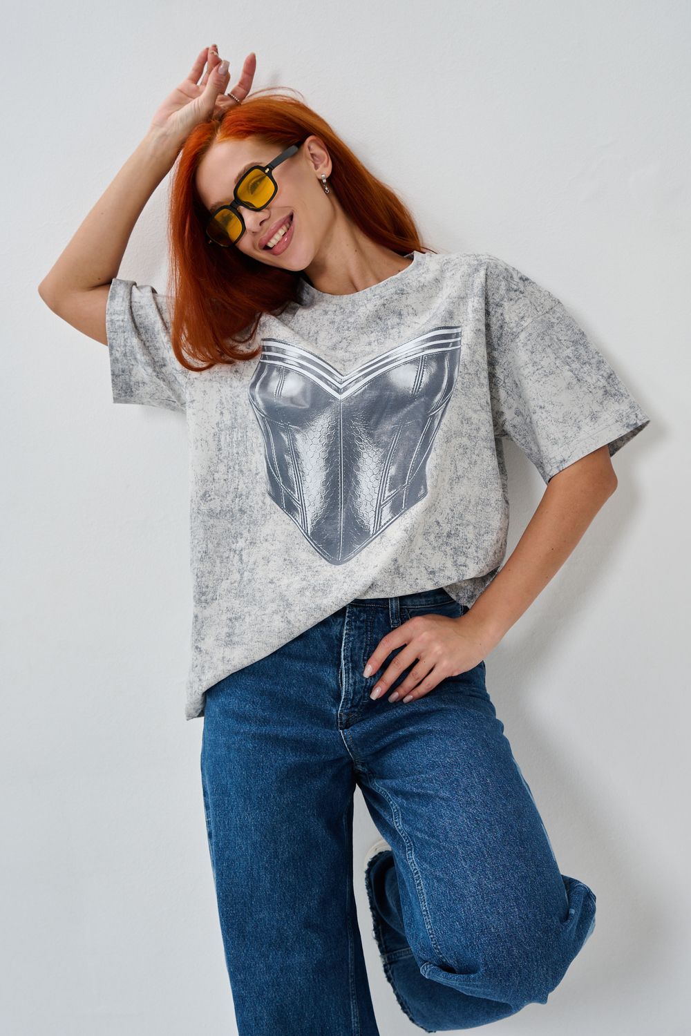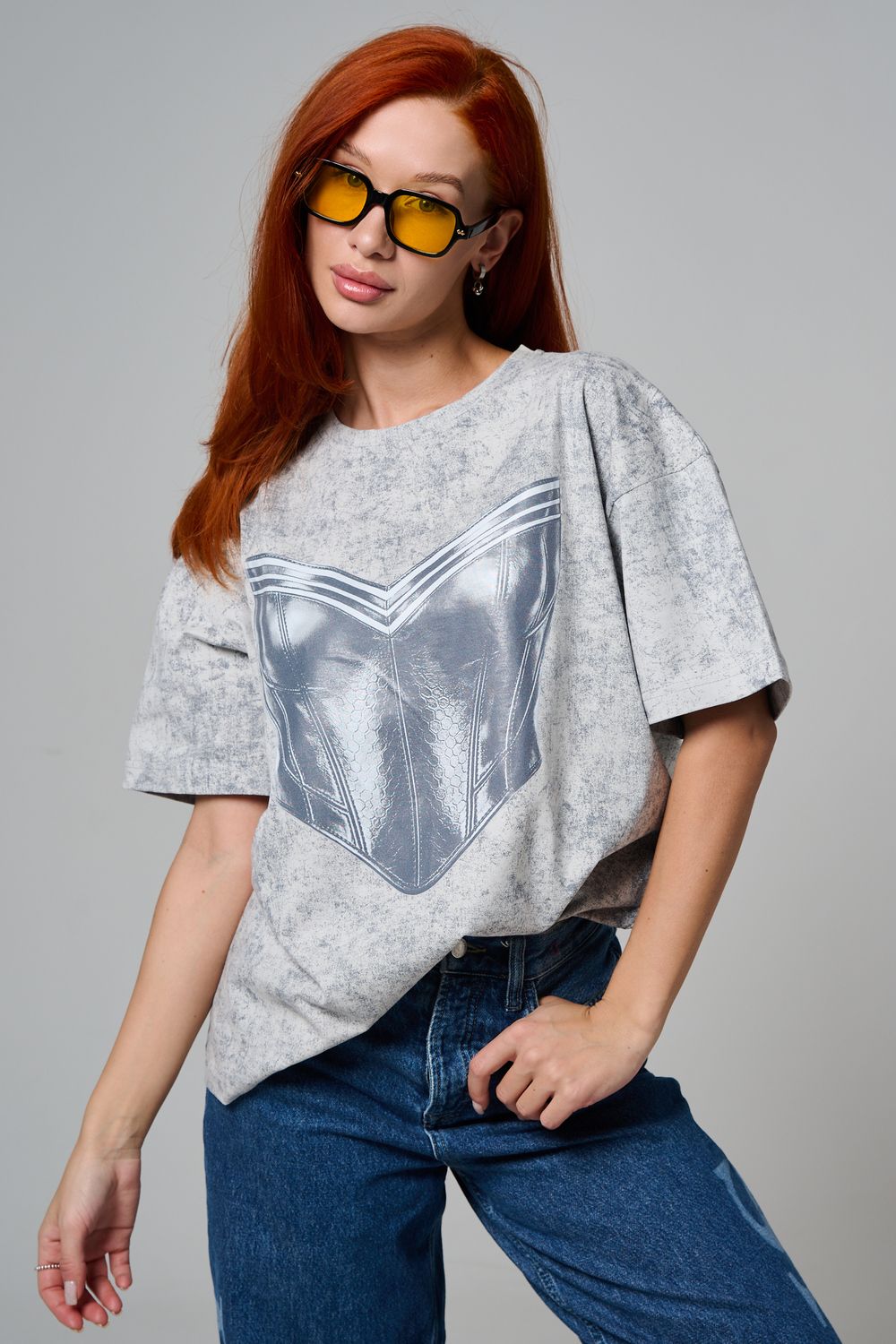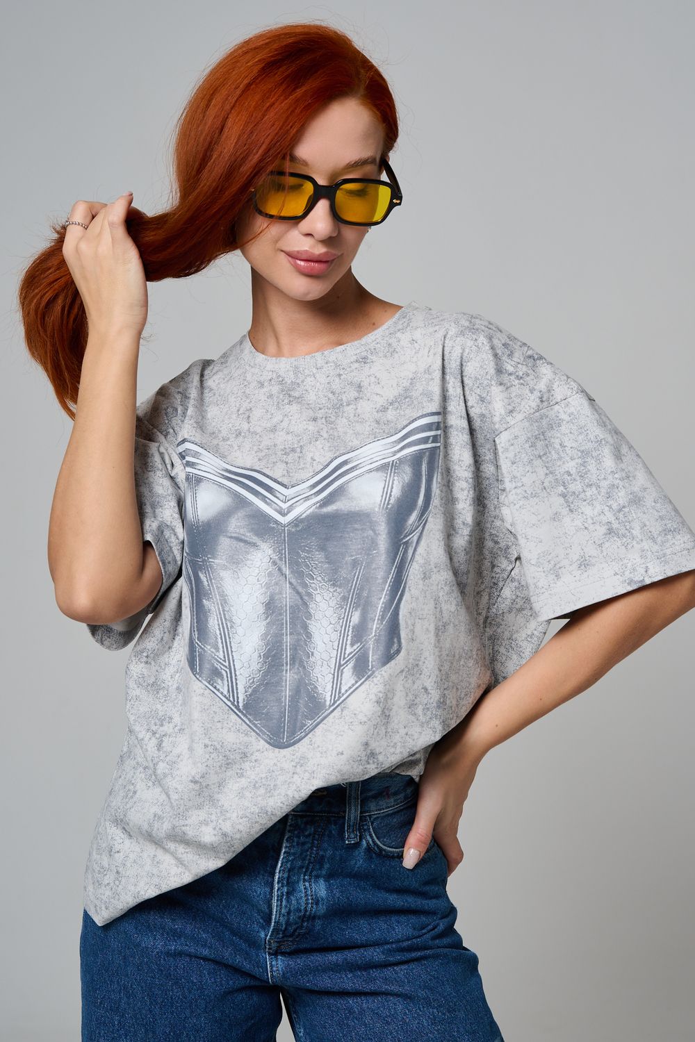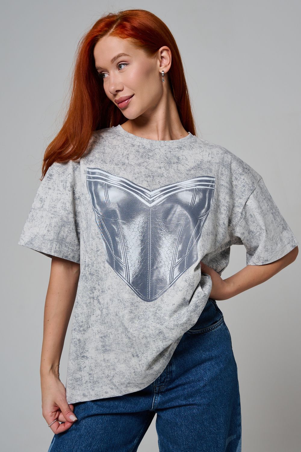 8594 футболка женская оверсайз - серый+корсет