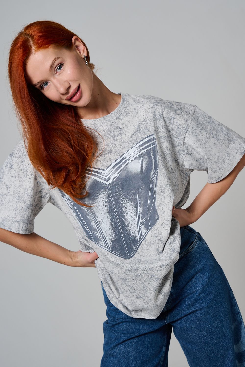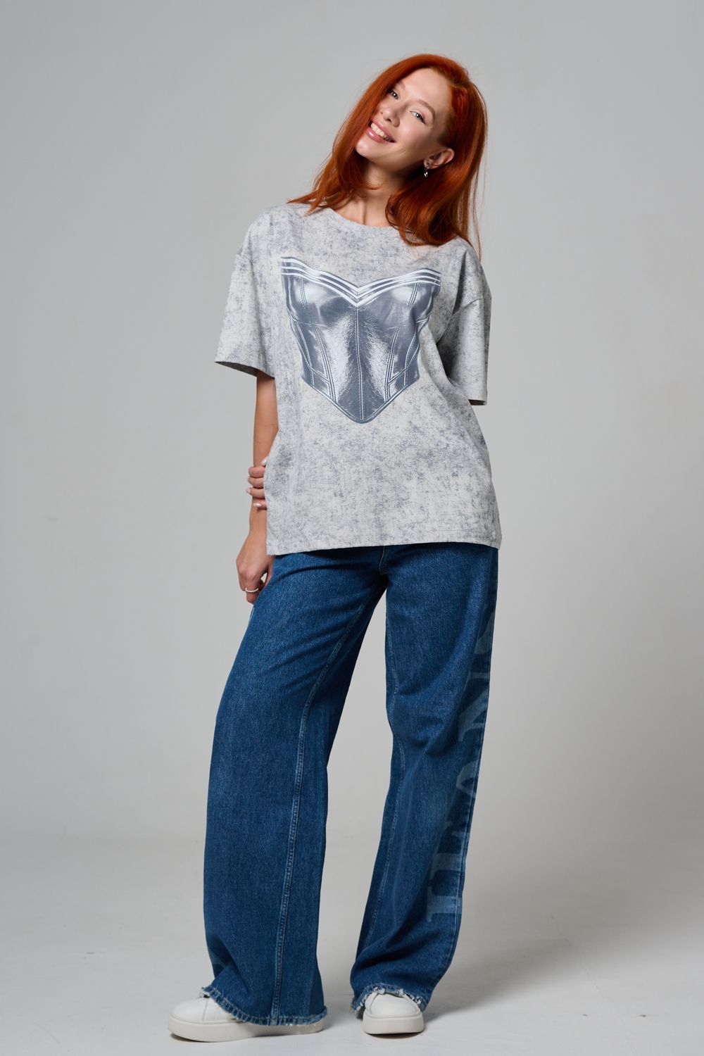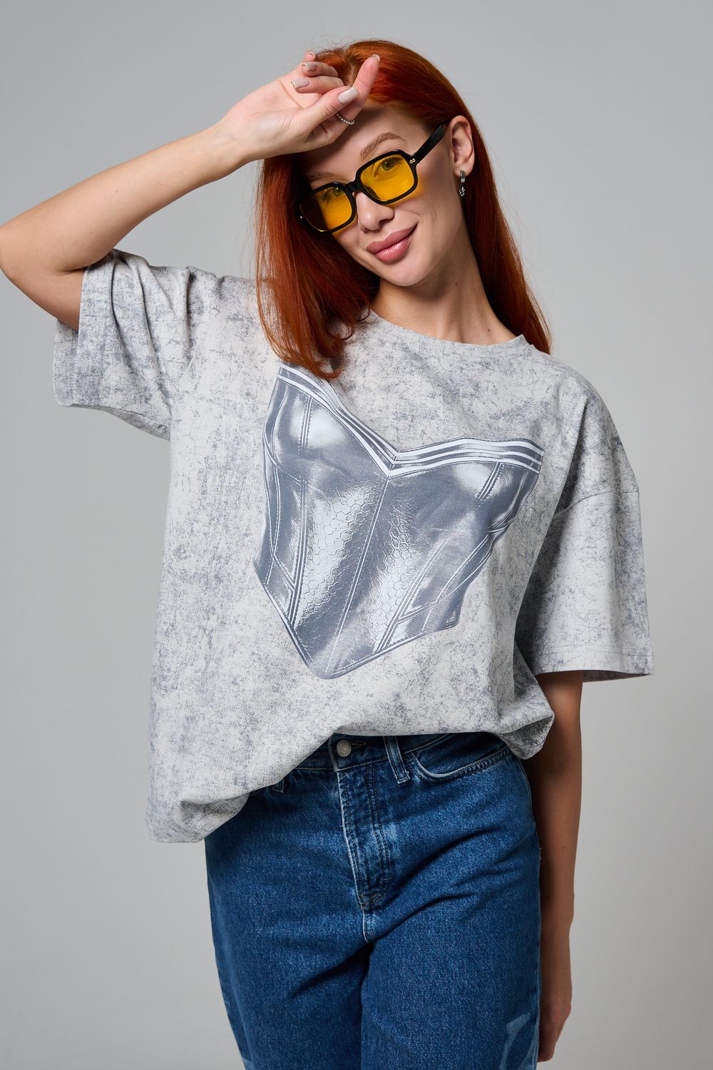 8594 футболка женская оверсайз - серый+корсет