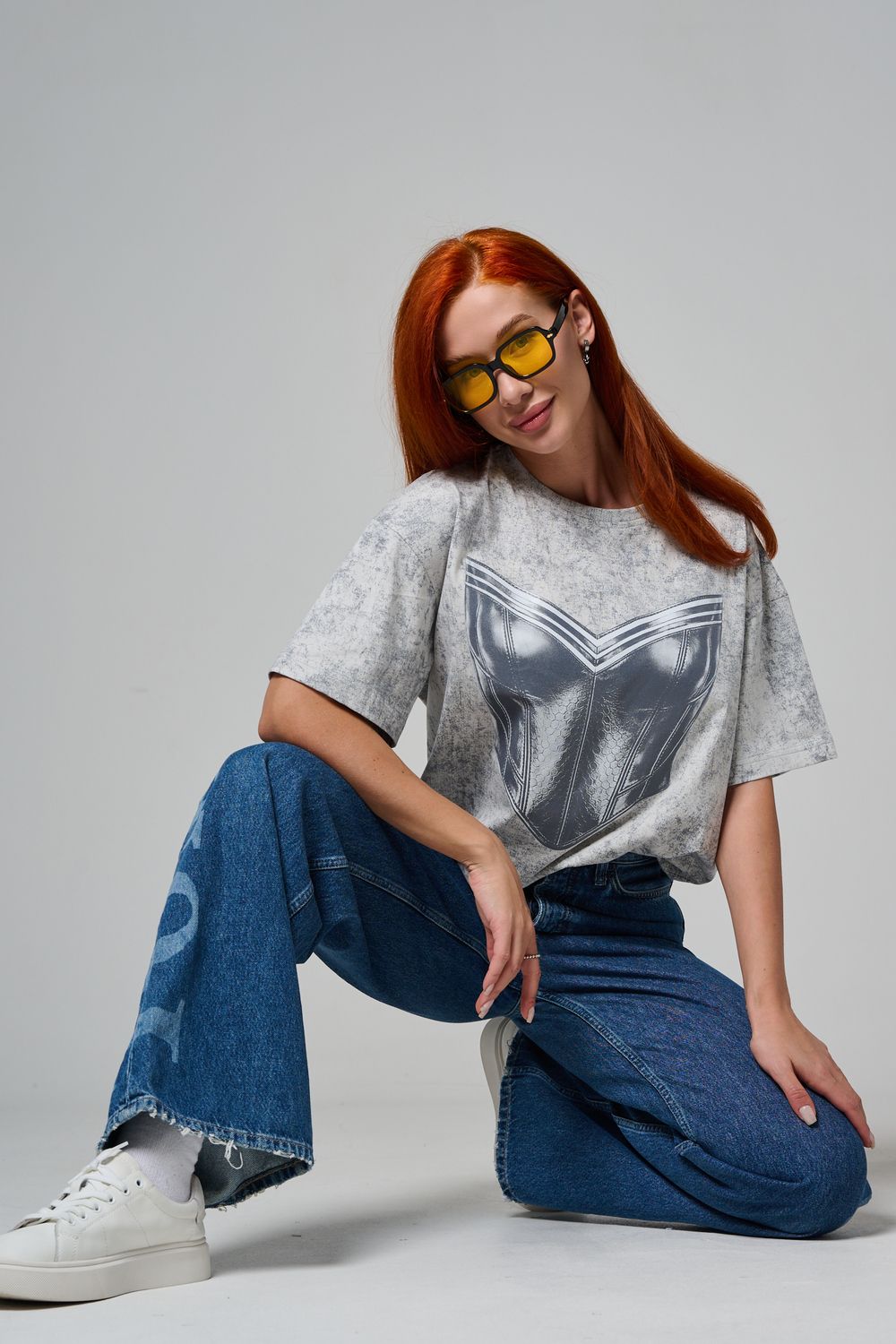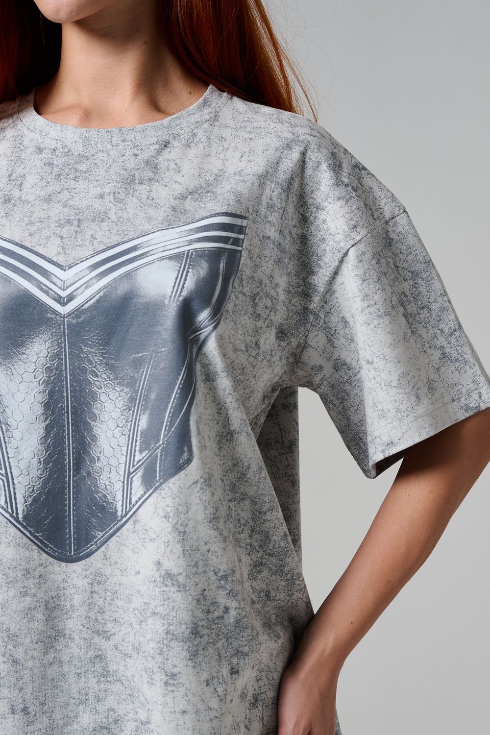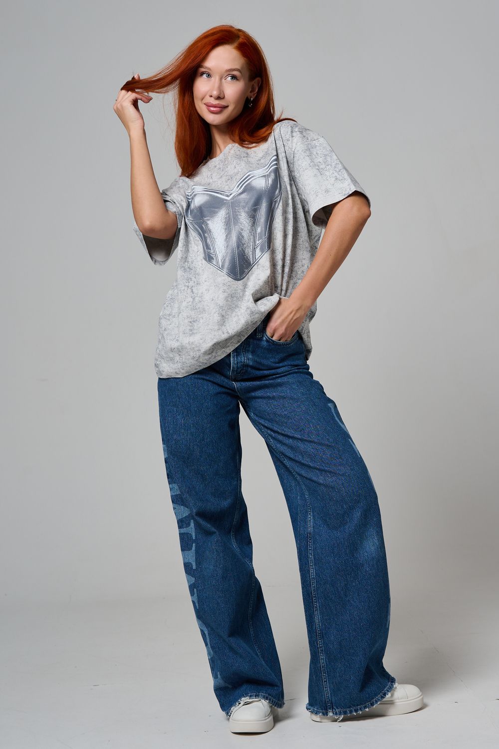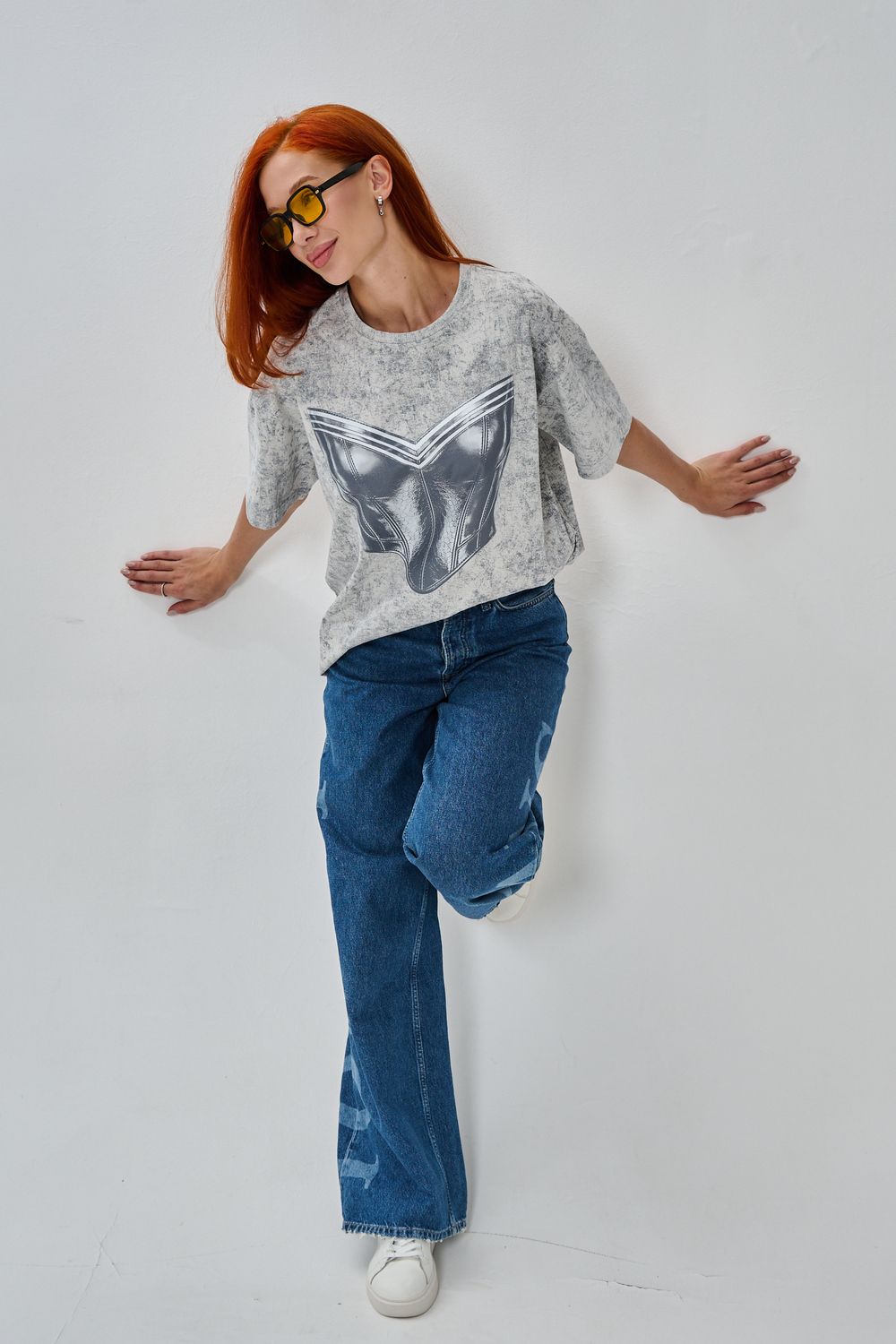 8594 футболка женская оверсайз - серый+корсет