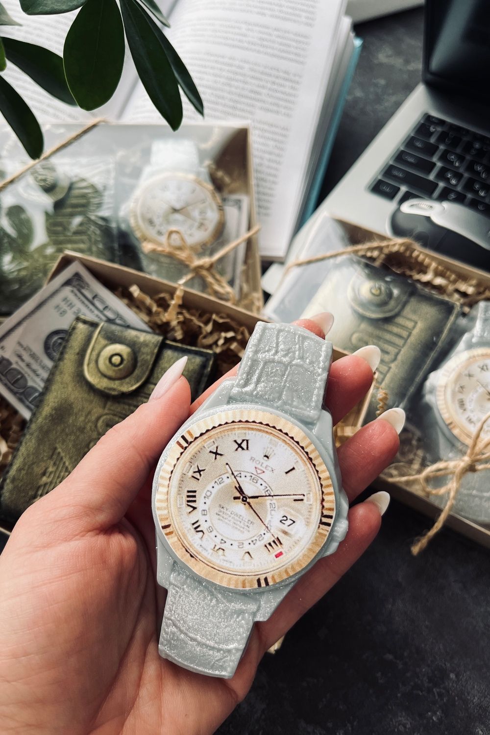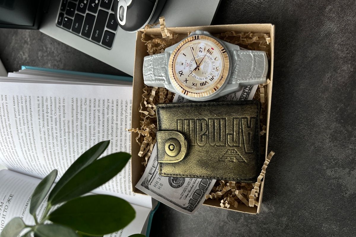 Натуральное мыло ручной работы для мужчин "Часы - кошелек"отлично подойдет как презент мужчине или мальчику, тем самым подчеркнет его индивидуальность и стабильность. Глубокий смысл, заложенный в названии набора, как нельзя лучше подойдет к поздравлению.