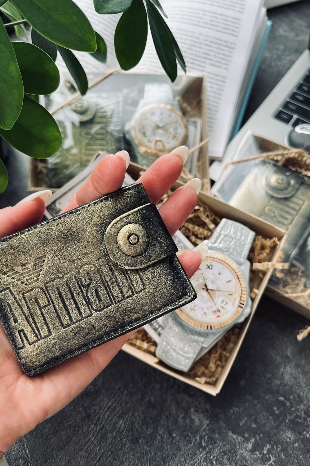 89601 набор мыла "Часы - Кошелек" - черно-серый