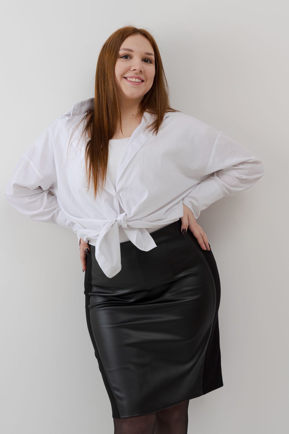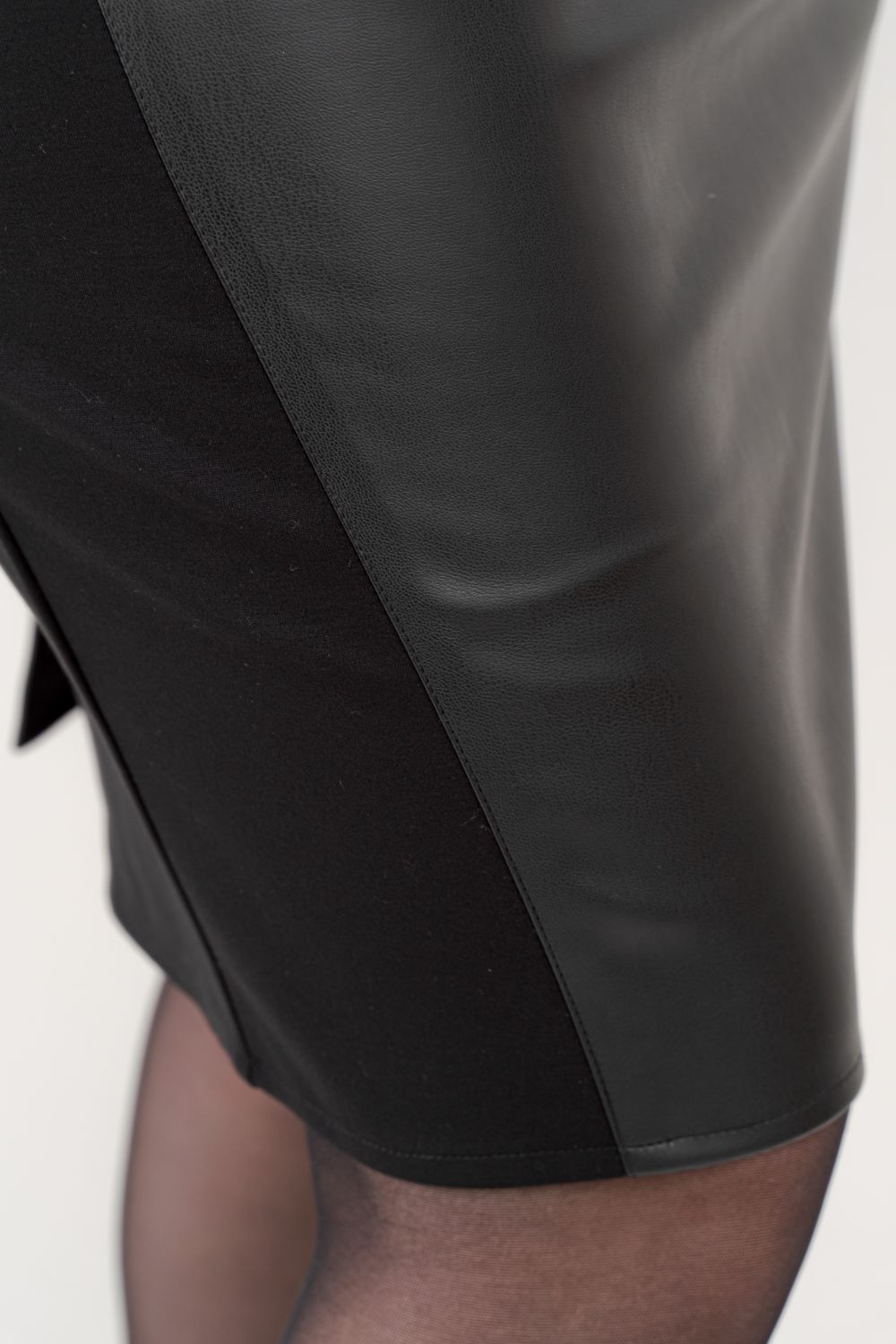 Элегантная базовая женская юбка со вставками из экокожи является основой гардероба каждой девушки. Благодаря завышенной посадке и идеальной длине юбка подходит для любой фигуры, скрывает небольшие недостатки и подчеркивает талию, удлиняет ноги и прекрасно стройнит. Такая юбка отлично подойдет в офис, на работу, на свидание, на прогулку или праздник. Универсальная черная женская юбка будет отлично сочетаться с блузкой, рубашкой, свитером, кардиганом, футболкой, лонгсливом, пиджаком, плащом или пальто. В такой юбке вам будет удобно и комфортно, ведь изнаночная сторона выполнена из приятного материала, который не собирается и не комкается.