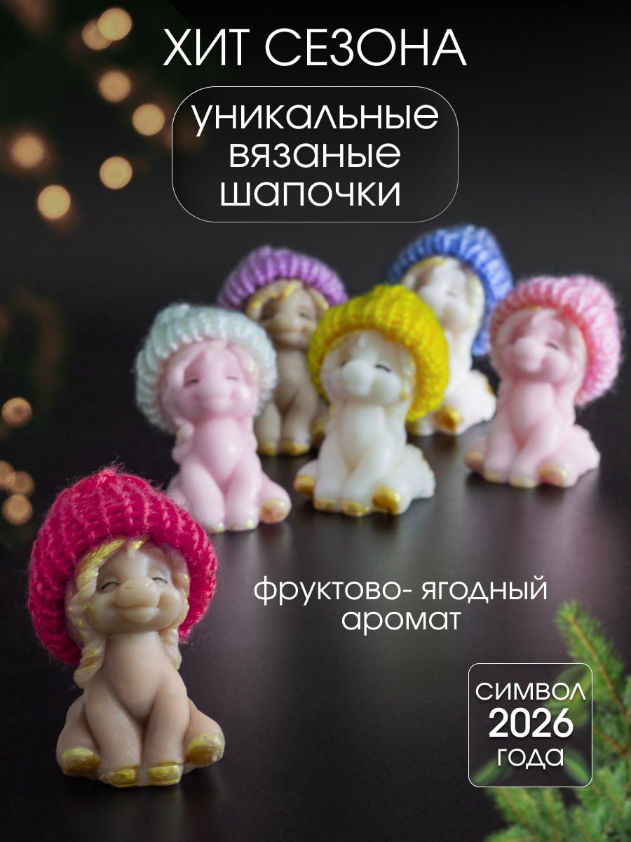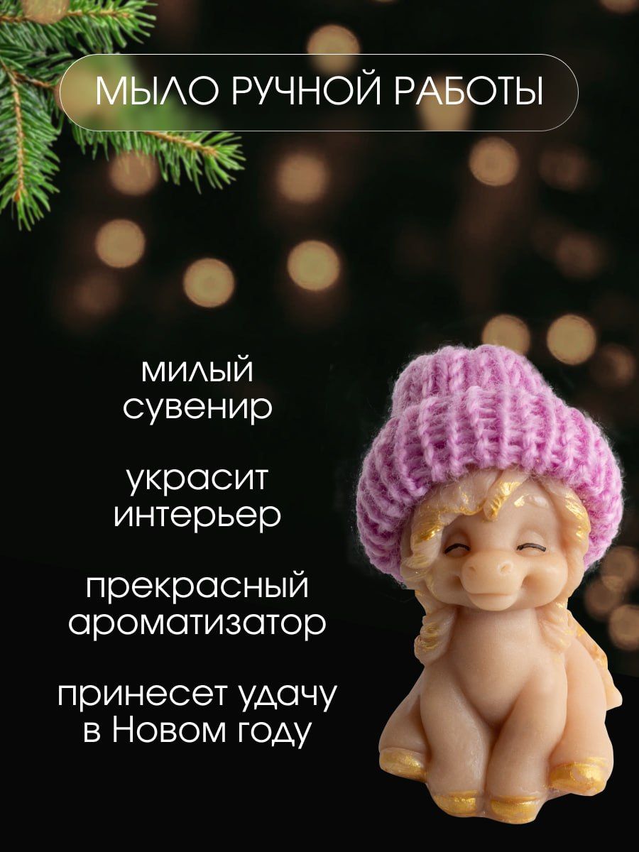 6 штук очаровательных Лошадок в веселых шапочках (в комплекте к каждой змейке вы найдете вязаную мини шапочку, что придает мыльцу новогоднее, зимнее настроение), весом каждая от 20-26 гр (общий вес 6шт.- 120-156гр), это полезный и качественный сувенир - подарок к Новому 2026 году!