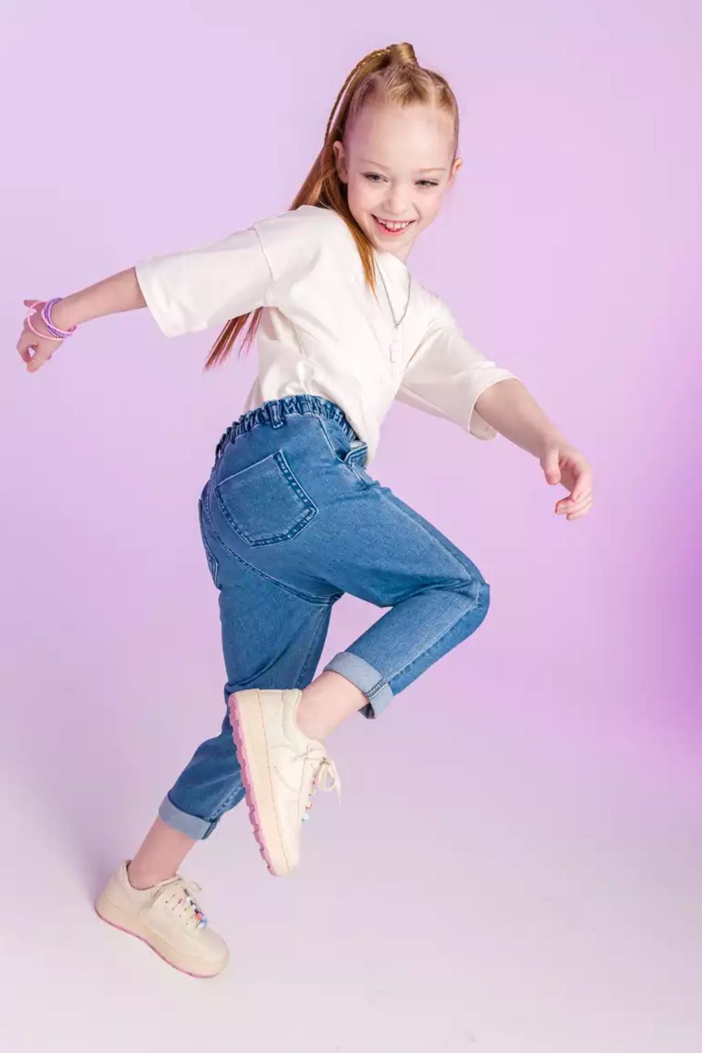 Крутые джинсы с высокой посадкой выполнены из качественной хлопковой ткани. Благодаря эластану в составе, джинсы прекрасно тянутся и не сковывают движений. Регулировка по талии с эластичной резинкой обеспечивает хорошую посадку на любую фигуру. Трендовая и удобная модель свободного кроя, по низу подвороты. Изделие дополнено карманами.