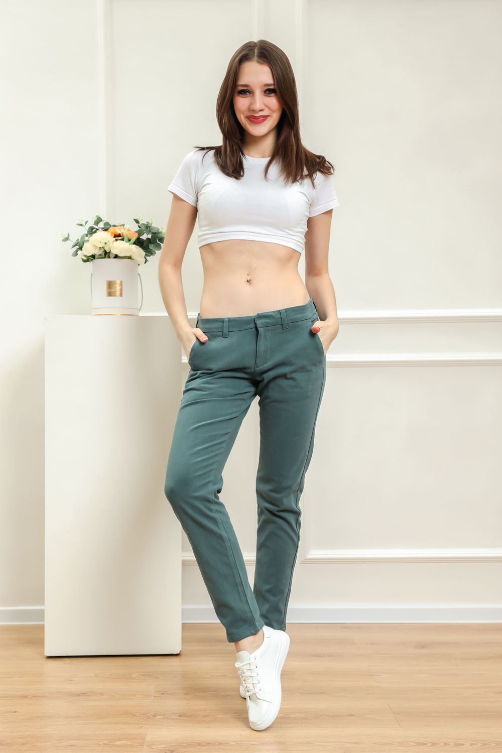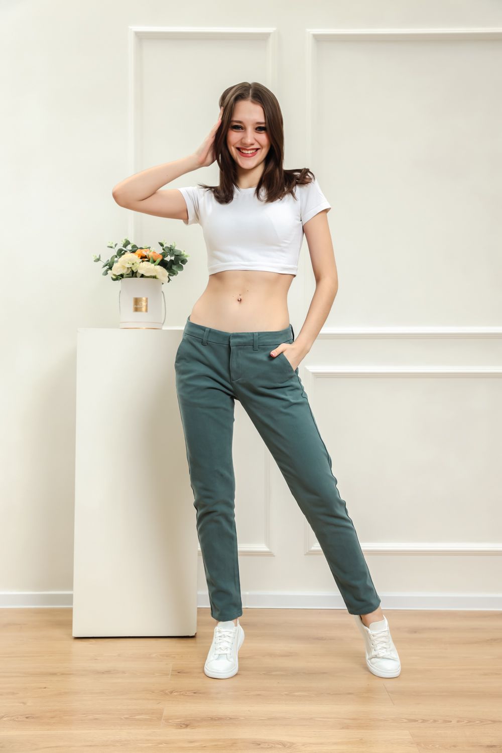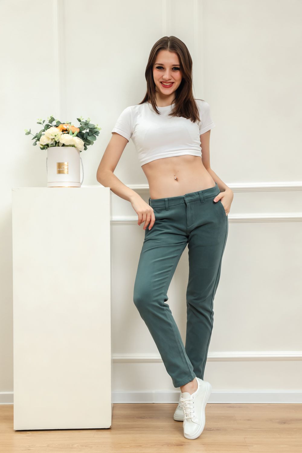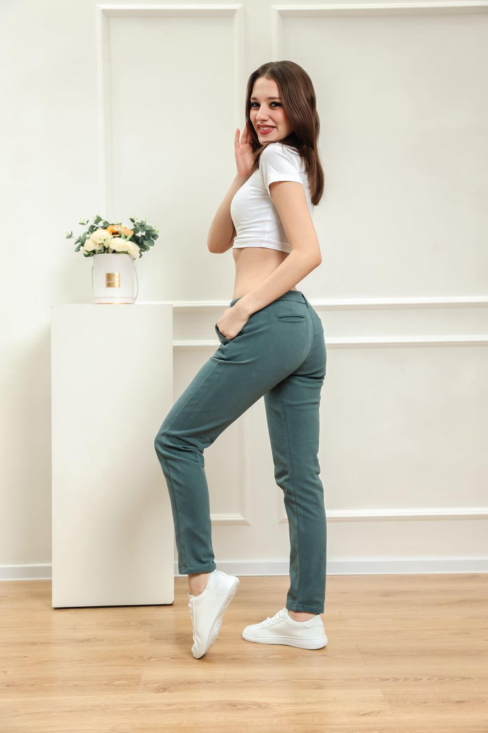 Женские брюки выполнены из плотной хлопковой ткани с добавлением полиэстера для прочности и долговечности. Производство Узбекистан